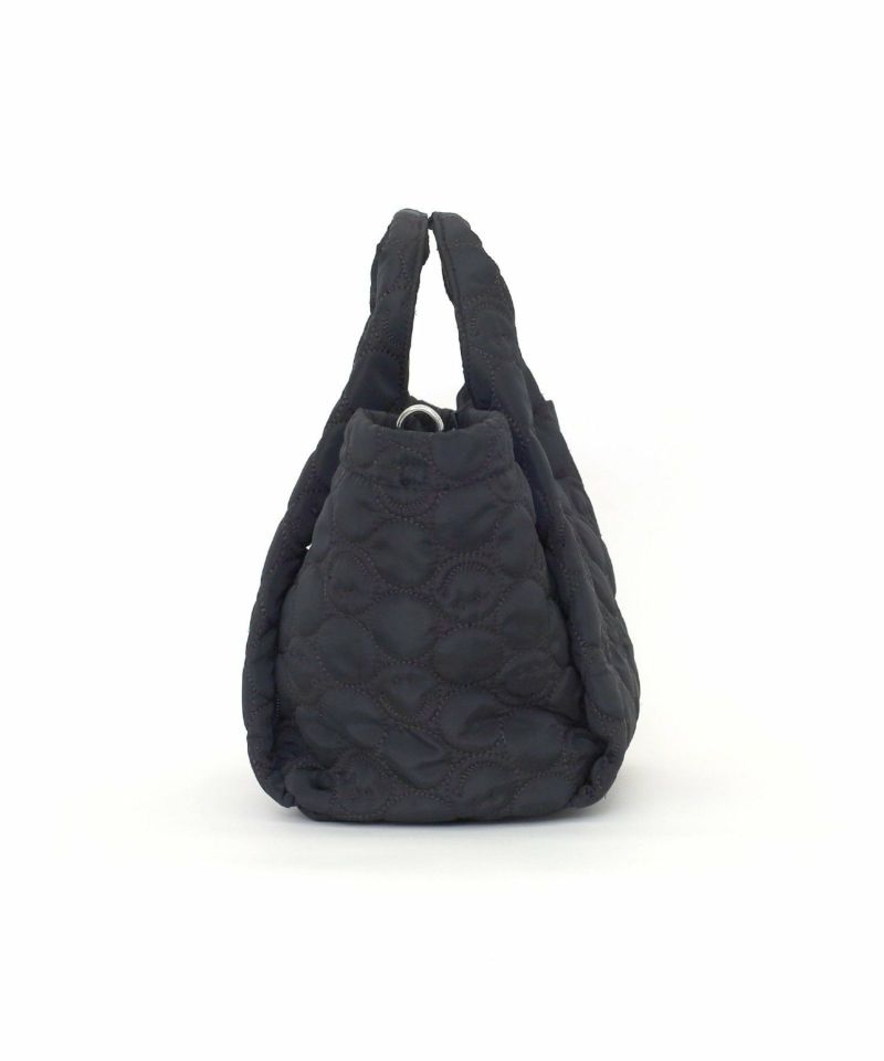 スマイリーフェイスをあしらったキルティングデザインがポイントの、遊び心あふれるバッグ。