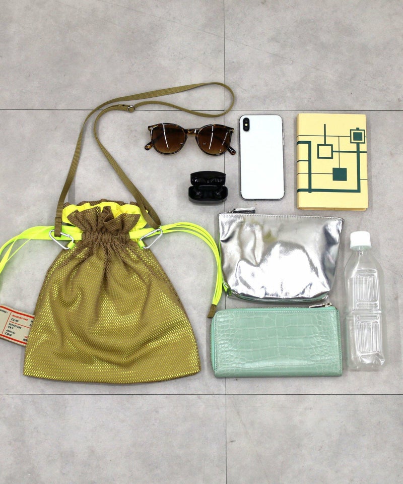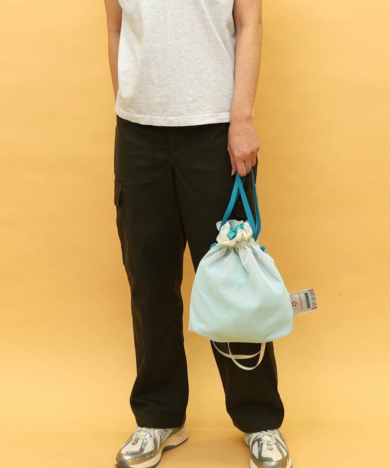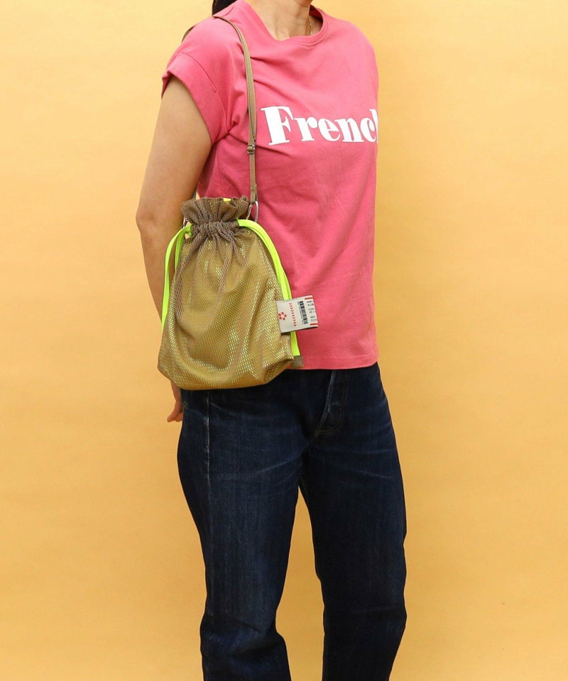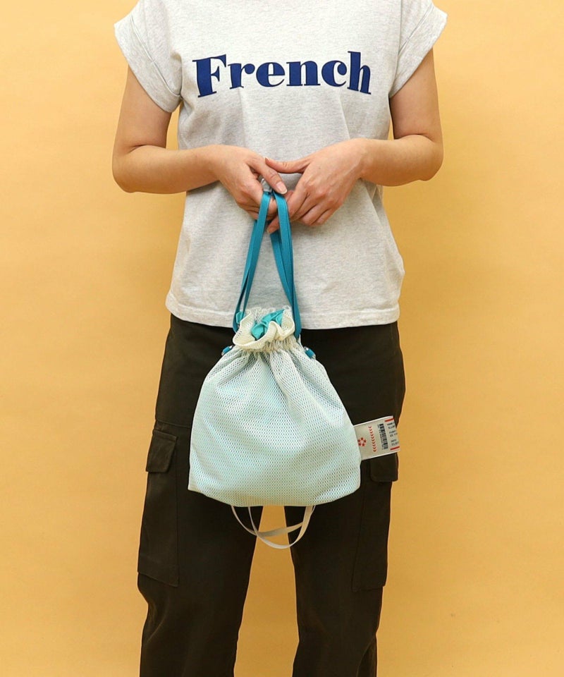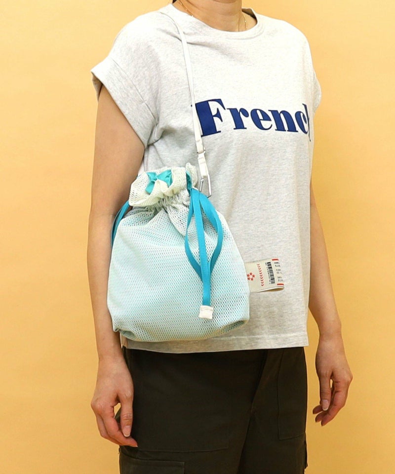 メッシュ素材を使用した軽い巾着型バッグです!