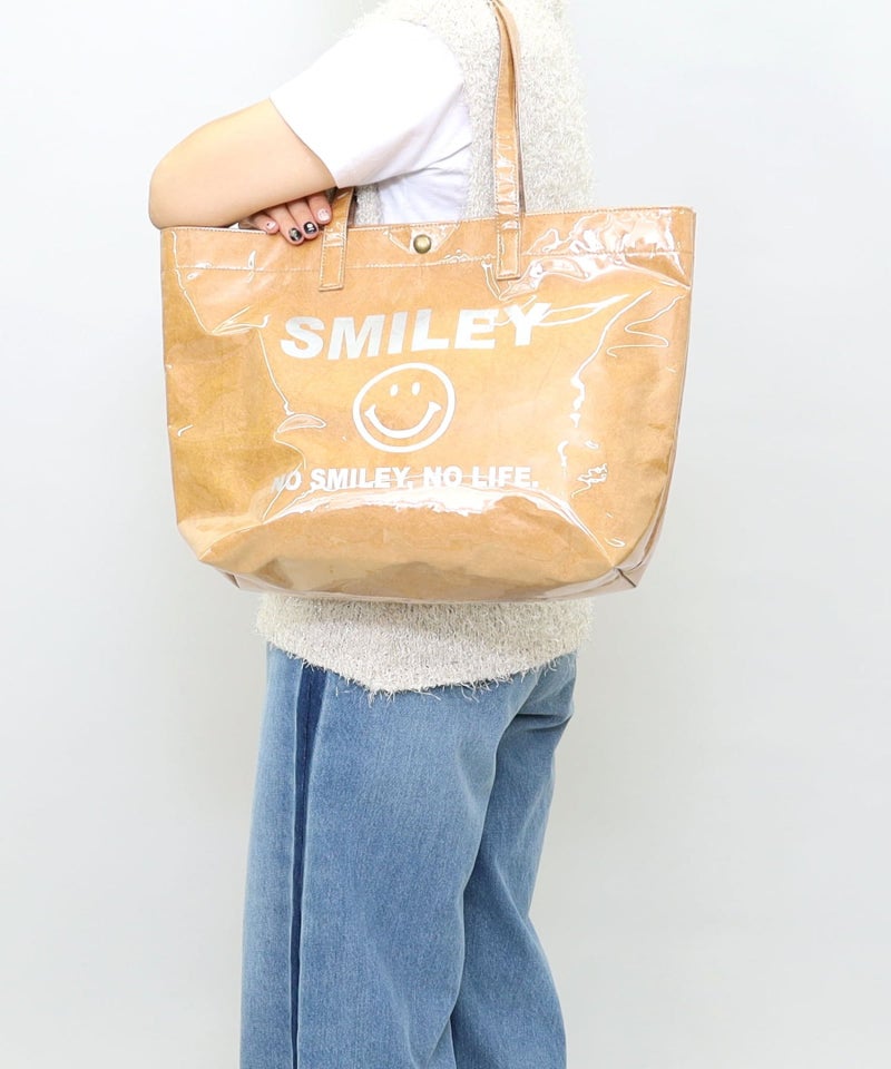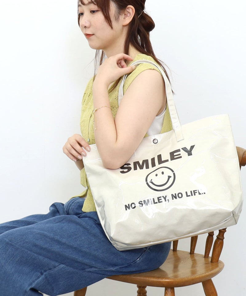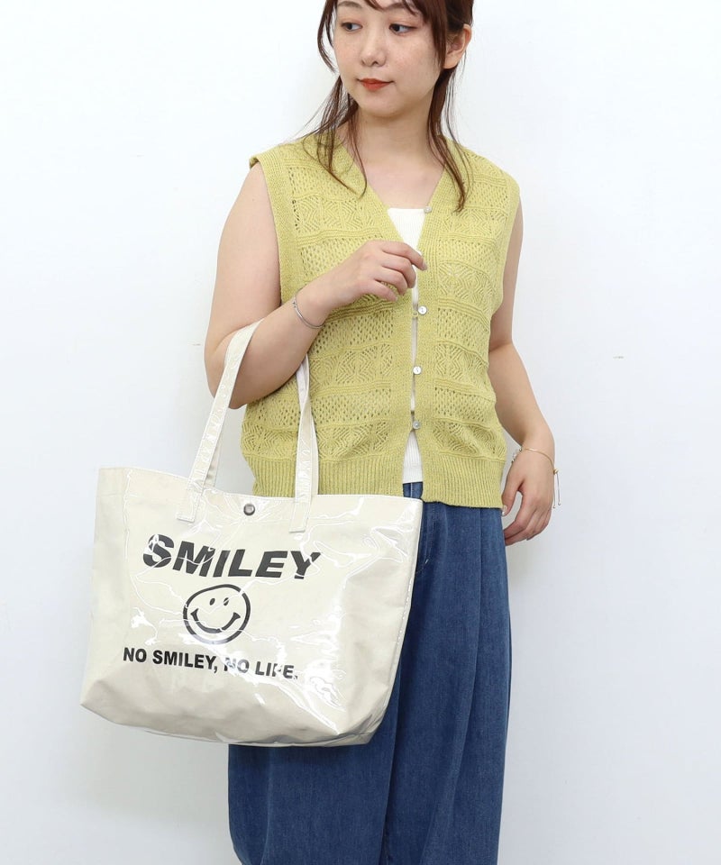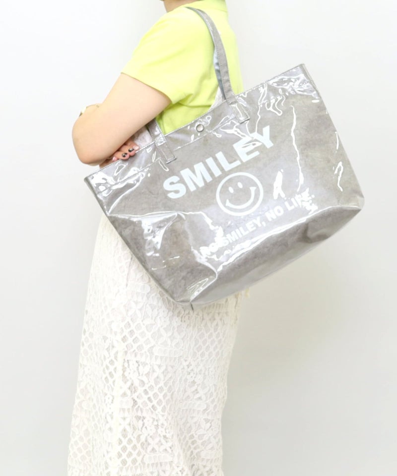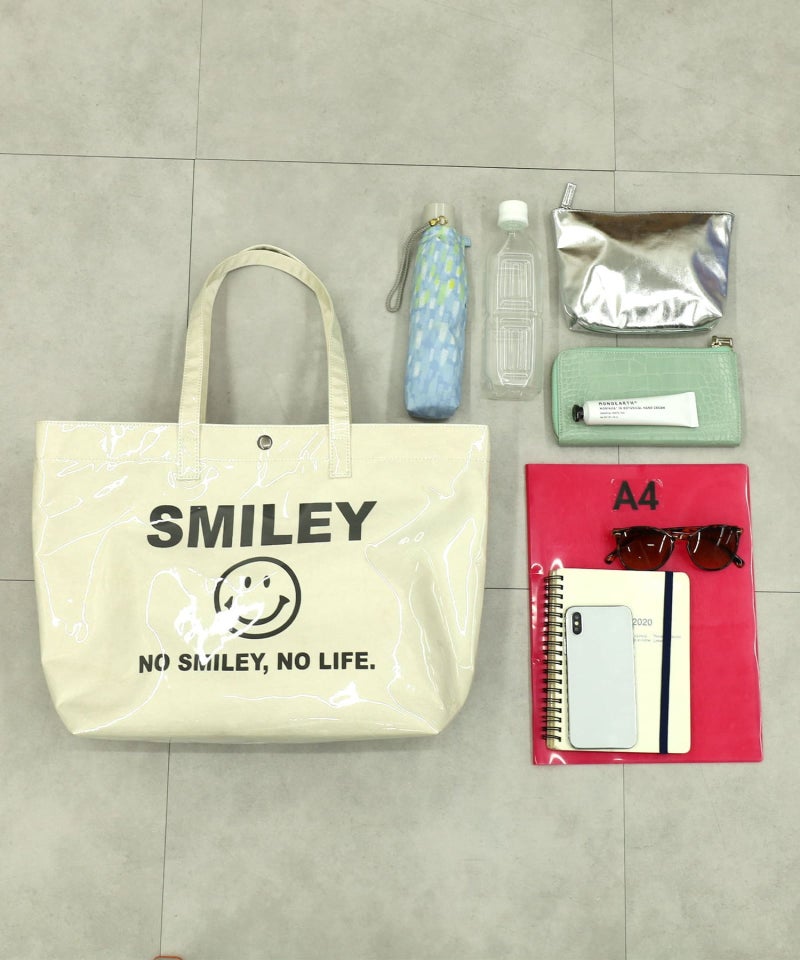 軽くてビニルが夏らしいSMILEYプリントビッグトートバッグ
