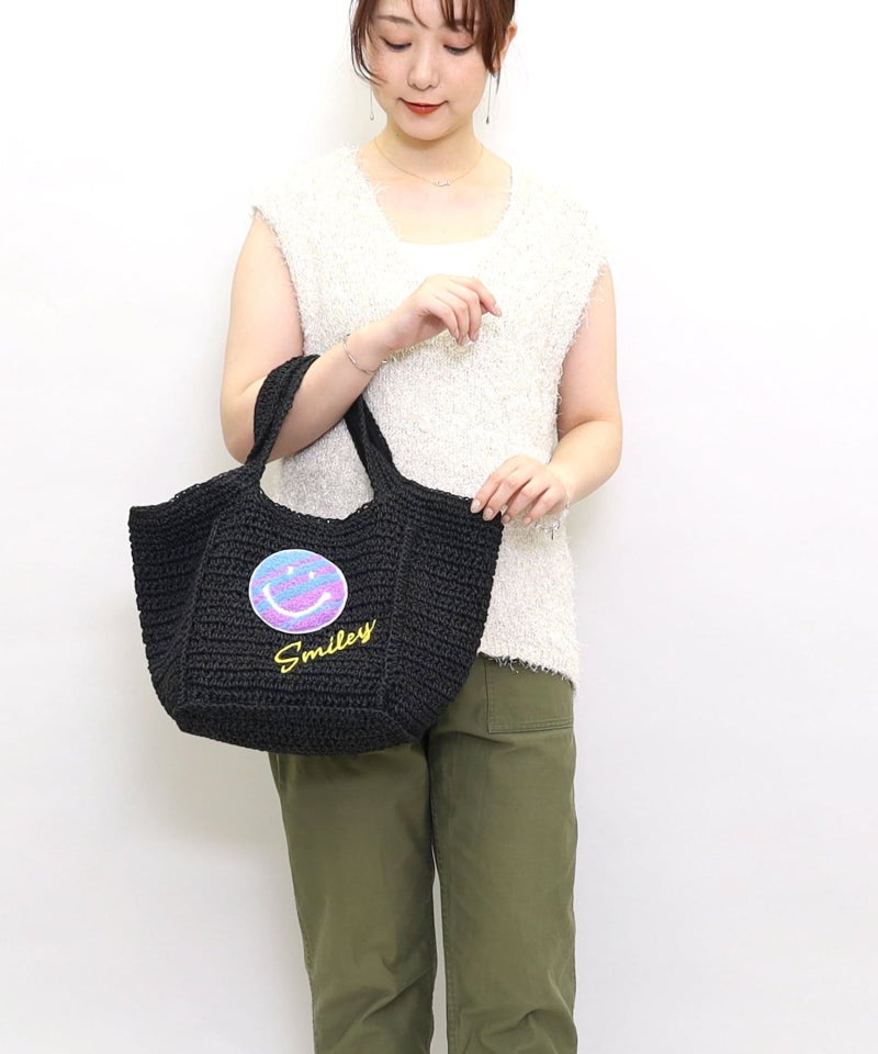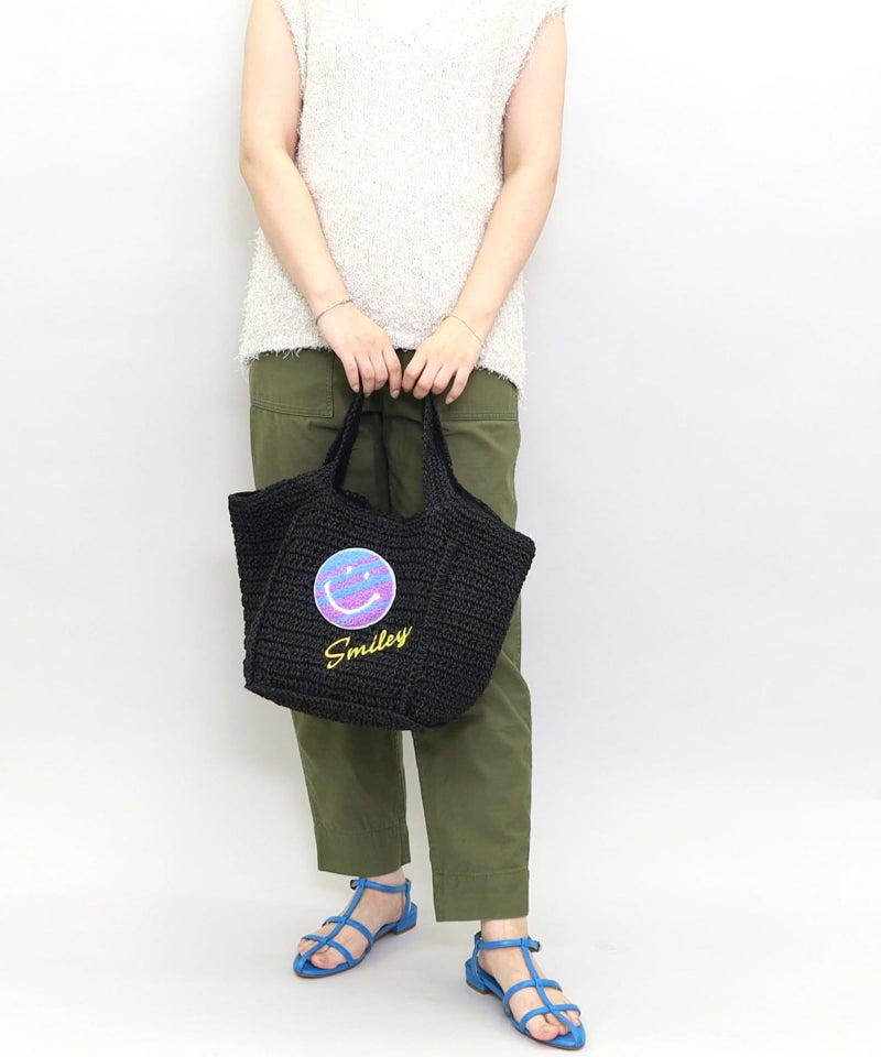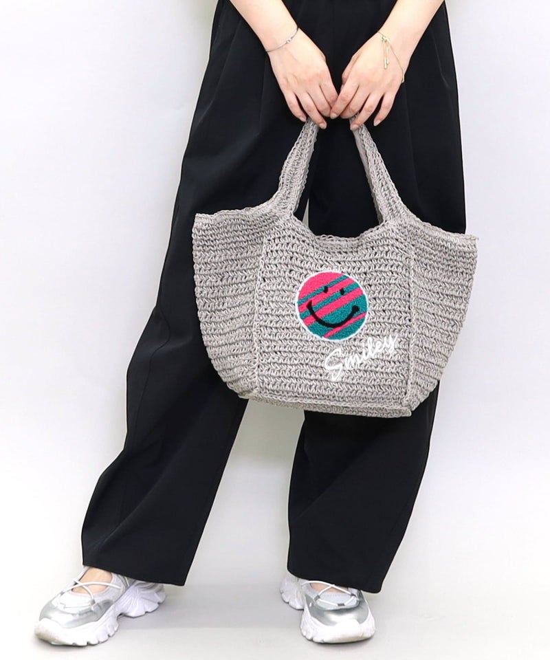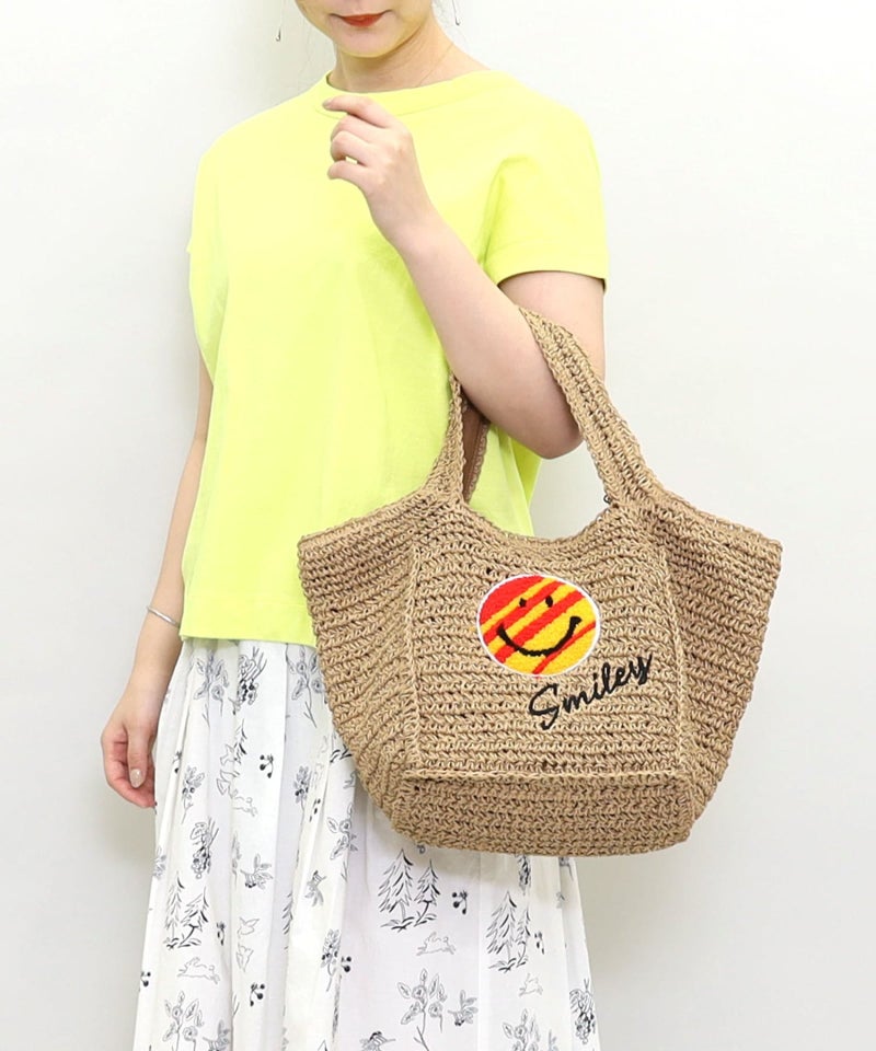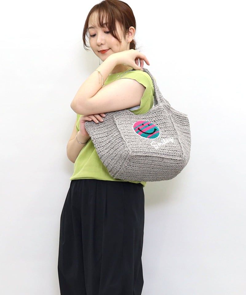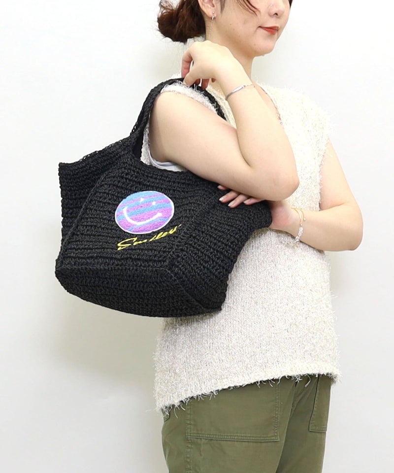 ポップでカラフルなSMILEYが刺繍された夏らしいカゴバッグ!