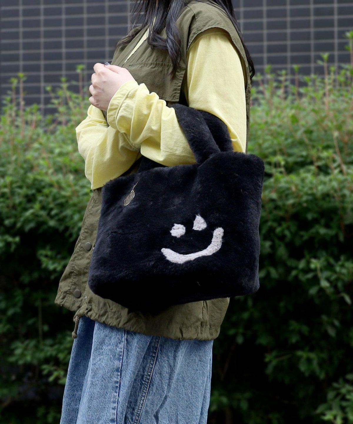【OUTLET SALE】 SMILEY チャーム付エコファーフェイストートバッグ