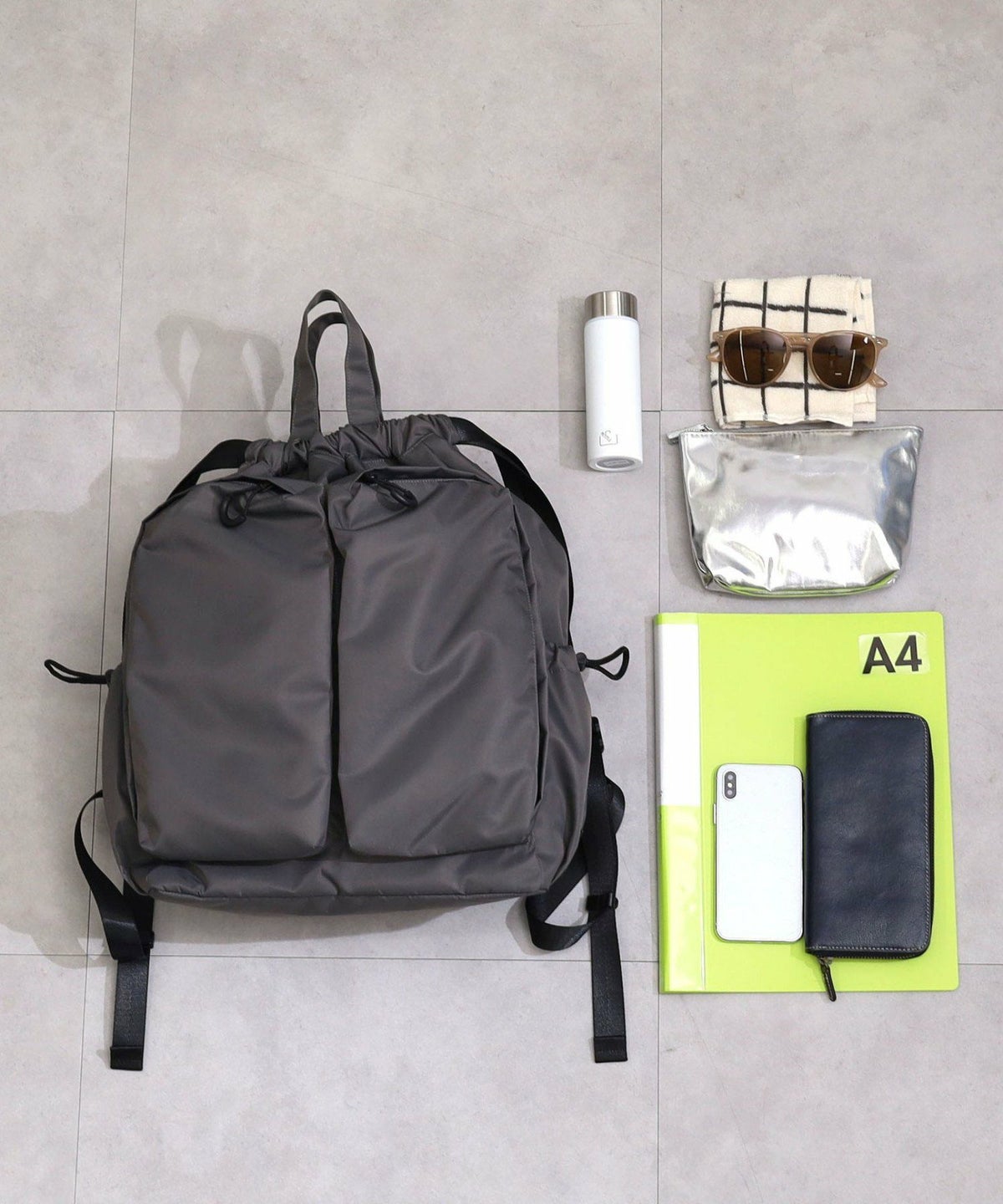 【OUTLET SALE】 撥水ビッグポケット巾着リュック/A4対応