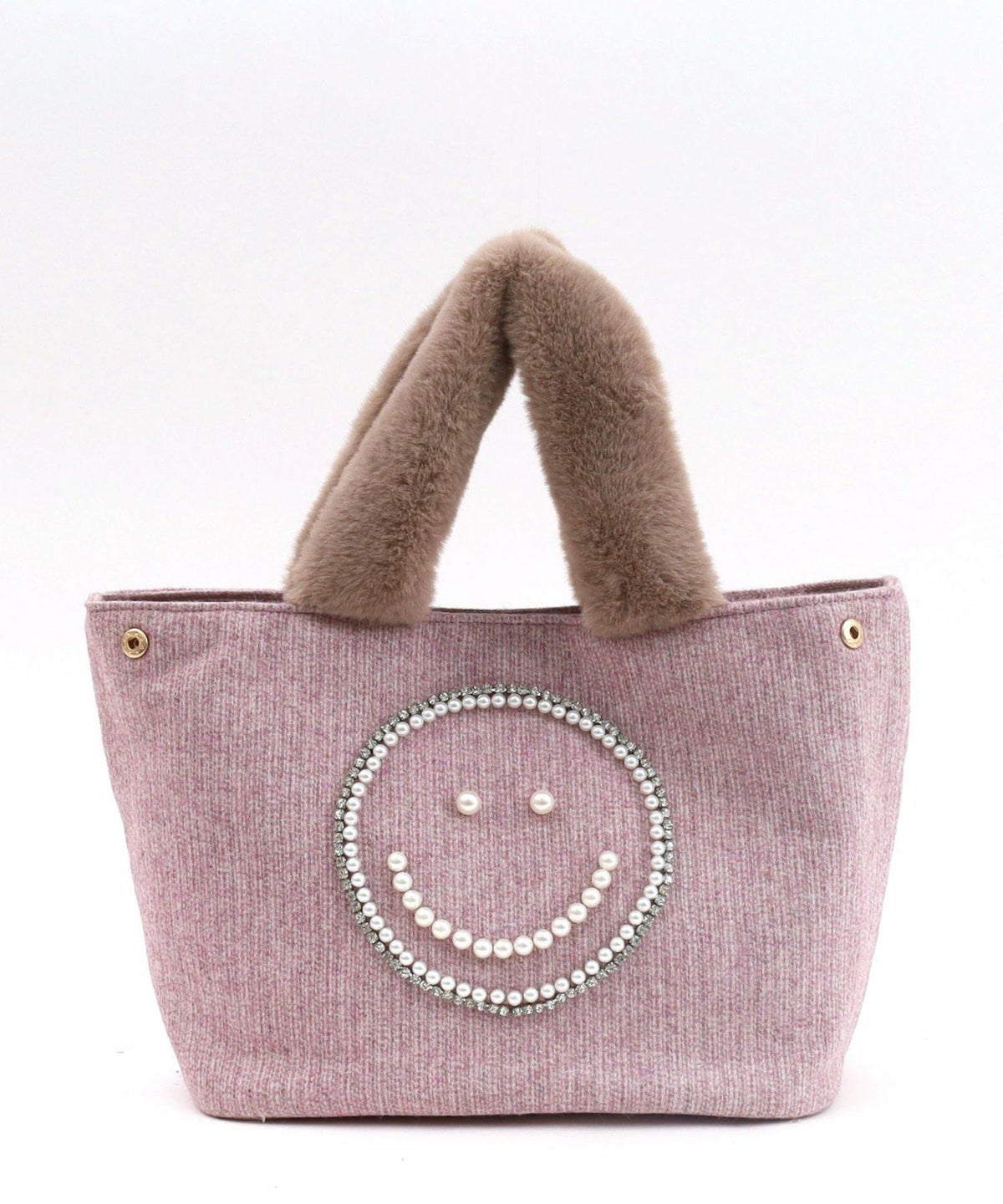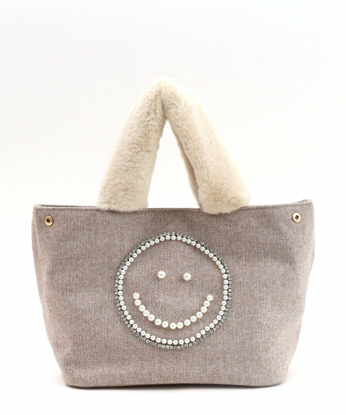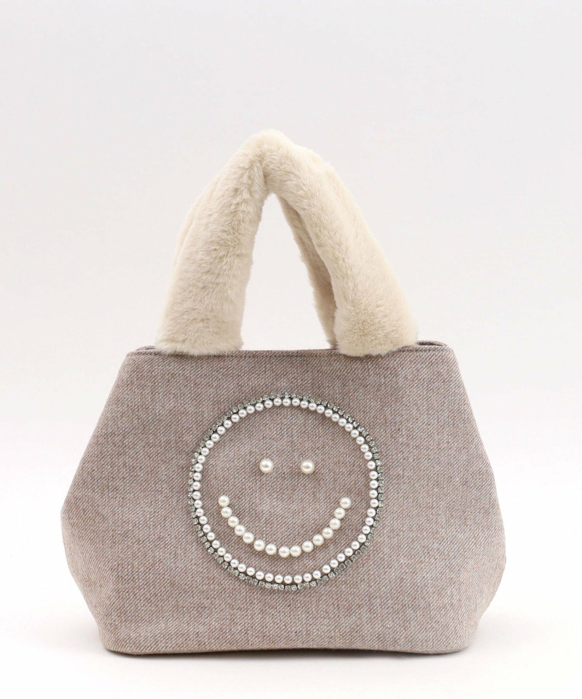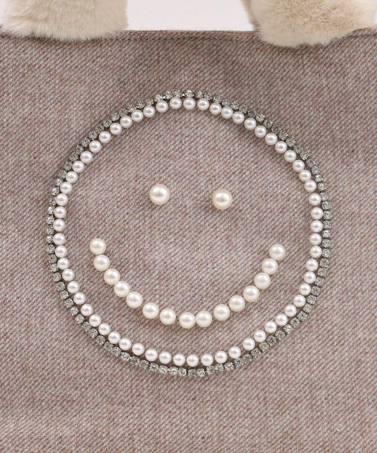 【OUTLET SALE】 SMILEY パール刺繍xエコファーハンドルトートバッグ