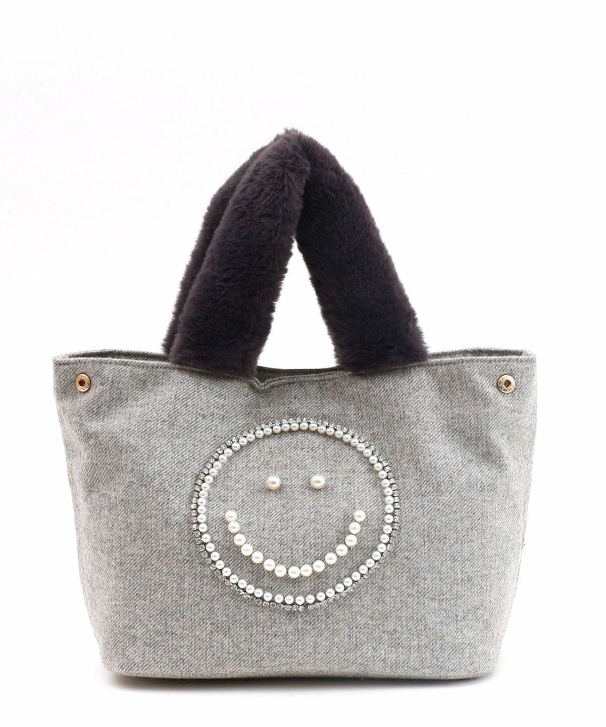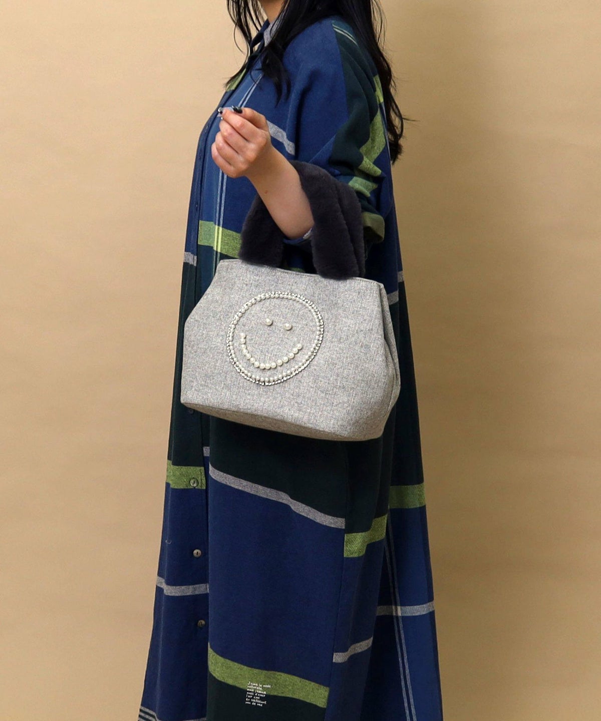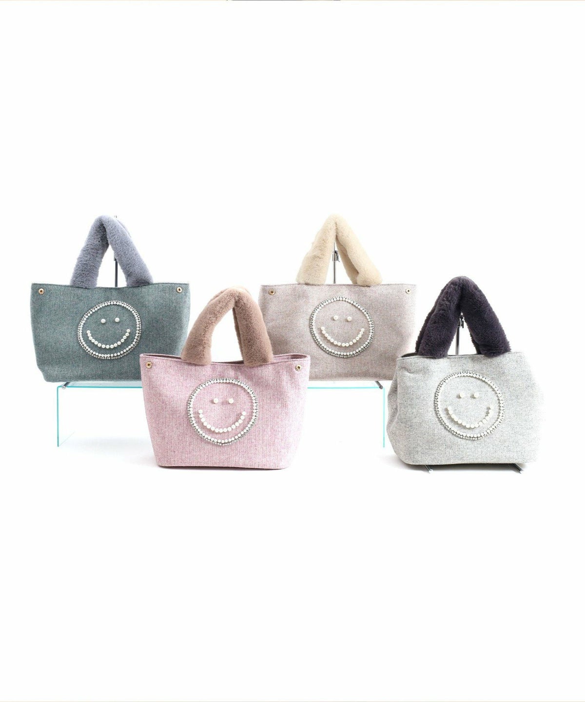 【OUTLET SALE】 SMILEY パール刺繍xエコファーハンドルトートバッグ