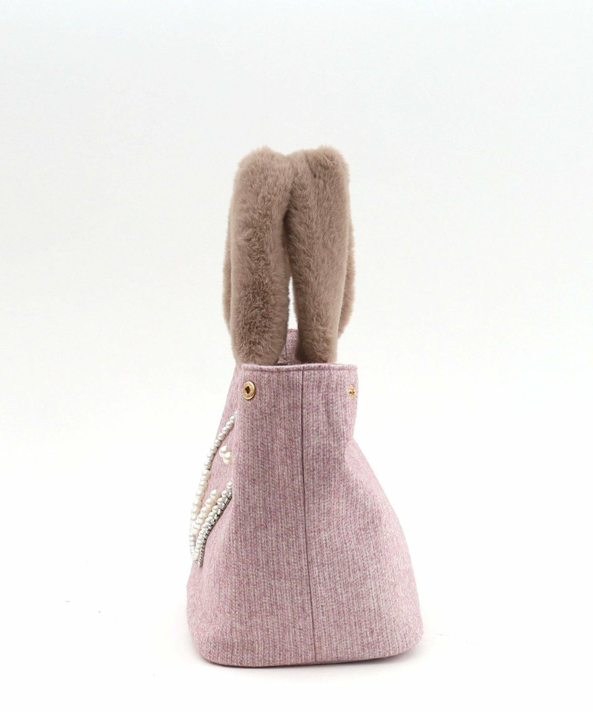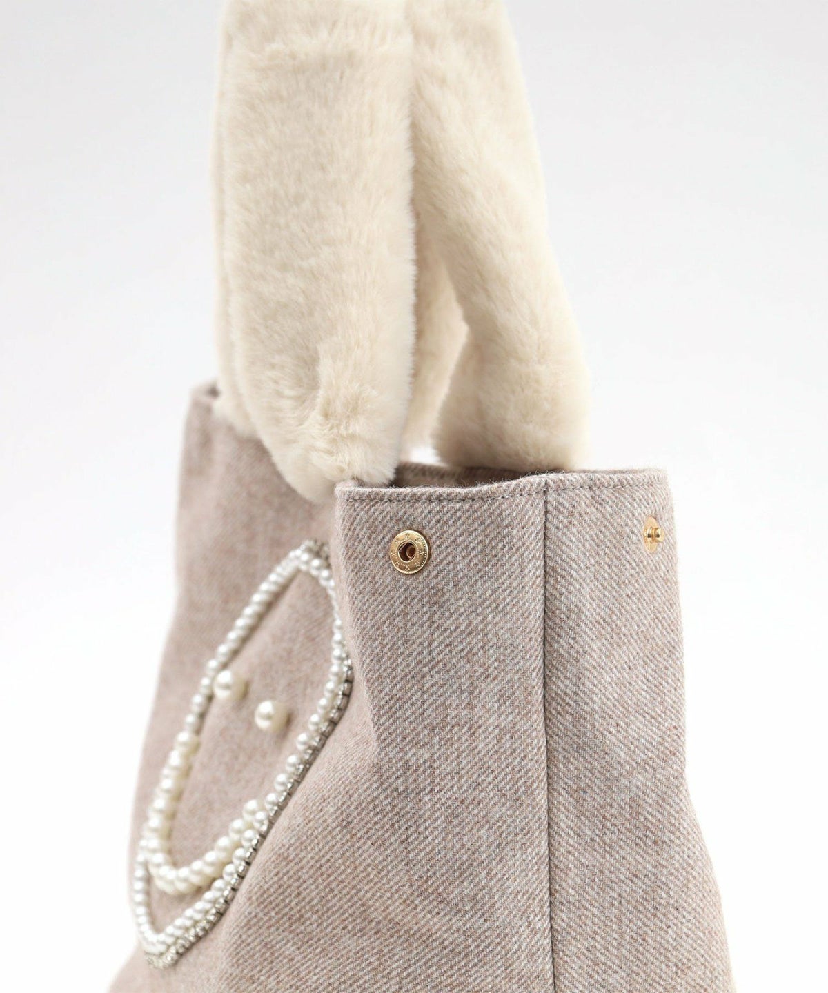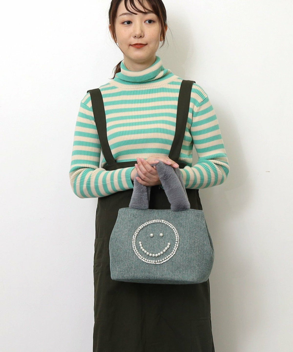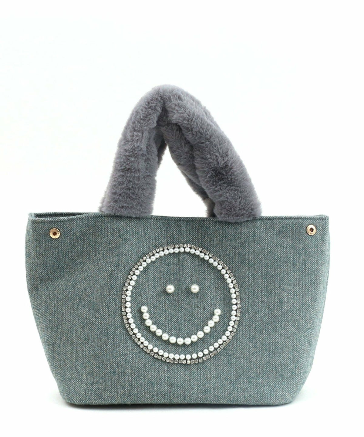 【OUTLET SALE】 SMILEY パール刺繍xエコファーハンドルトートバッグ