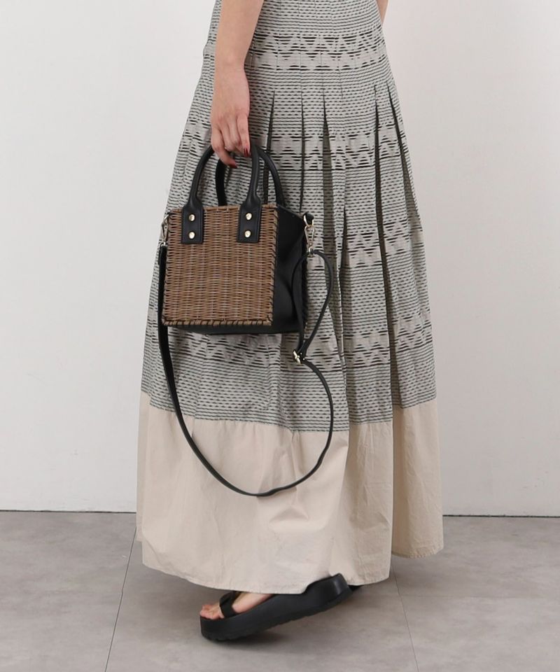 編みの細かい天然素材のラタンとPUのコンビ2WAYショルダーカゴバッグ。