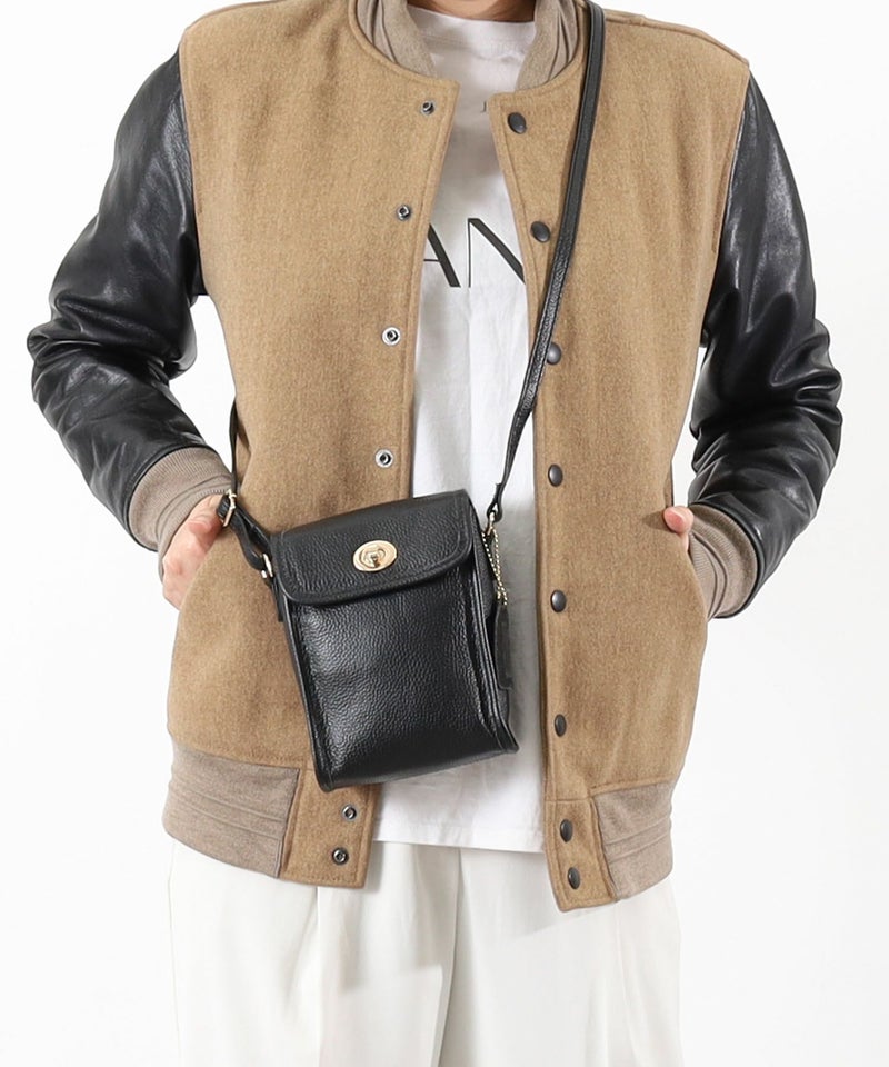 フラップ×ヒネリ金具がポイントの縦型ミニポシェットです。