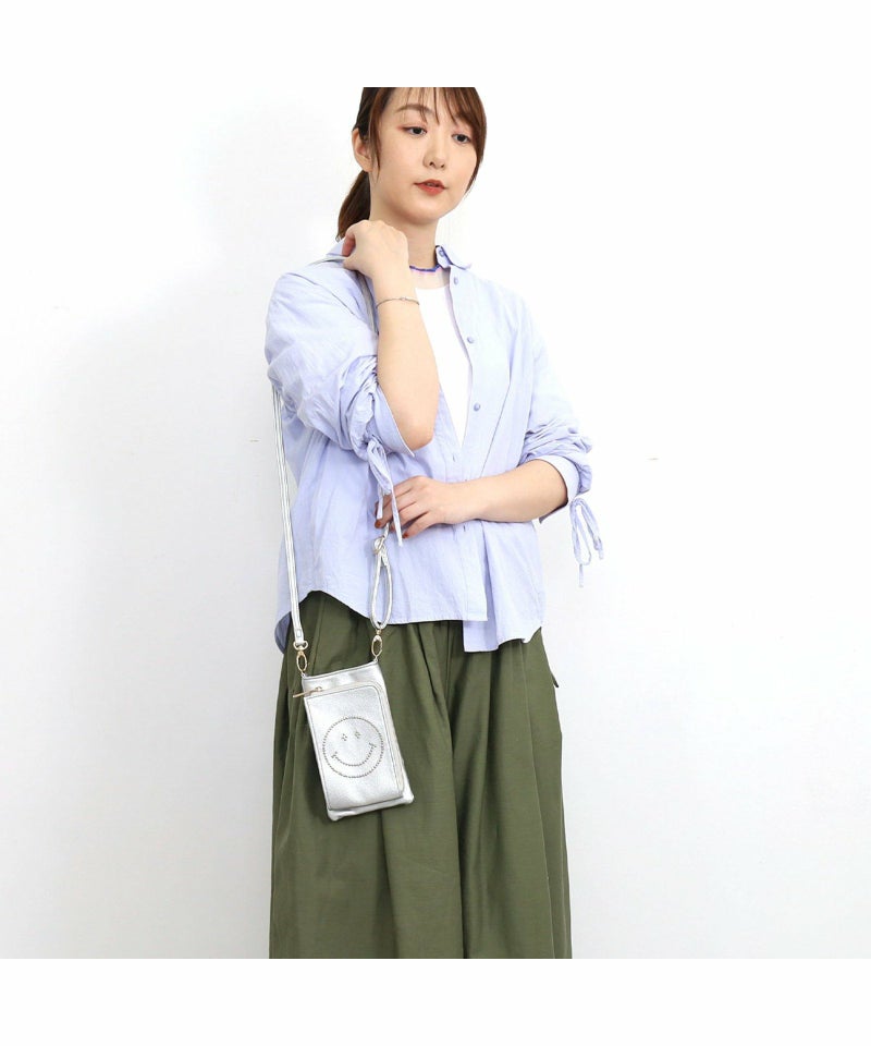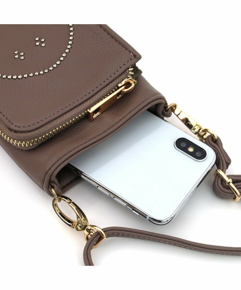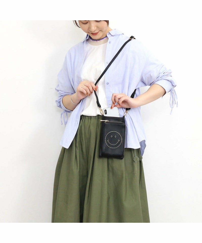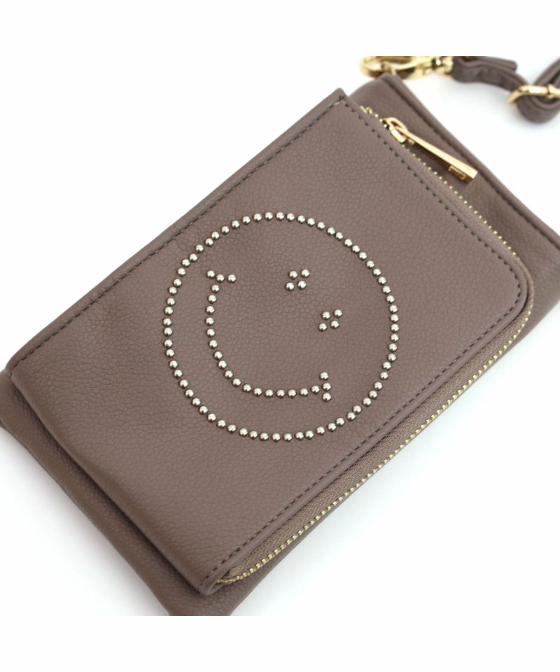 スタッズのSMILEYフェイスマークがポイントのスマホショルダーバッグです。