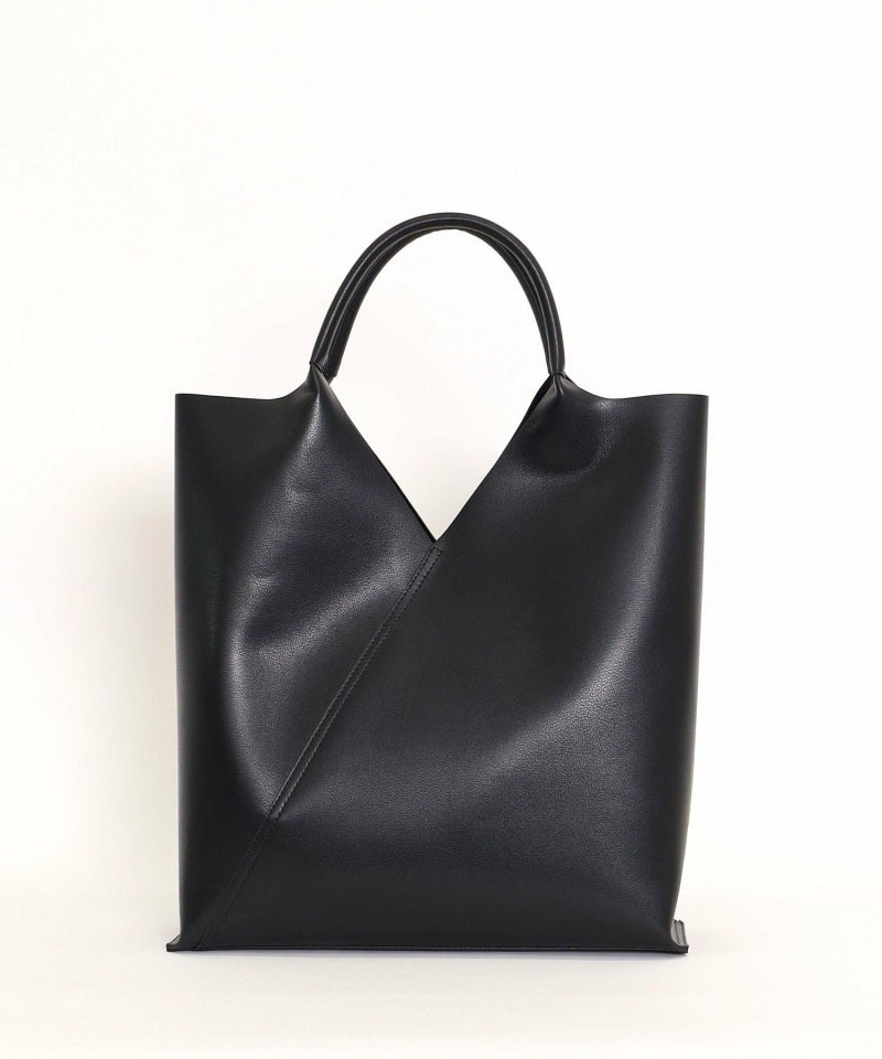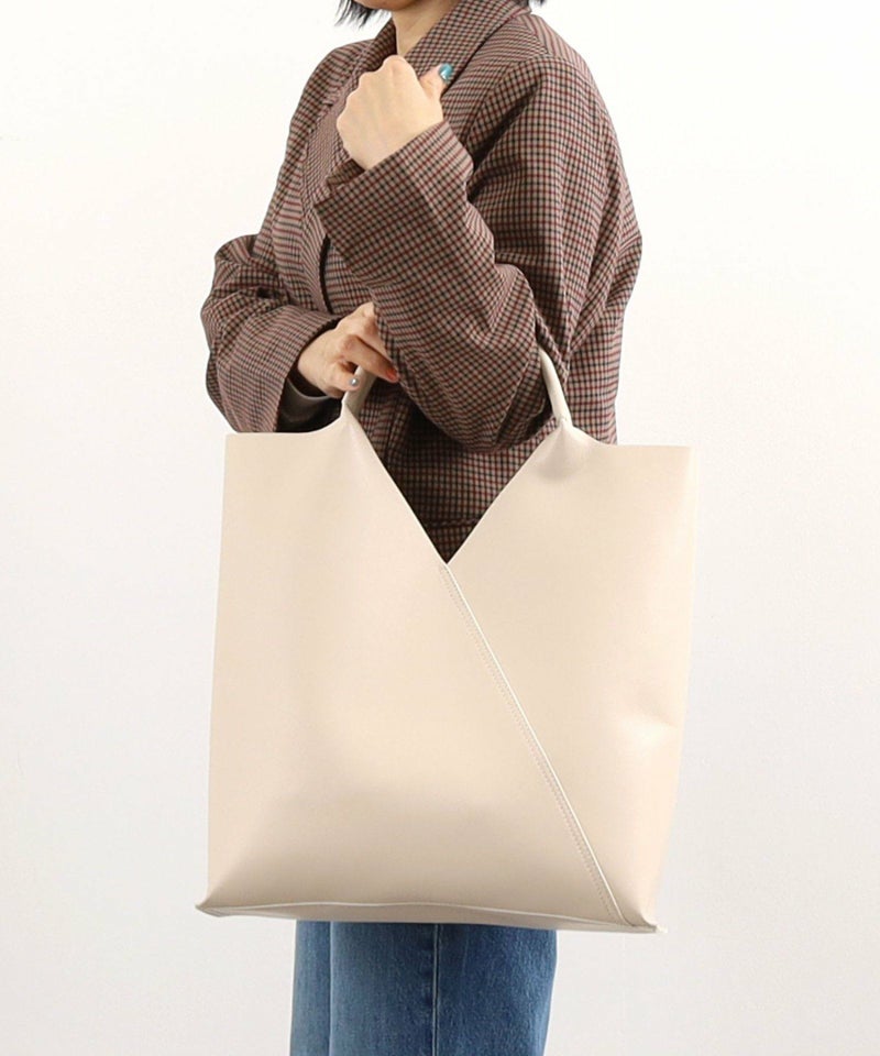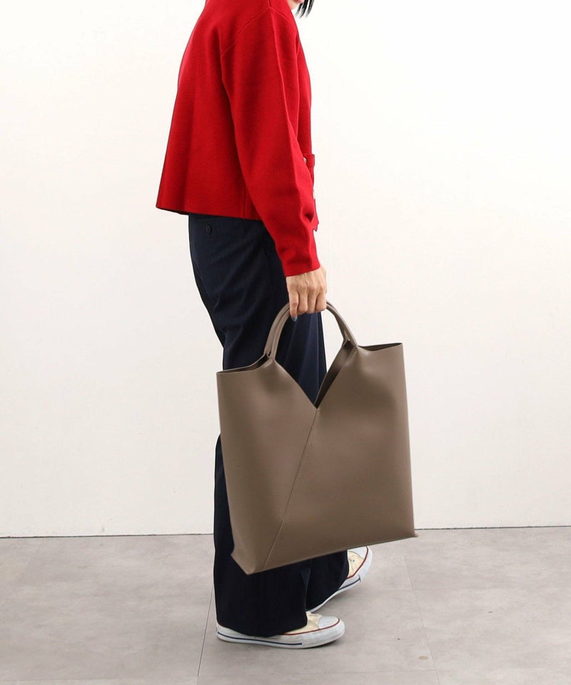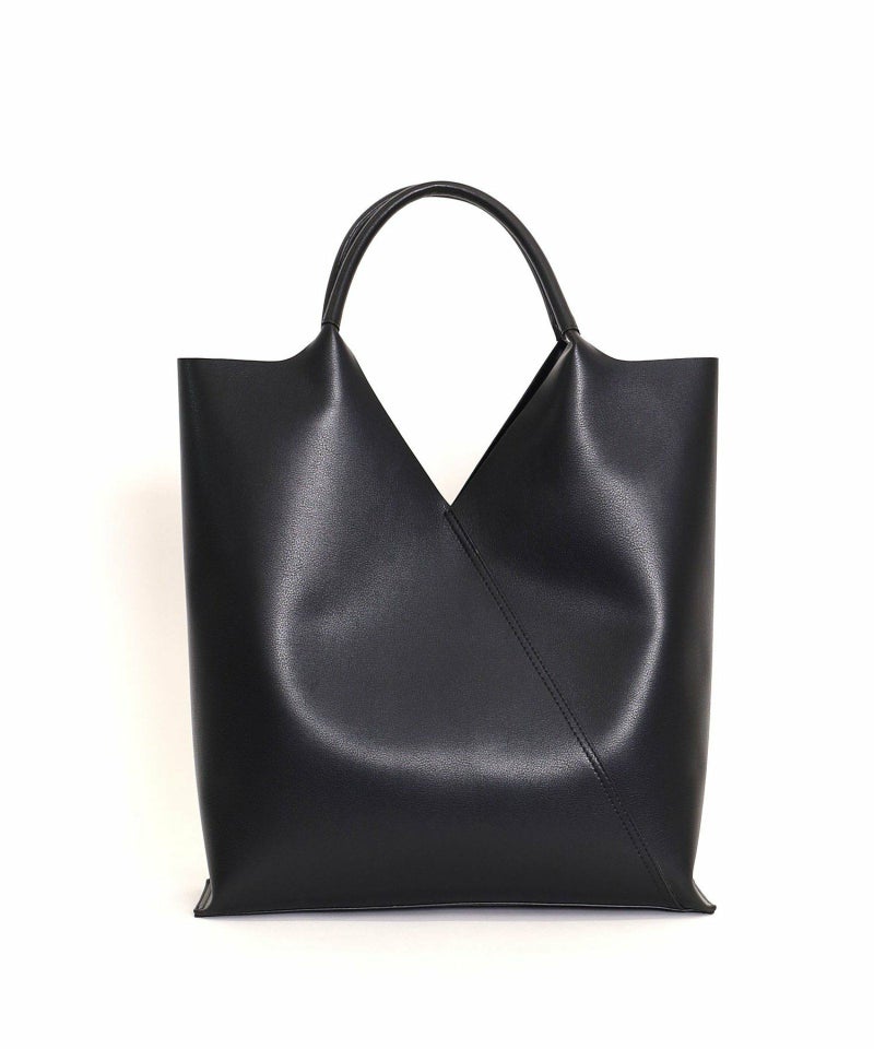 スクエアにカットされた口元が特徴のスタイリッシュなトートバッグ。