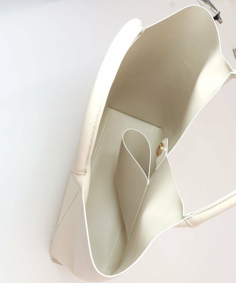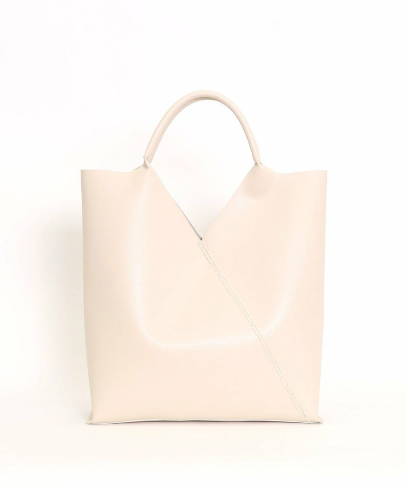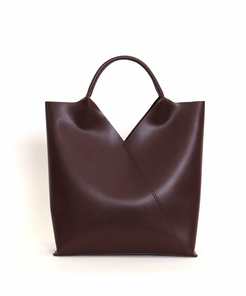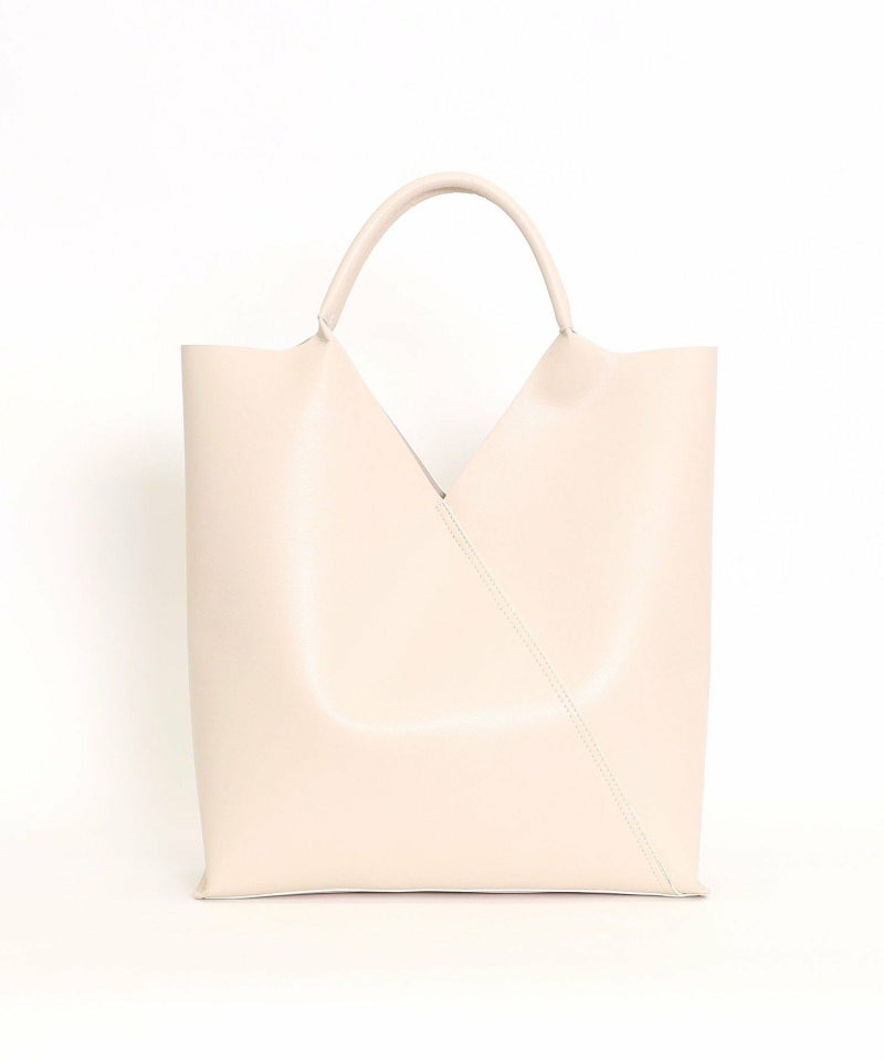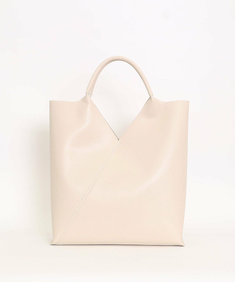 スクエアにカットされた口元が特徴のスタイリッシュなトートバッグ。