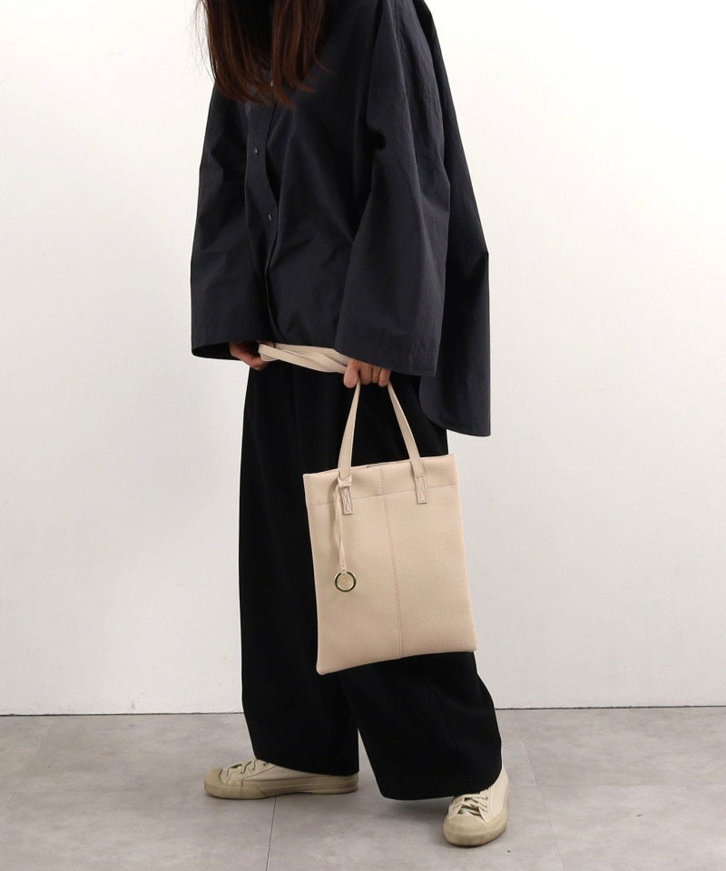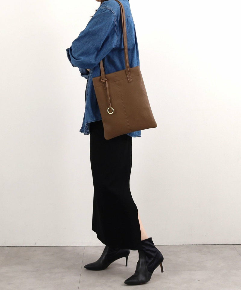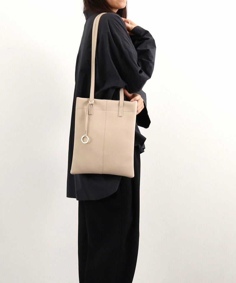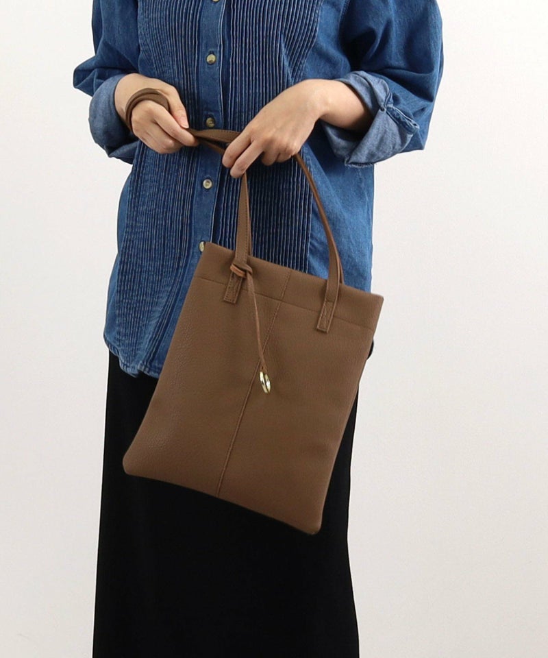 ソフトなフェイクレザーを使用したロングハンドルトート。
