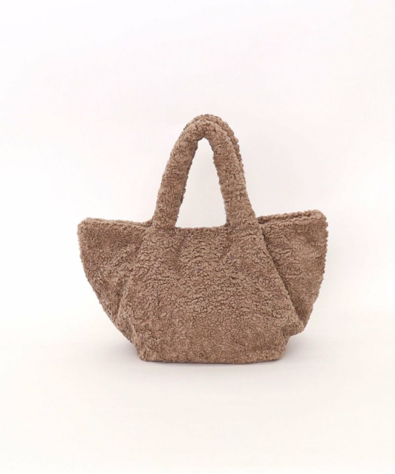 プードルの様な巻き毛のフェイクファーを使った温かみのあるトートバッグ。