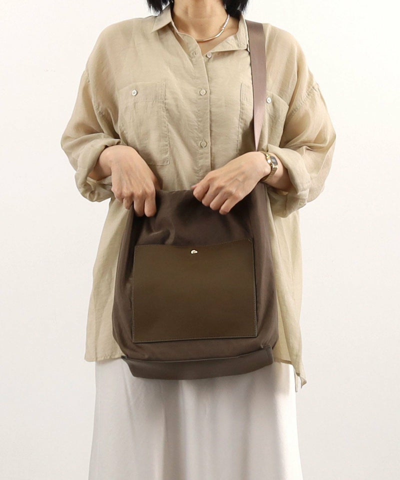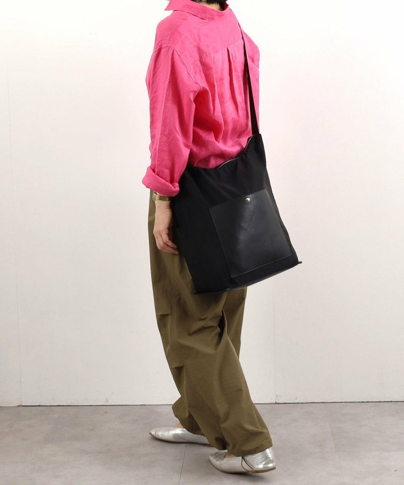 シンプルながらモダンなデザインが特徴のショルダーバッグです。