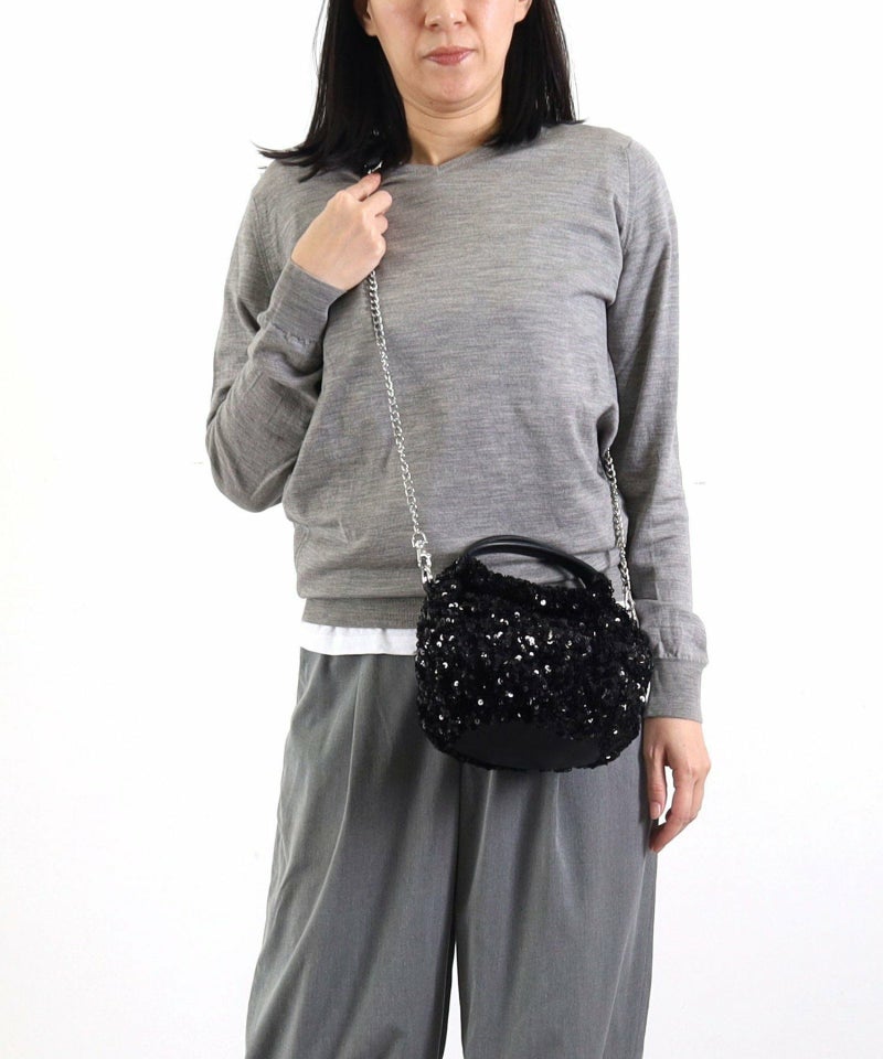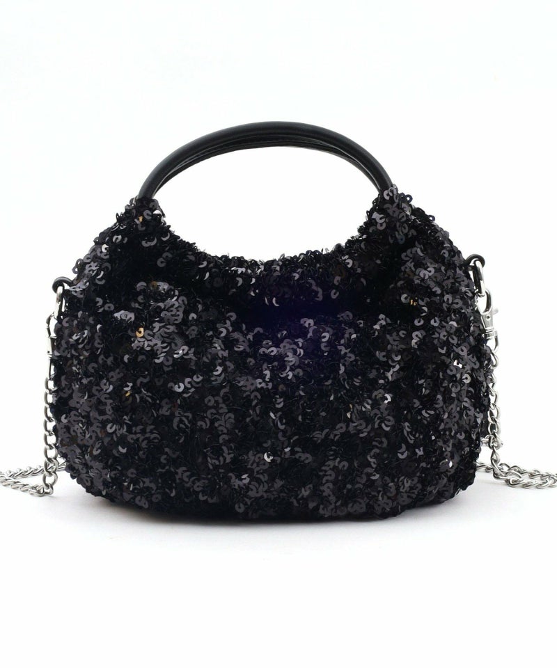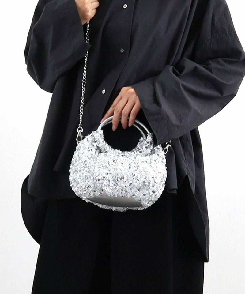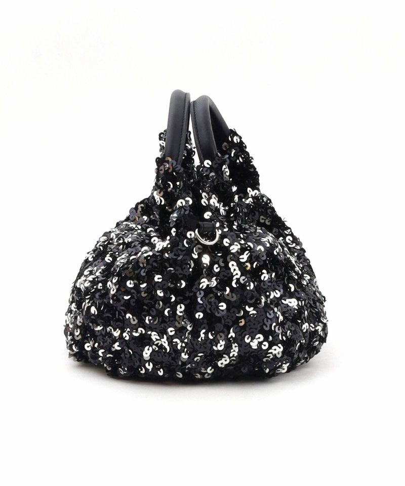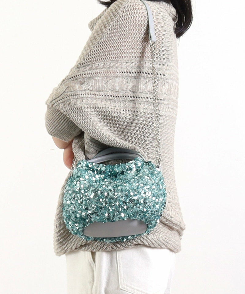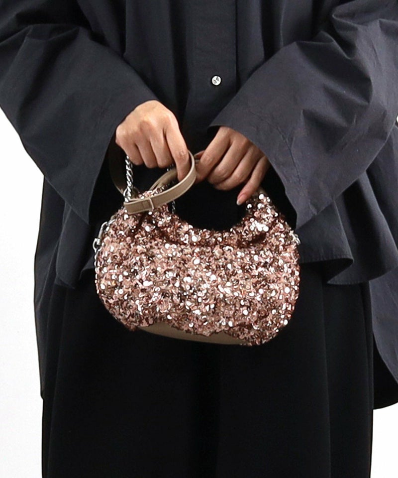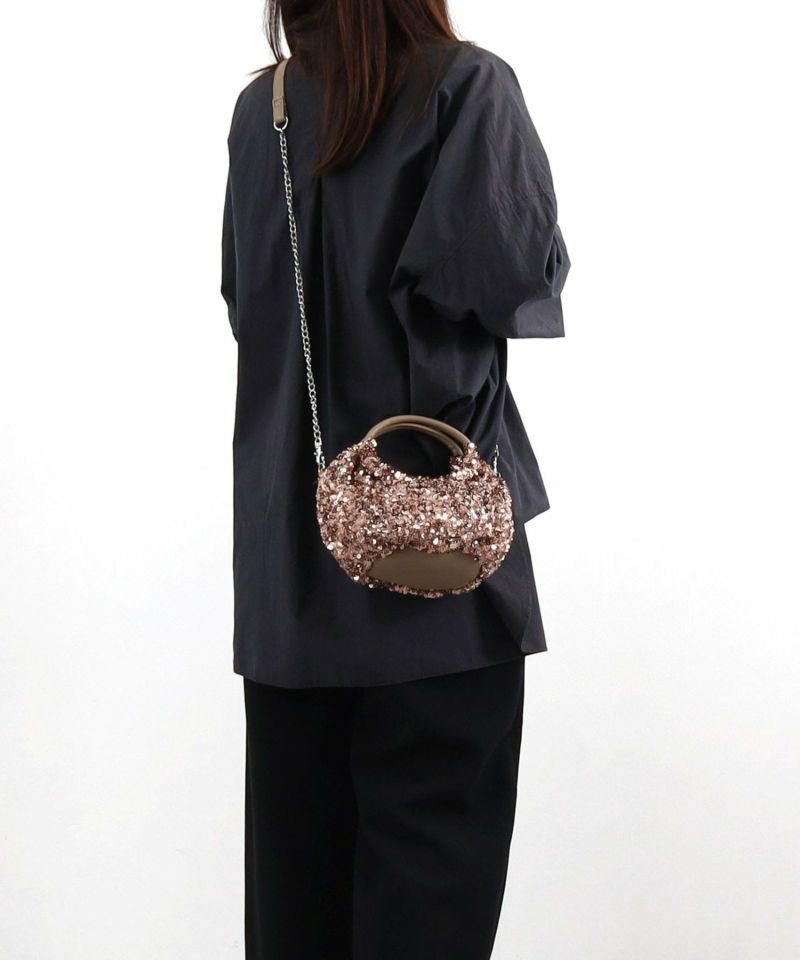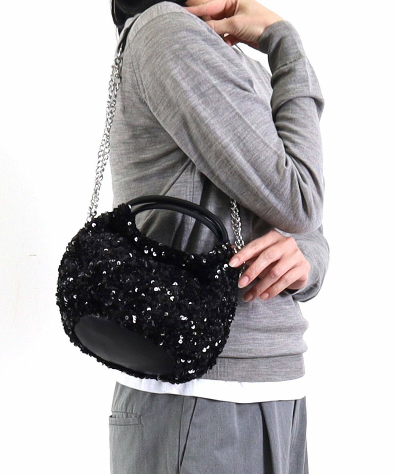 コロンとしたフォルムが可愛い、丸手のスパンコール2WAYバッグ。
