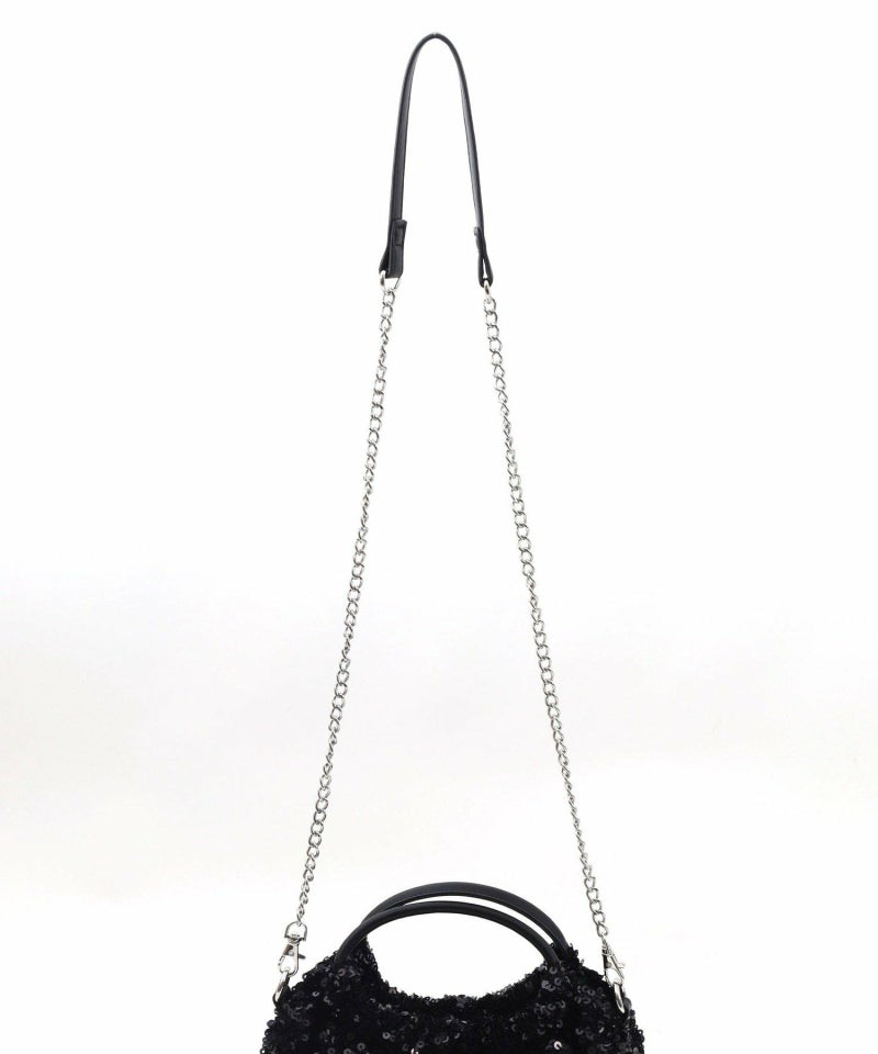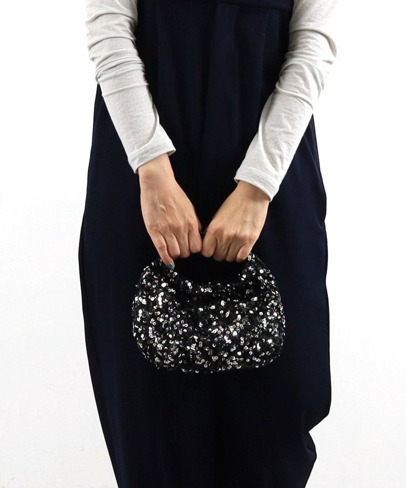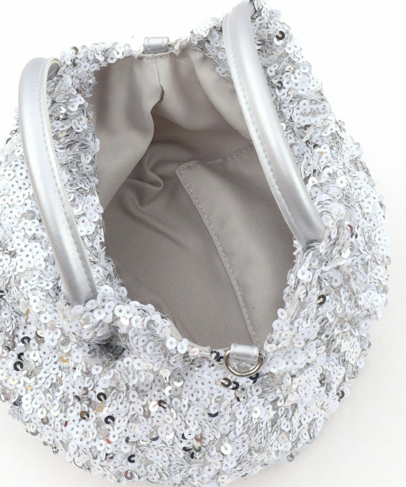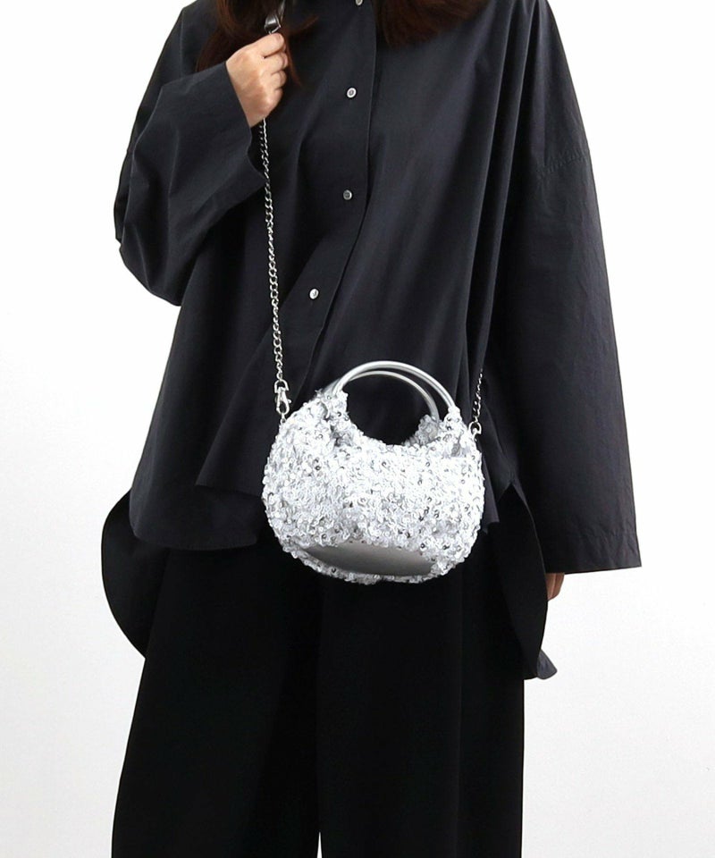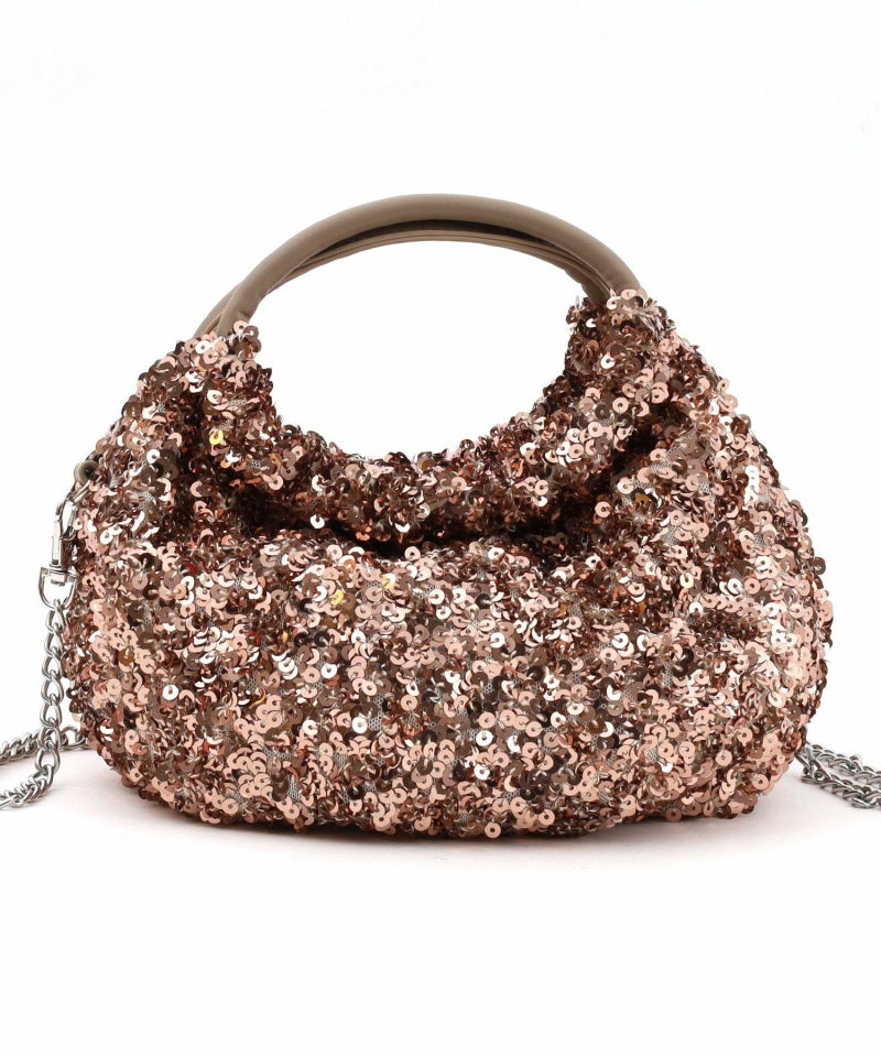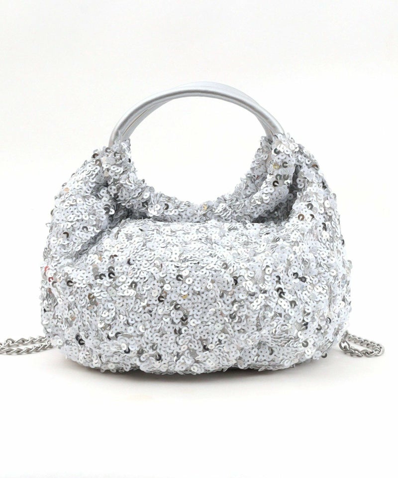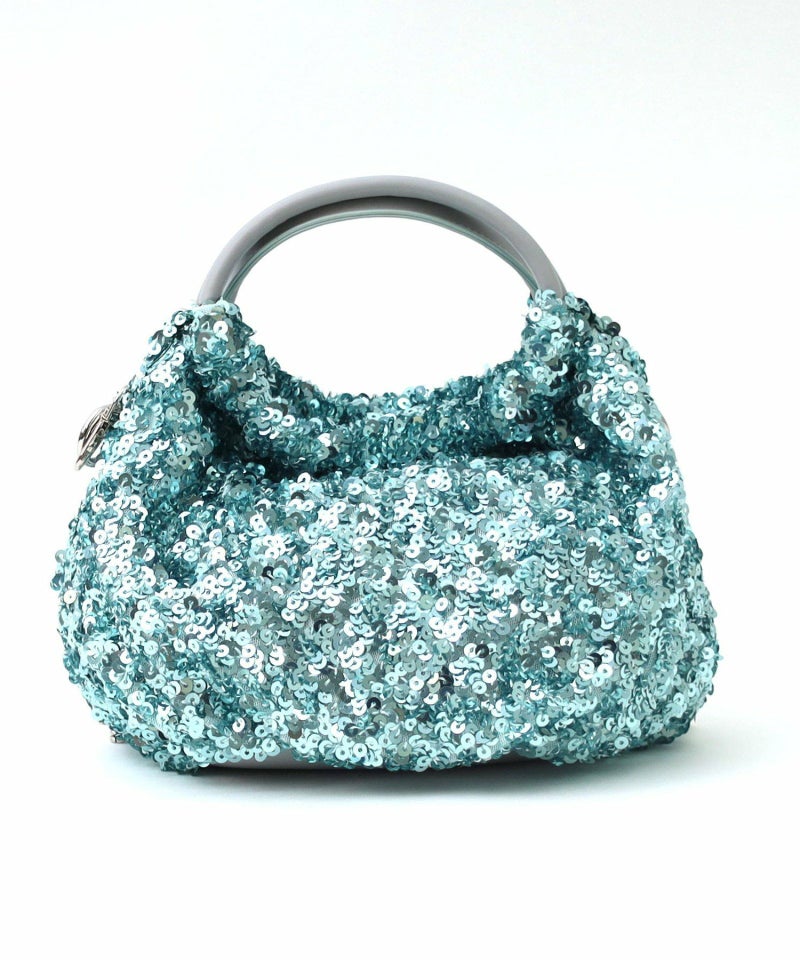 コロンとしたフォルムが可愛い、丸手のスパンコール2WAYバッグ。