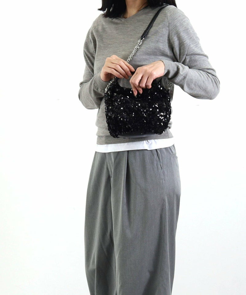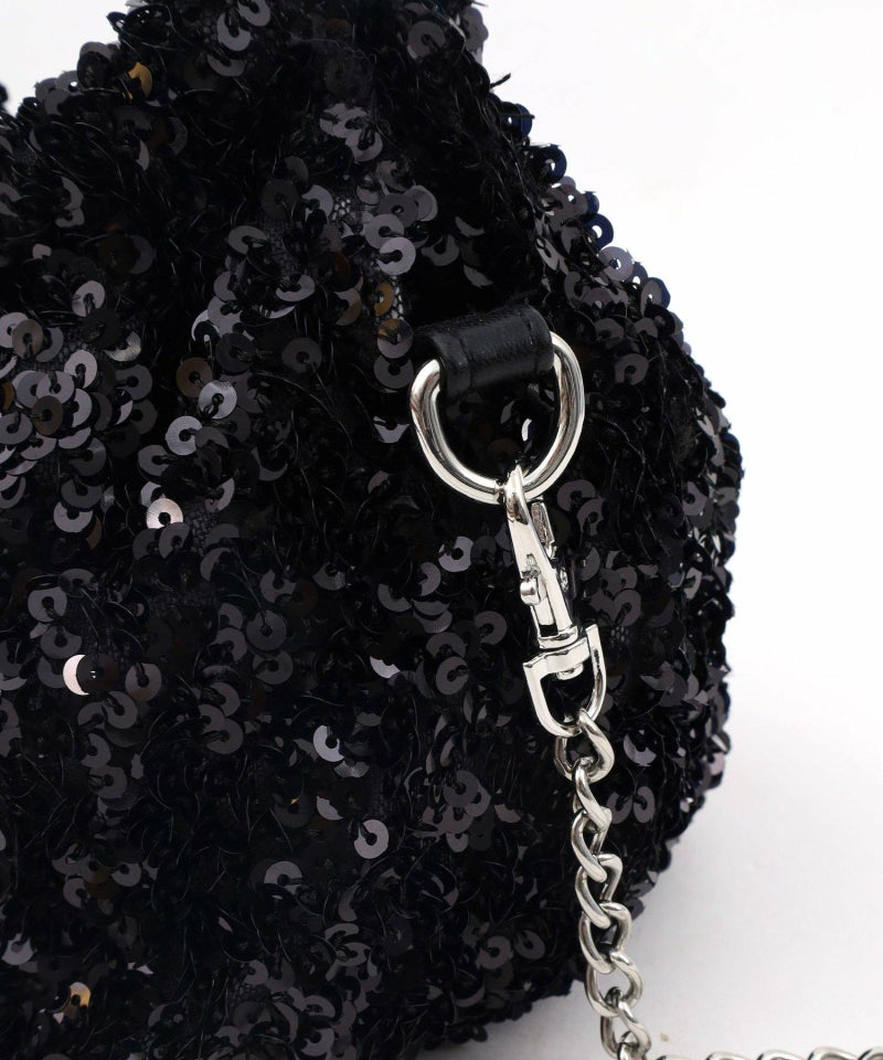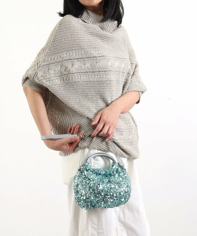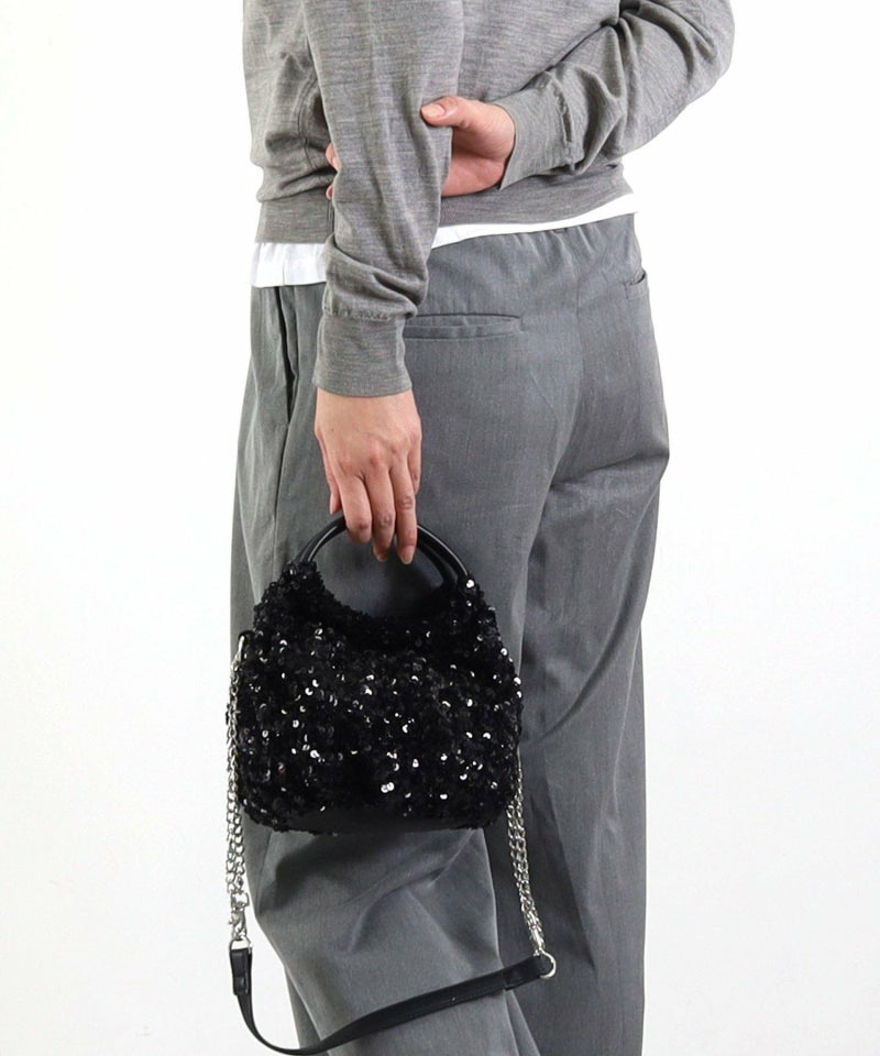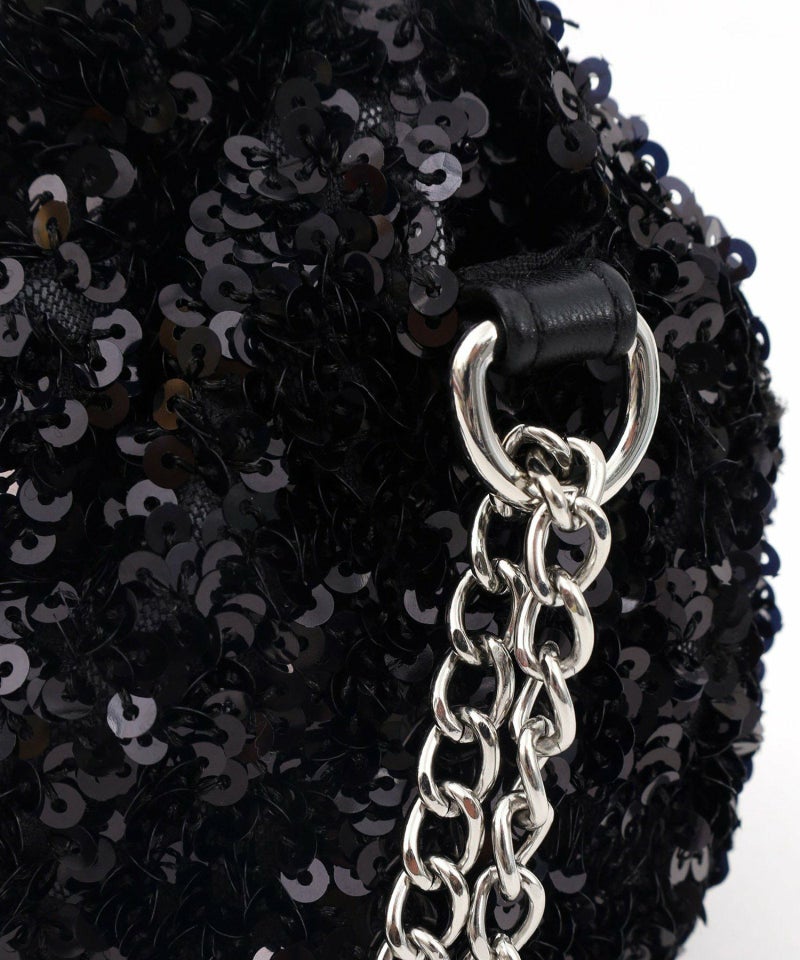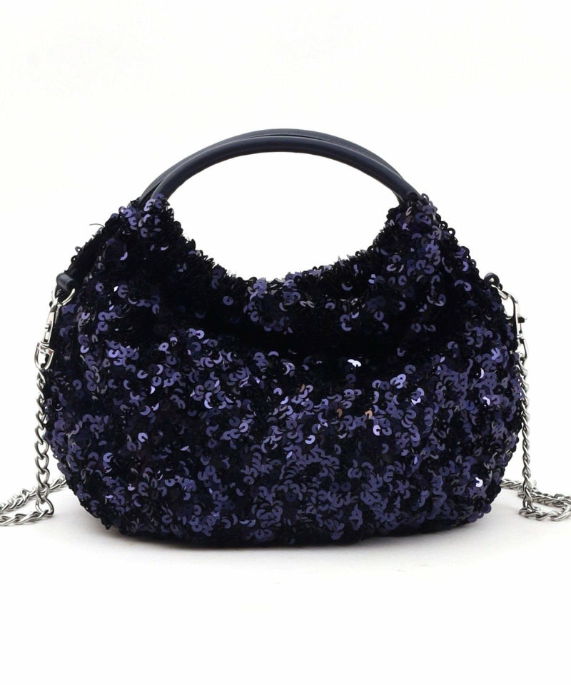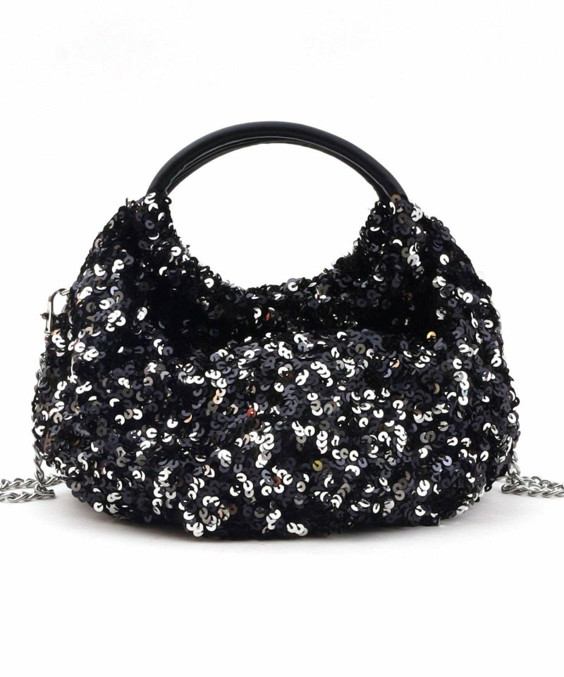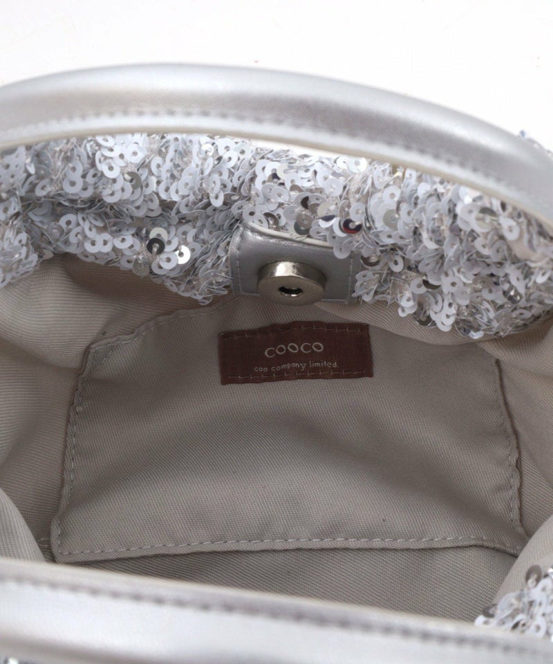 コロンとしたフォルムが可愛い、丸手のスパンコール2WAYバッグ。
