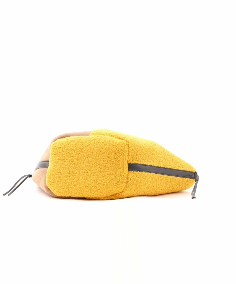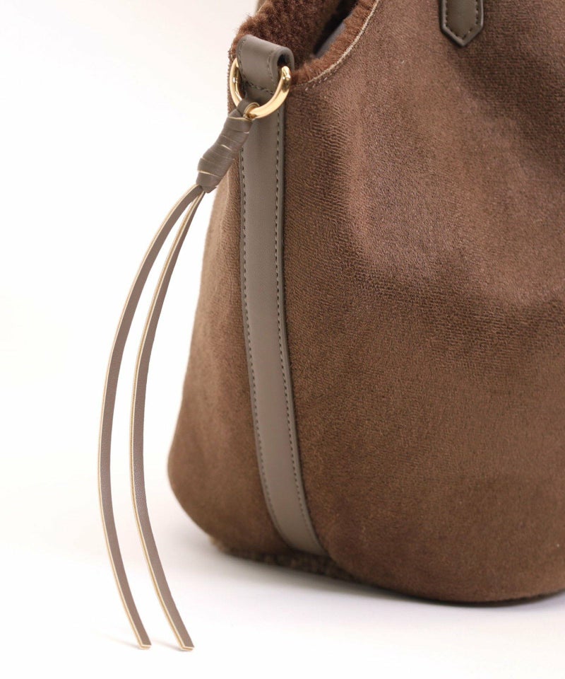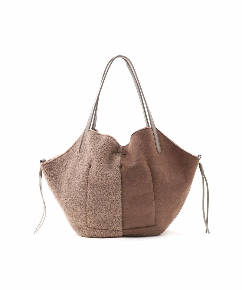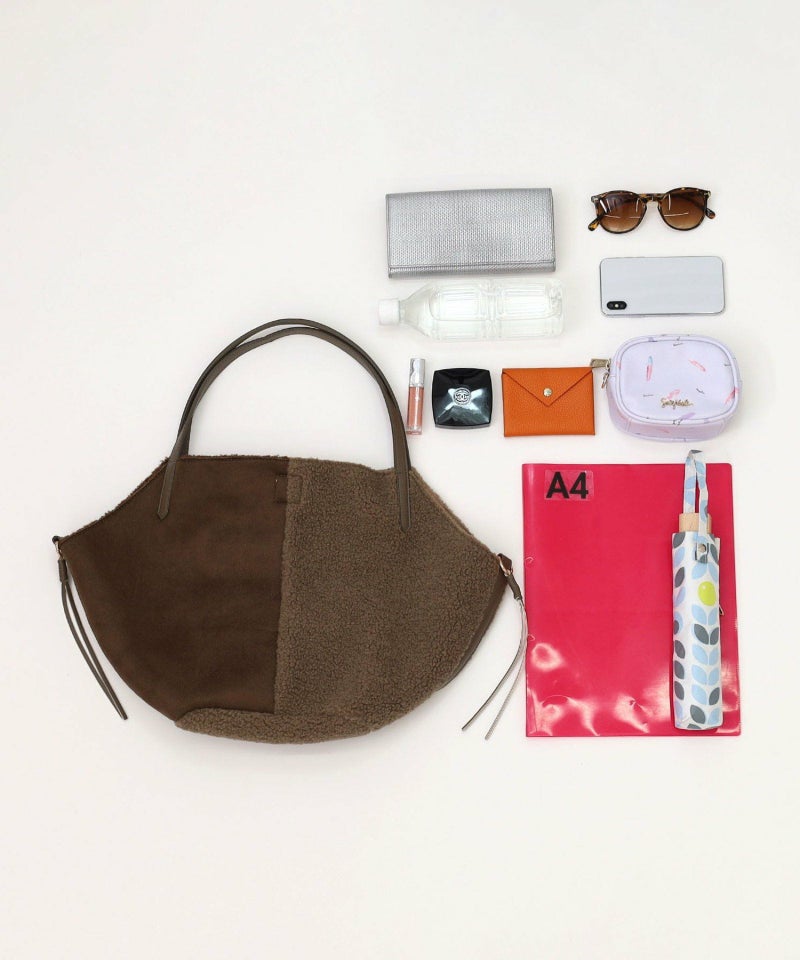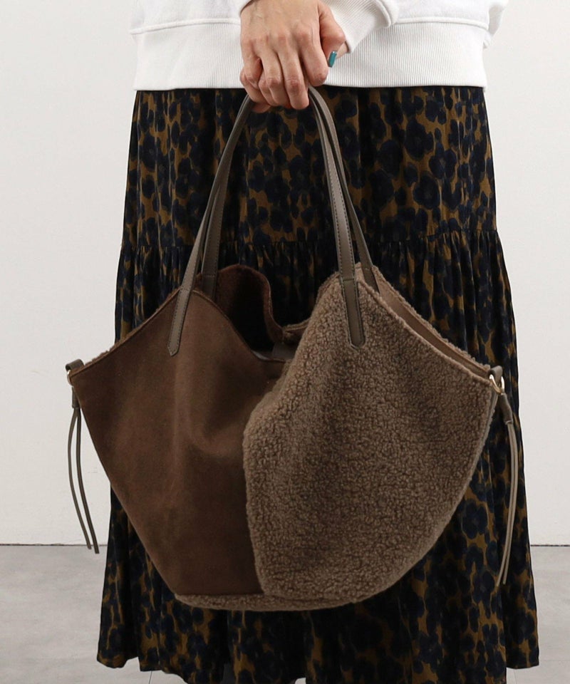 シンプルながらもバイカラーデザインが特徴のムートン風トートバッグです。