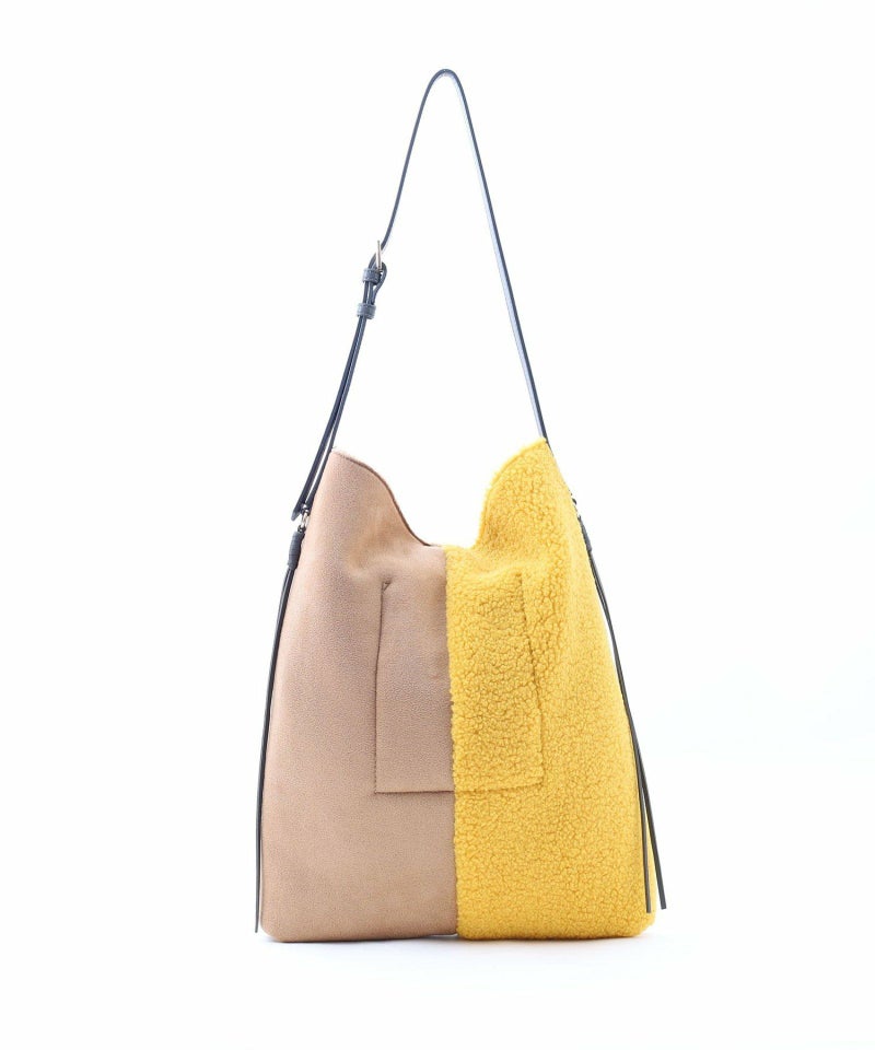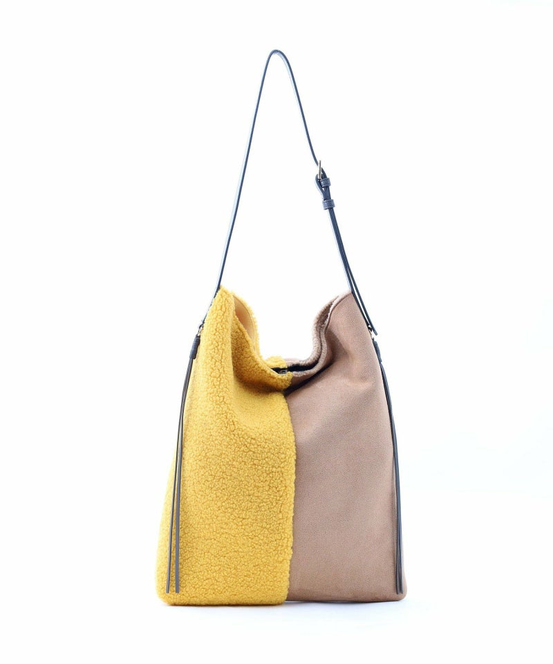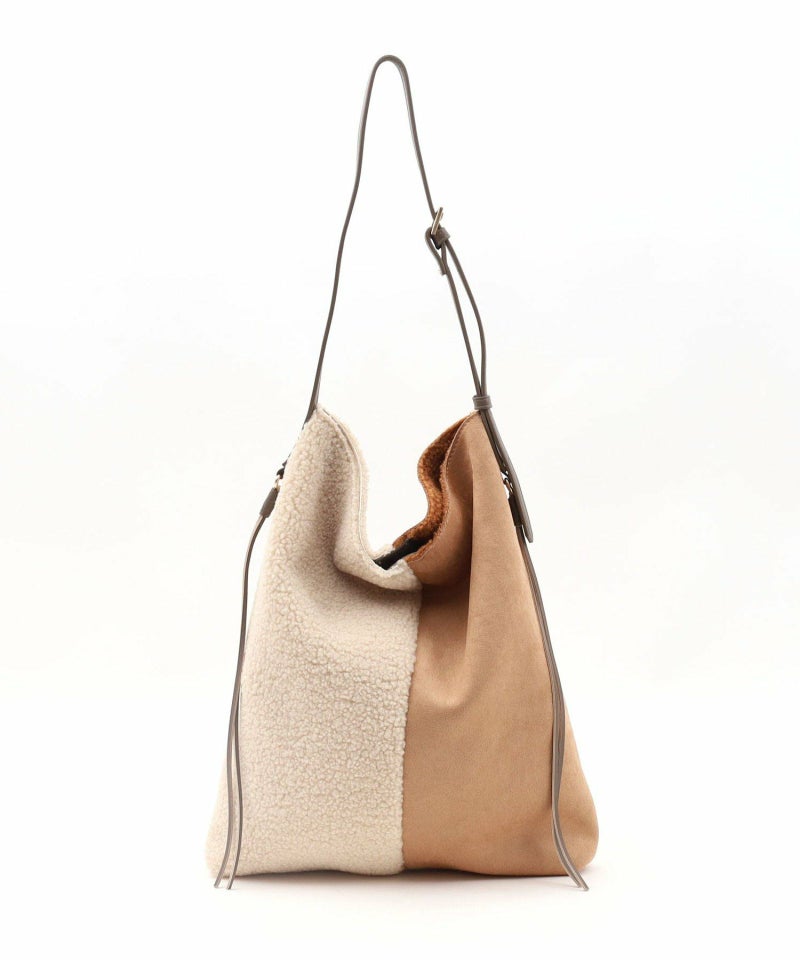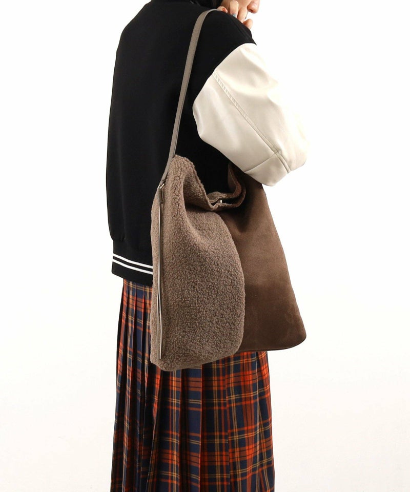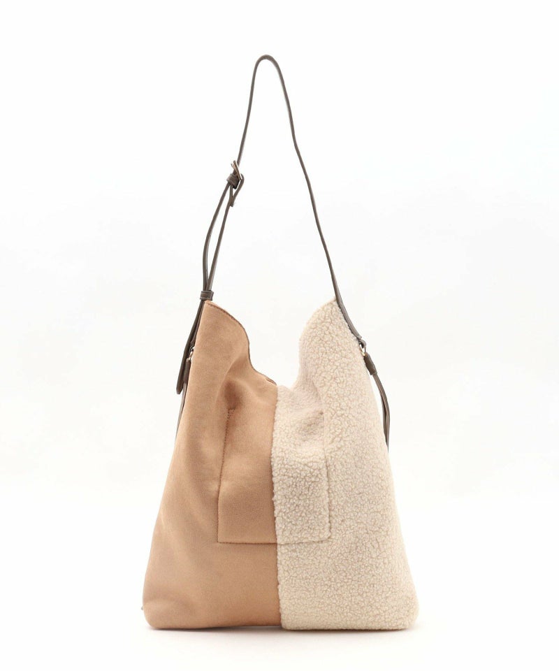 シンプルながらもバイカラーデザインが特徴のムートン風ショルダーバッグです。