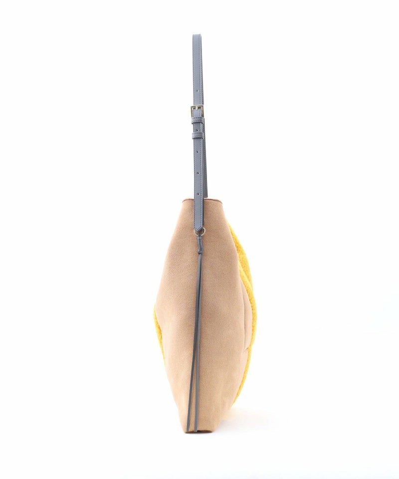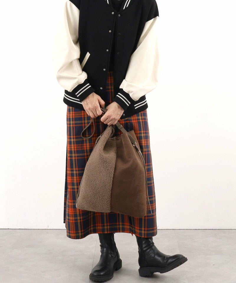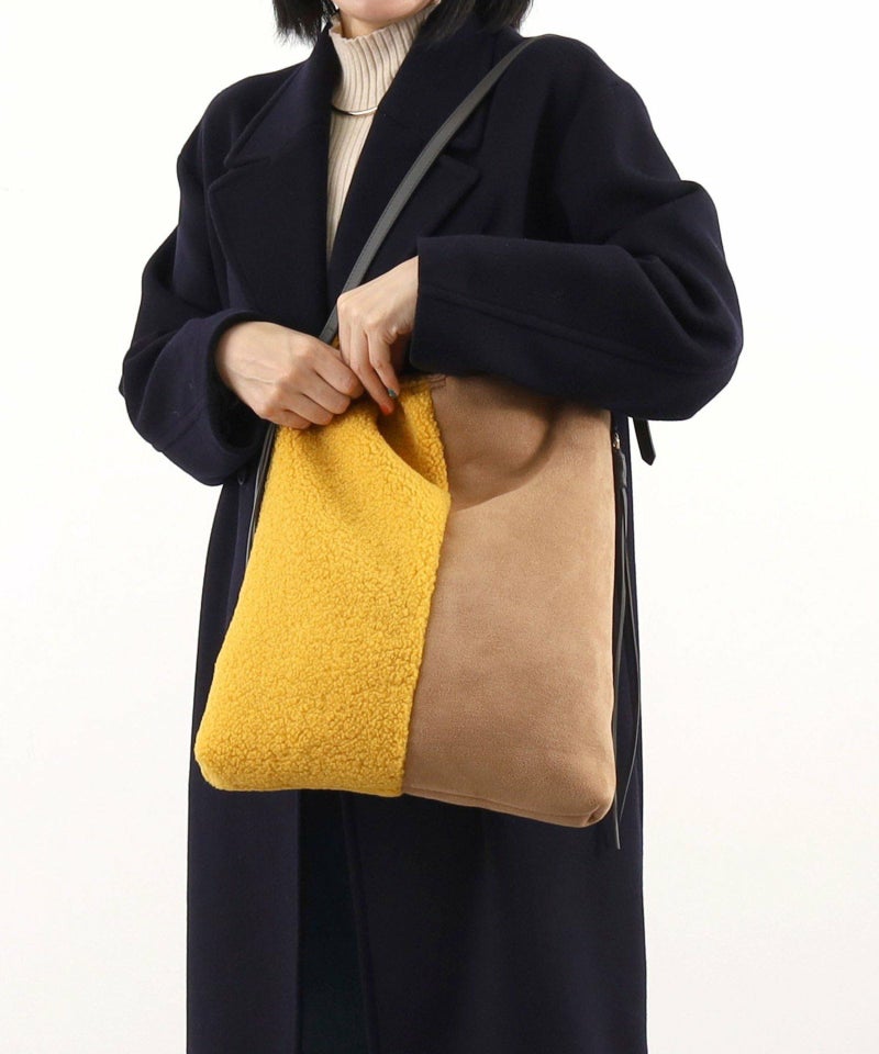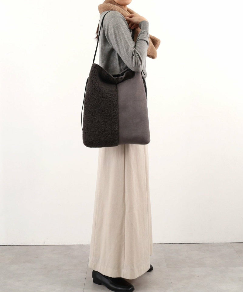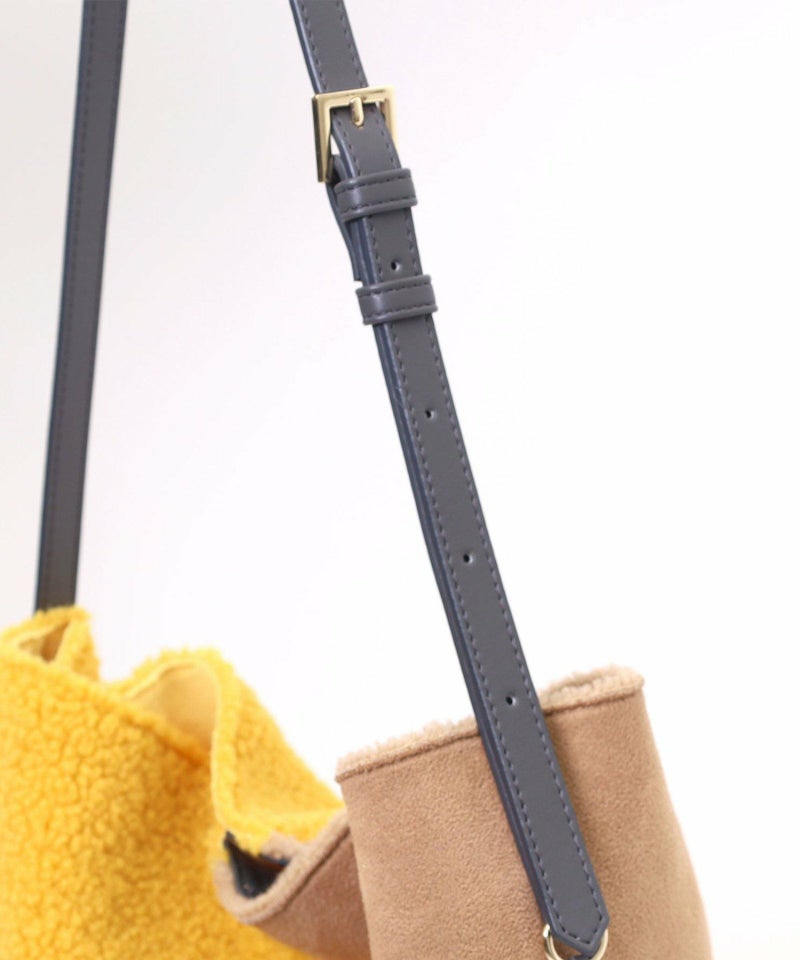 シンプルながらもバイカラーデザインが特徴のムートン風ショルダーバッグです。