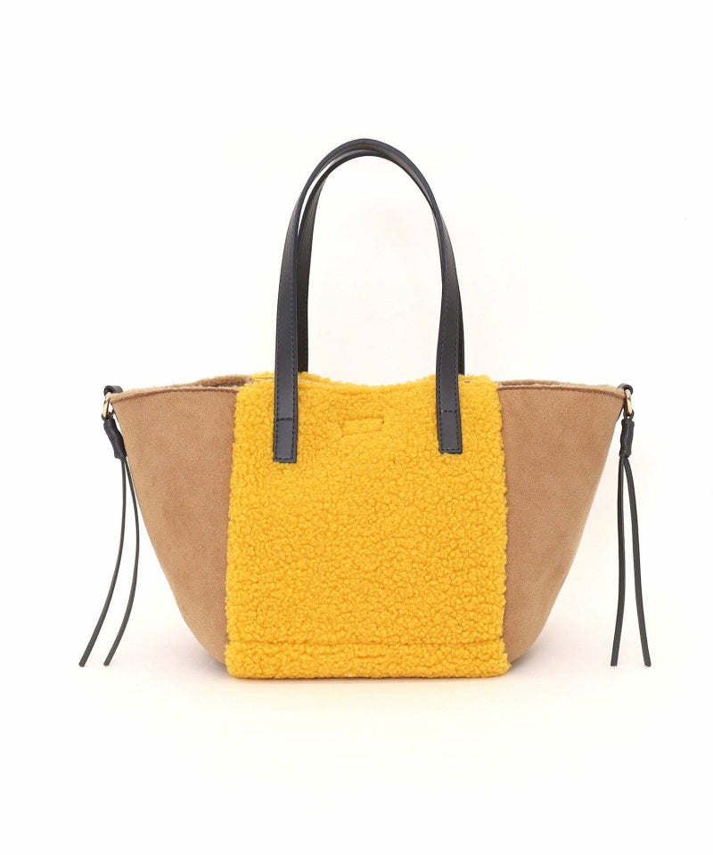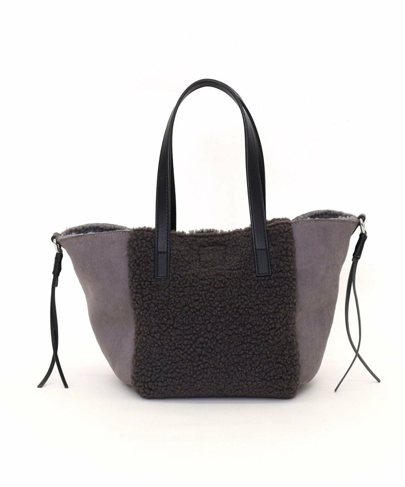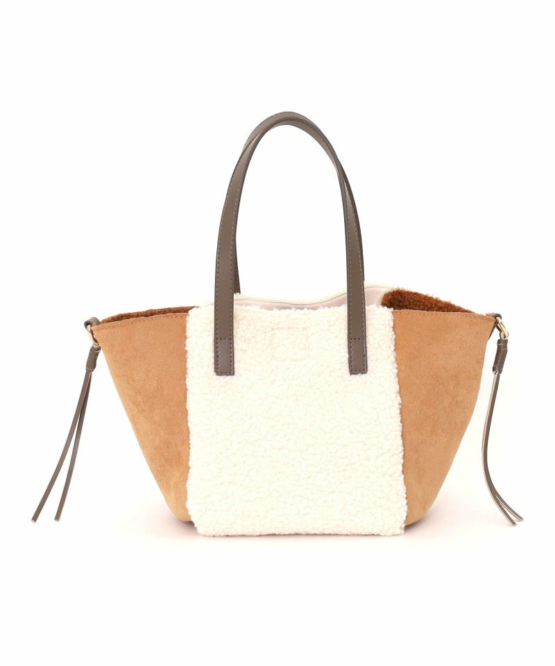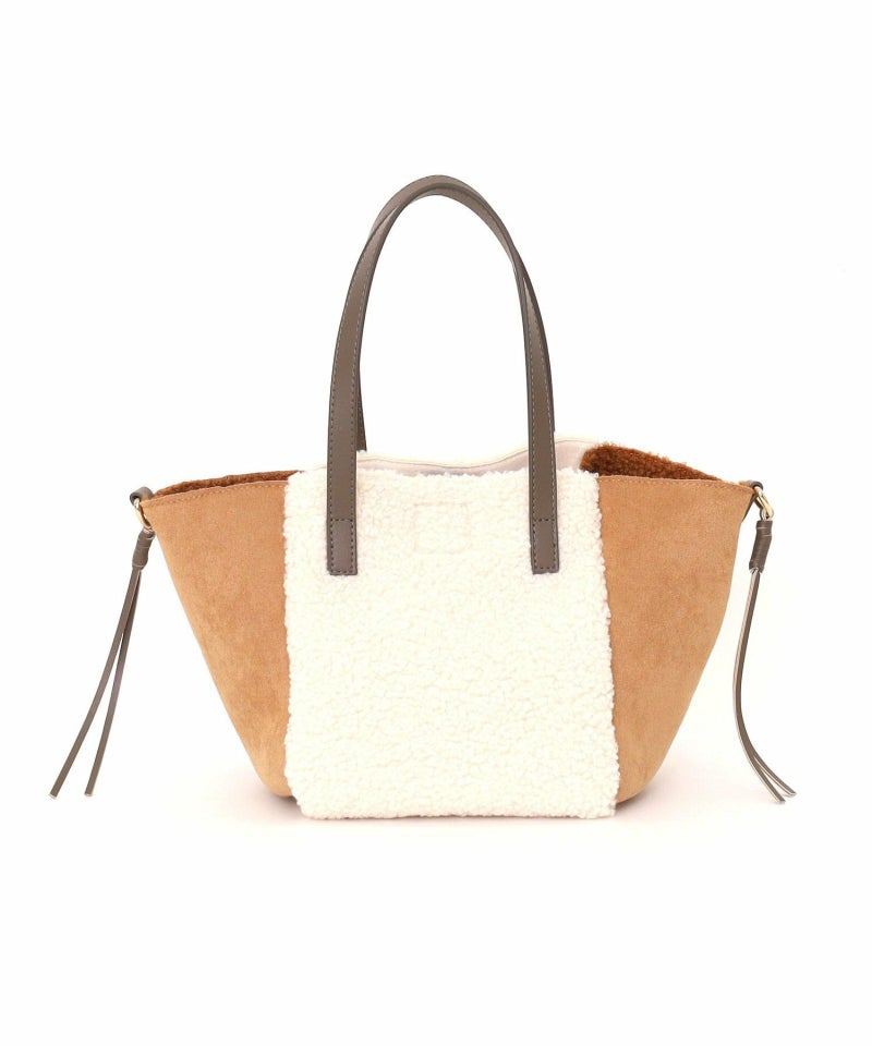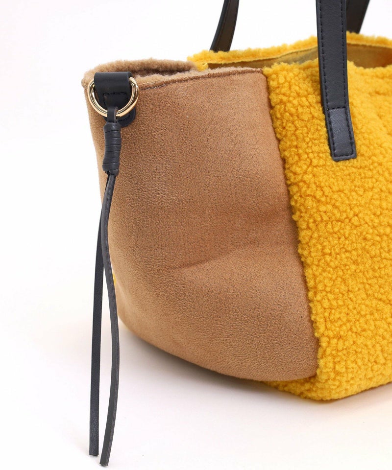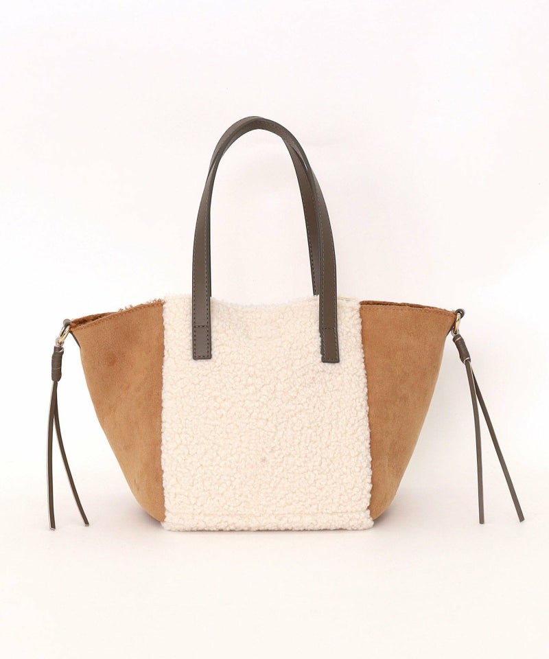 シンプルながらもバイカラーデザインが特徴のムートン風トートバッグです。