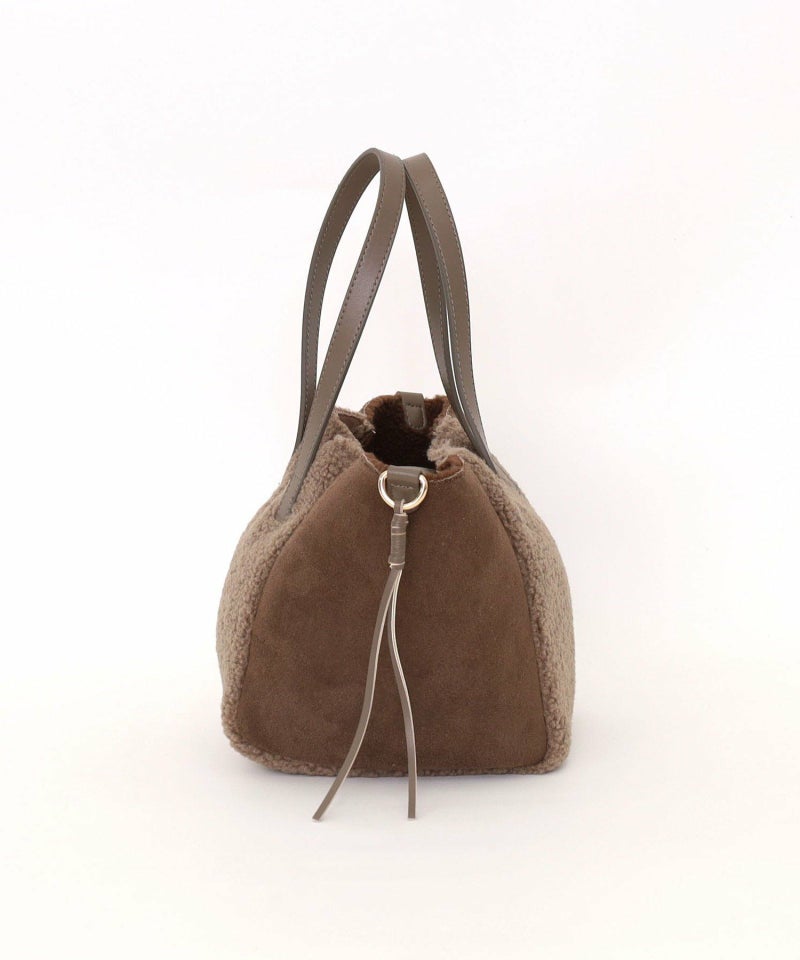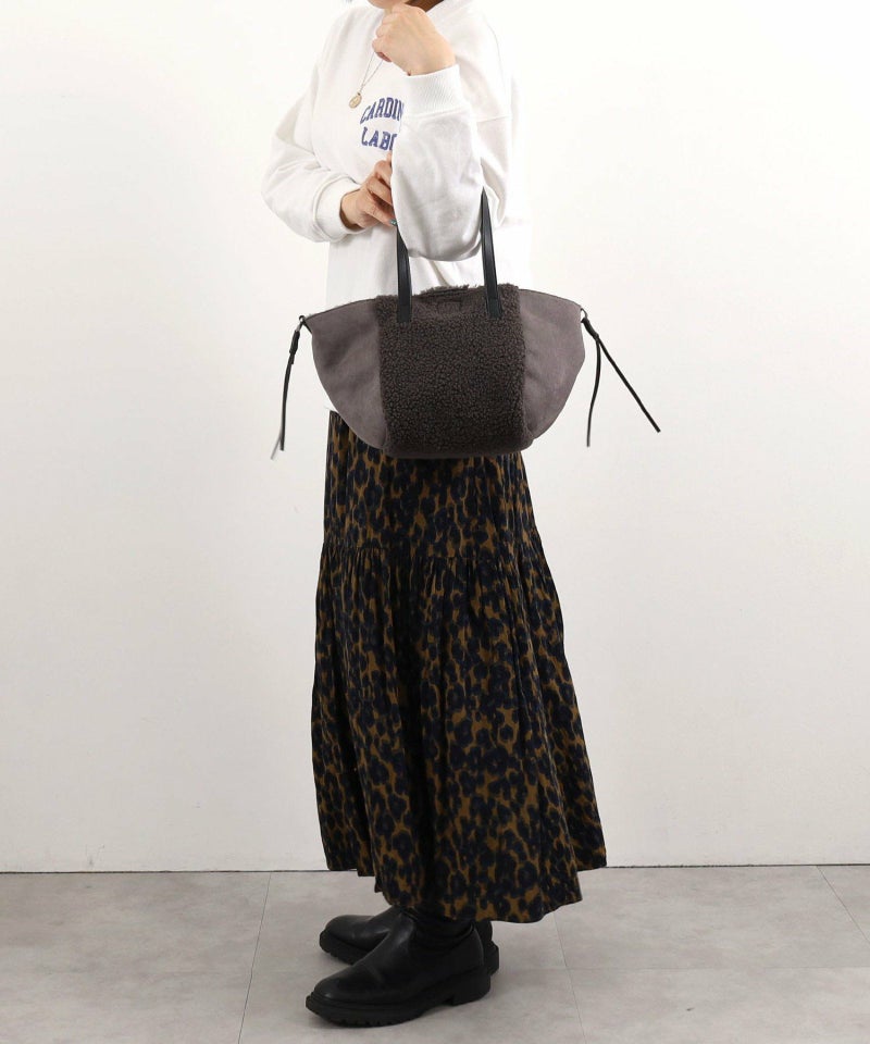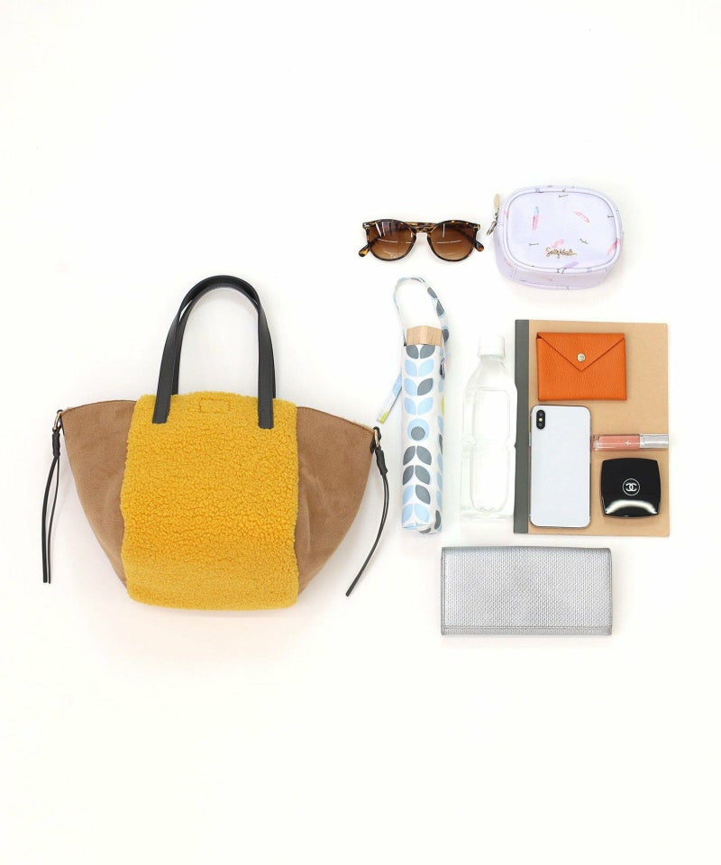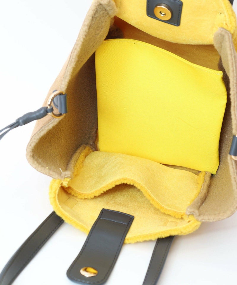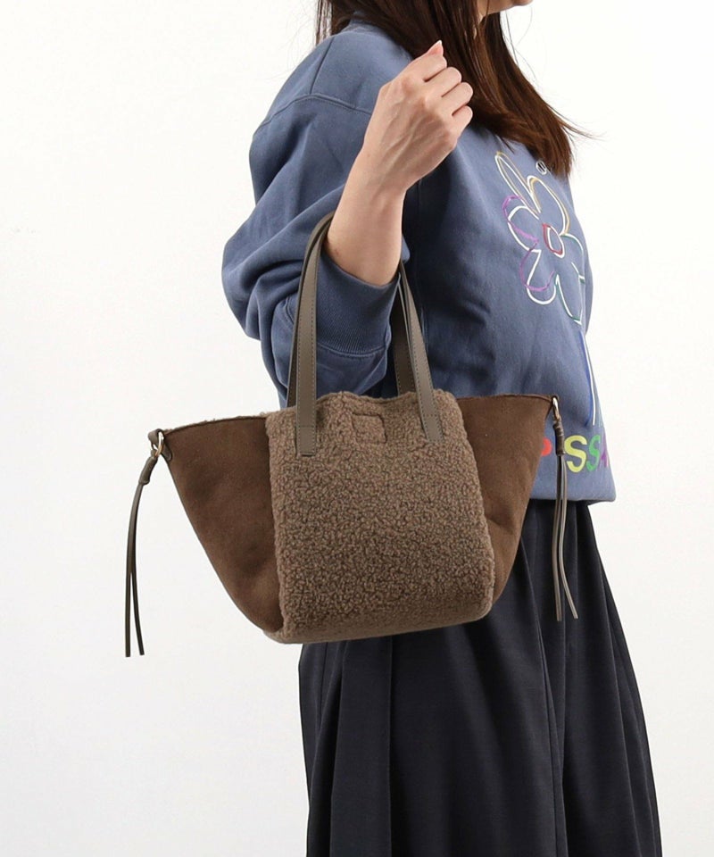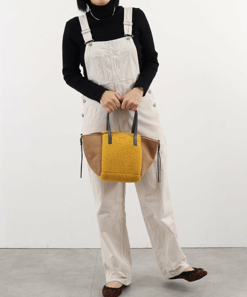 シンプルながらもバイカラーデザインが特徴のムートン風トートバッグです。