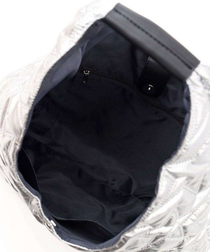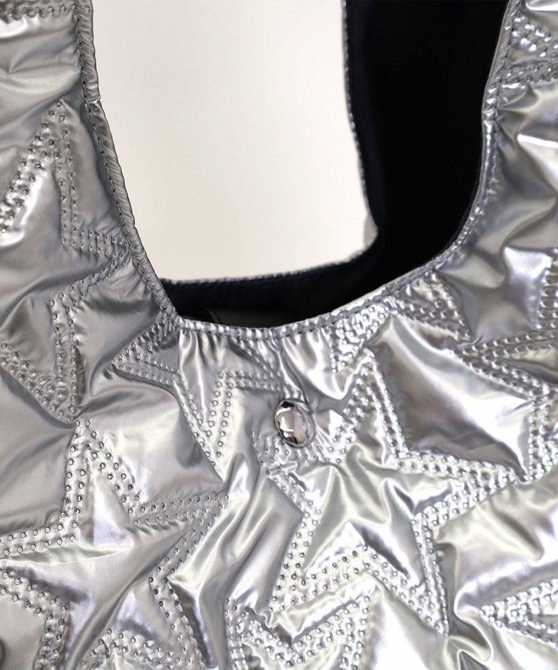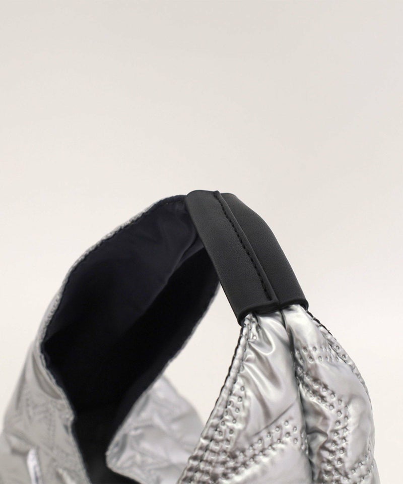 ピカリと光るメタリック生地のクリテバッグ。