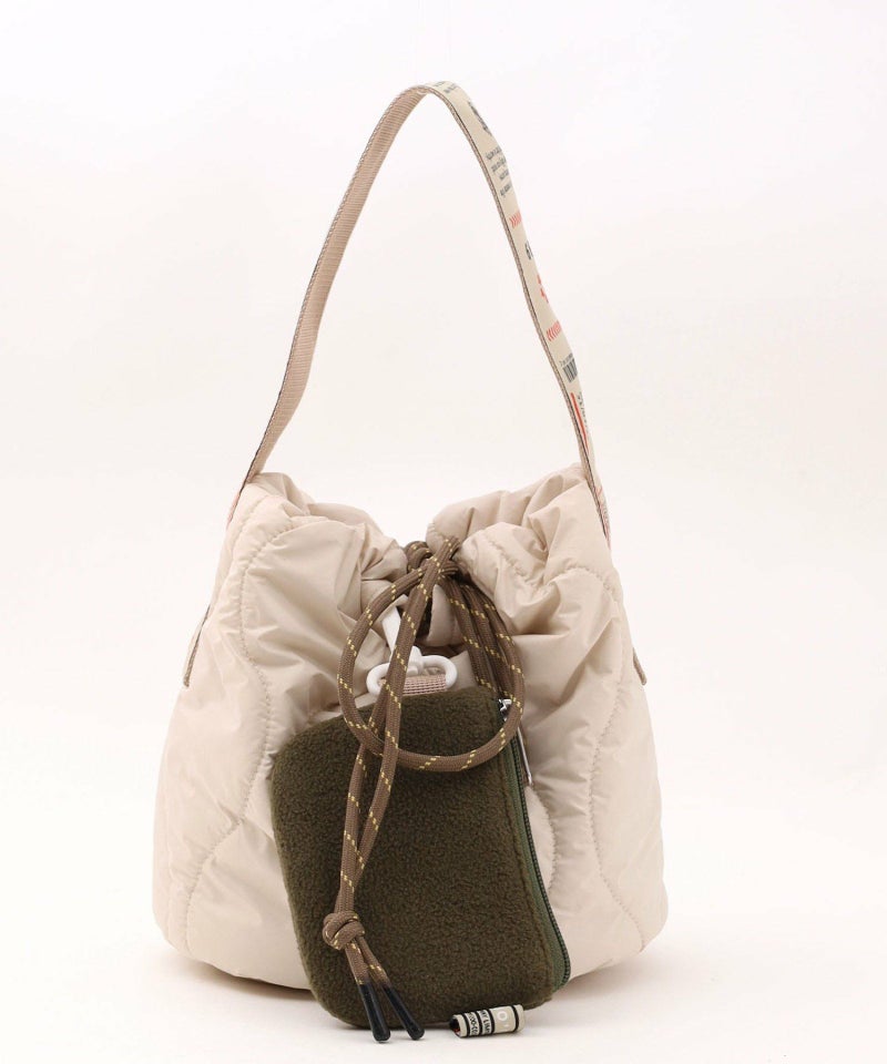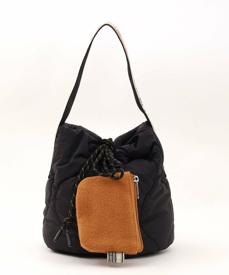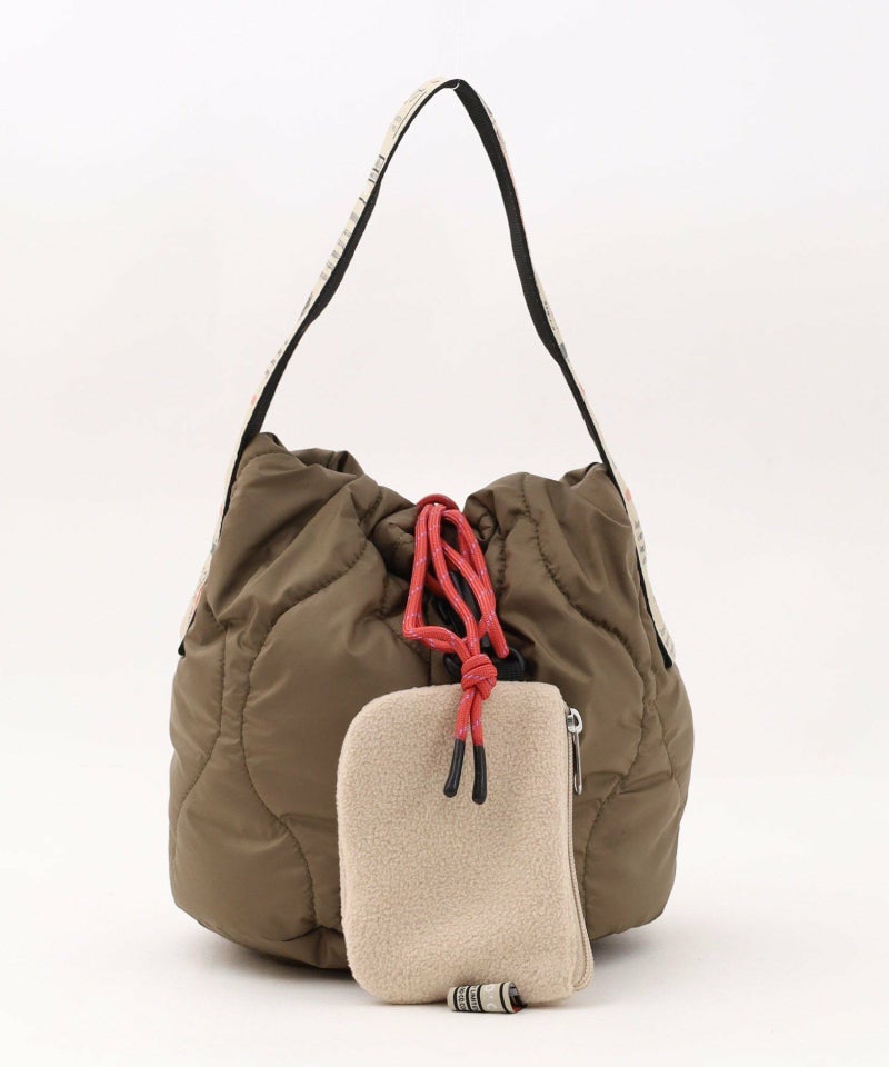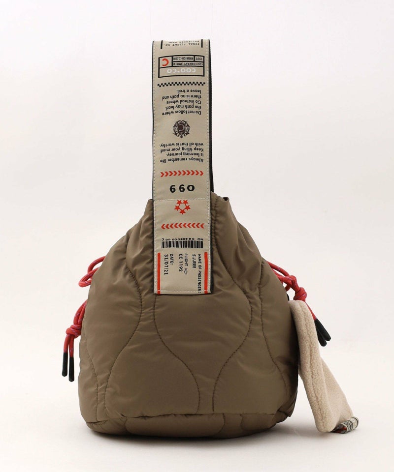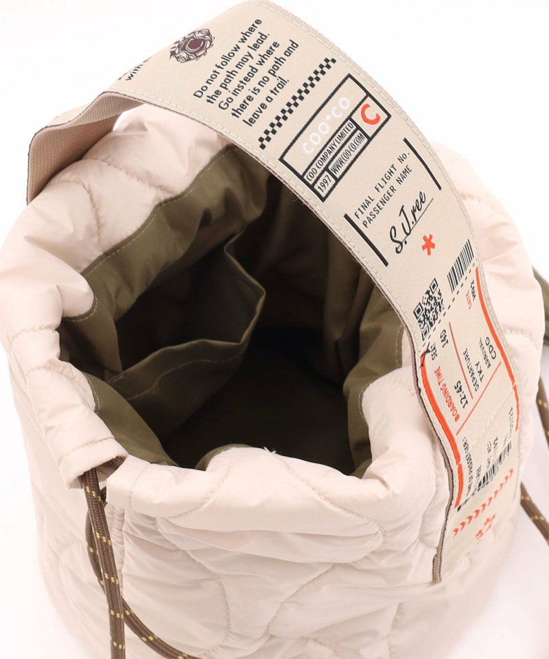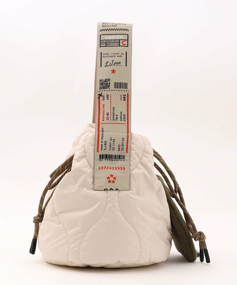 COOCOオリジナルロゴテープシリーズ。キルティングとフリース風素材のコンビがポイントの巾着型2WAYショルダーバッグ。