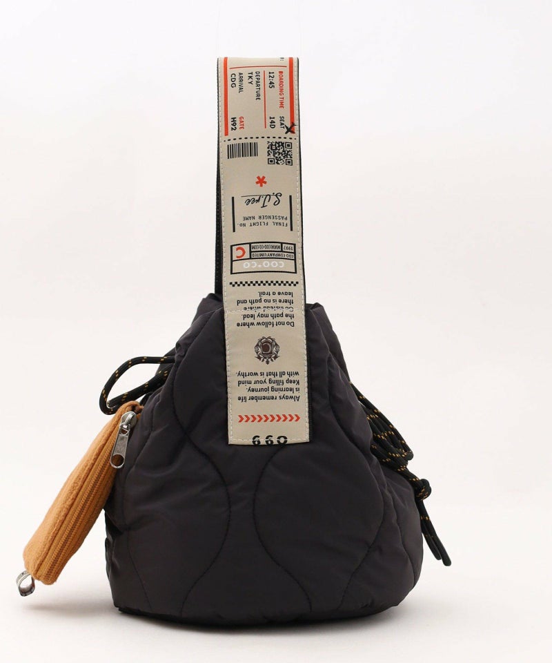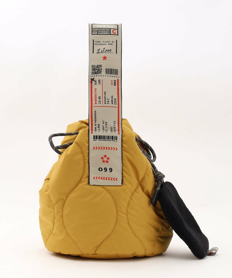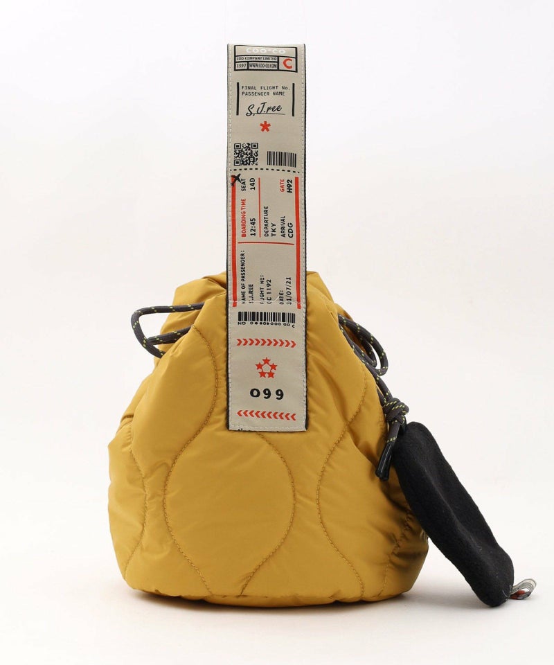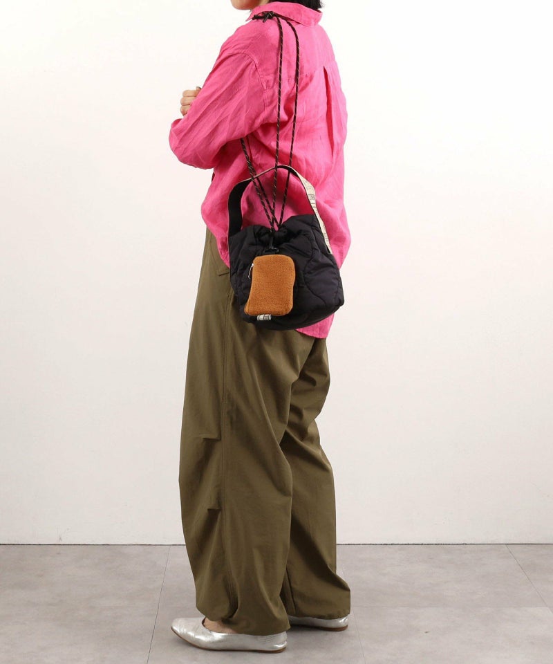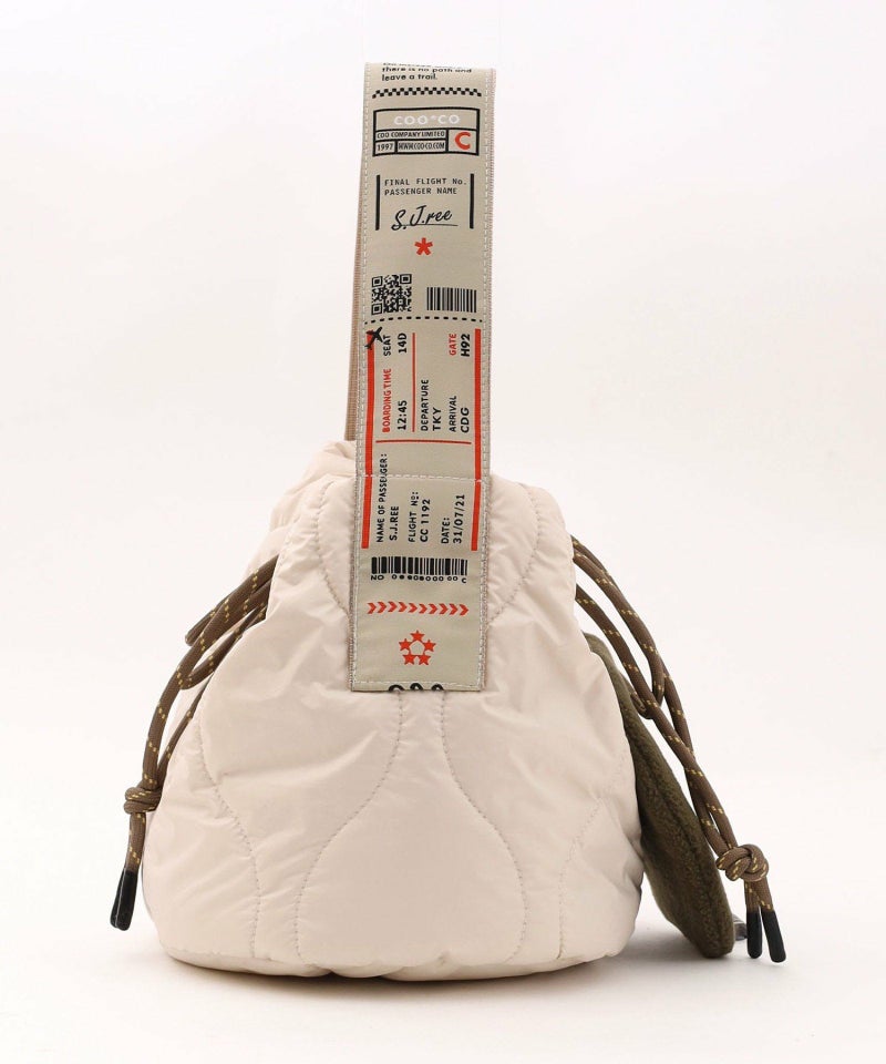 COOCOオリジナルロゴテープシリーズ。キルティングとフリース風素材のコンビがポイントの巾着型2WAYショルダーバッグ。
