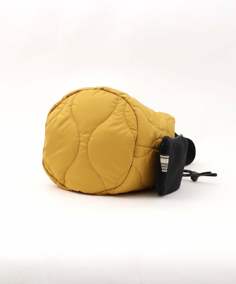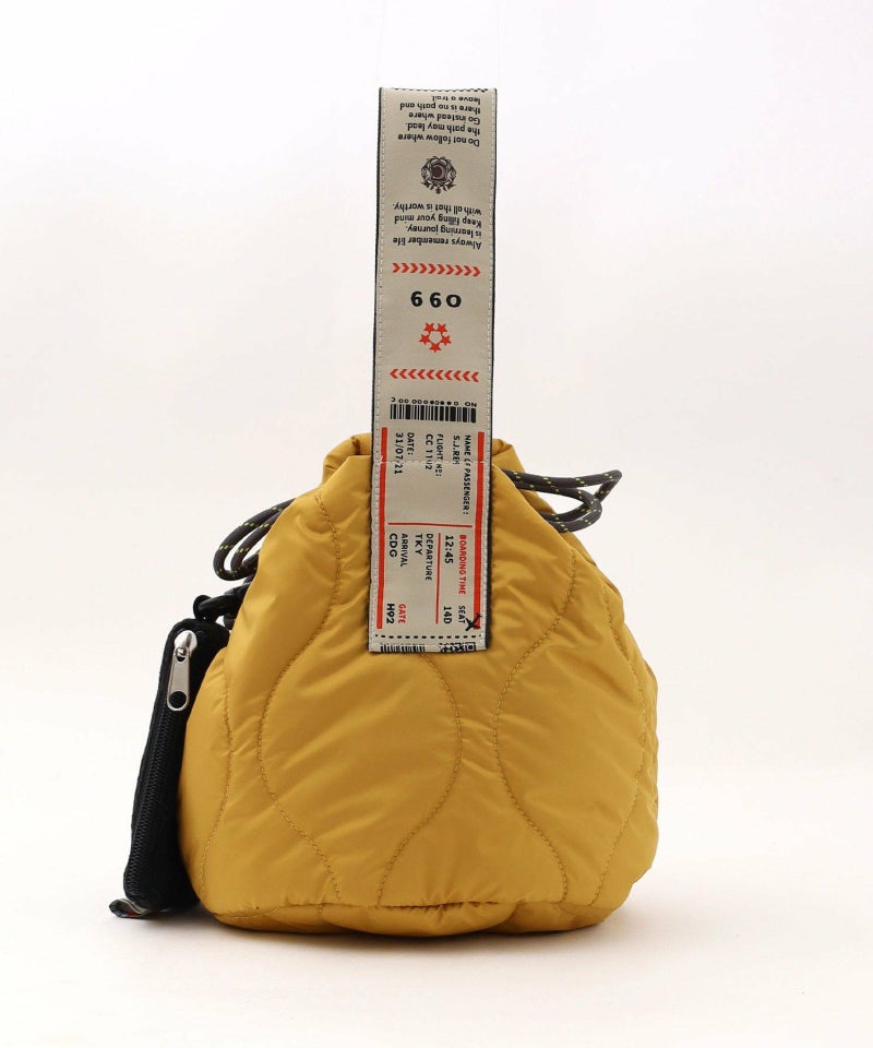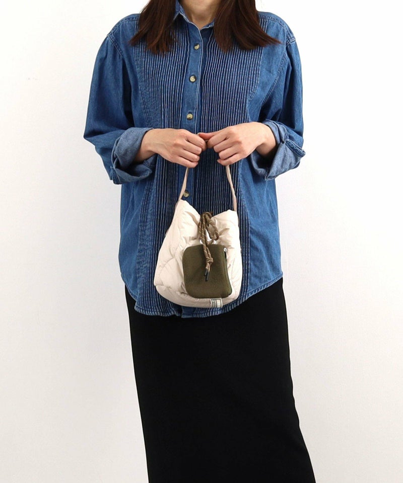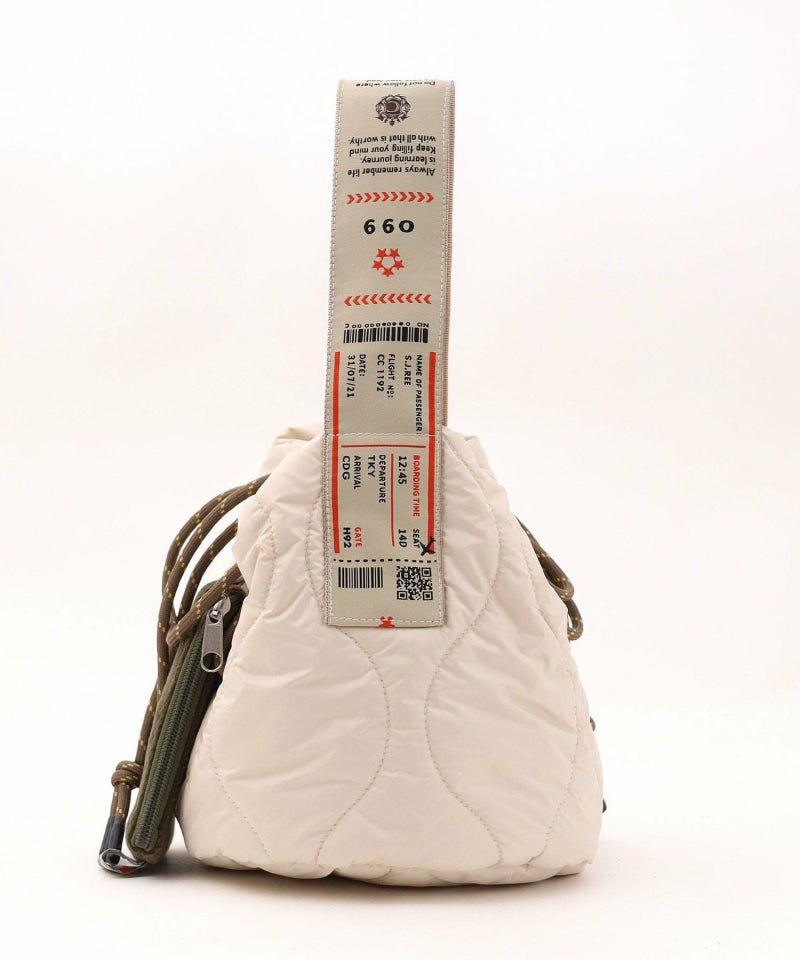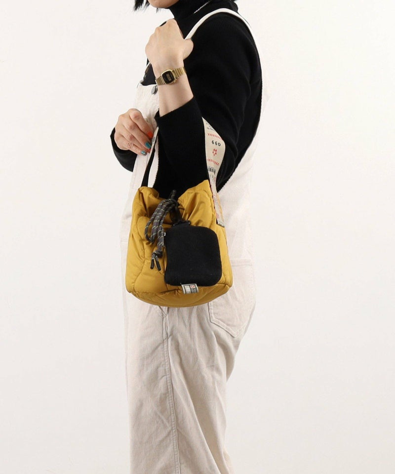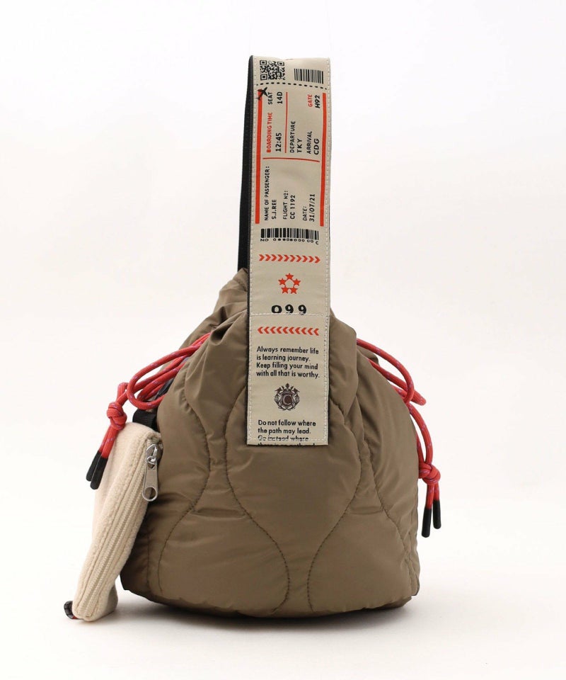 COOCOオリジナルロゴテープシリーズ。キルティングとフリース風素材のコンビがポイントの巾着型2WAYショルダーバッグ。