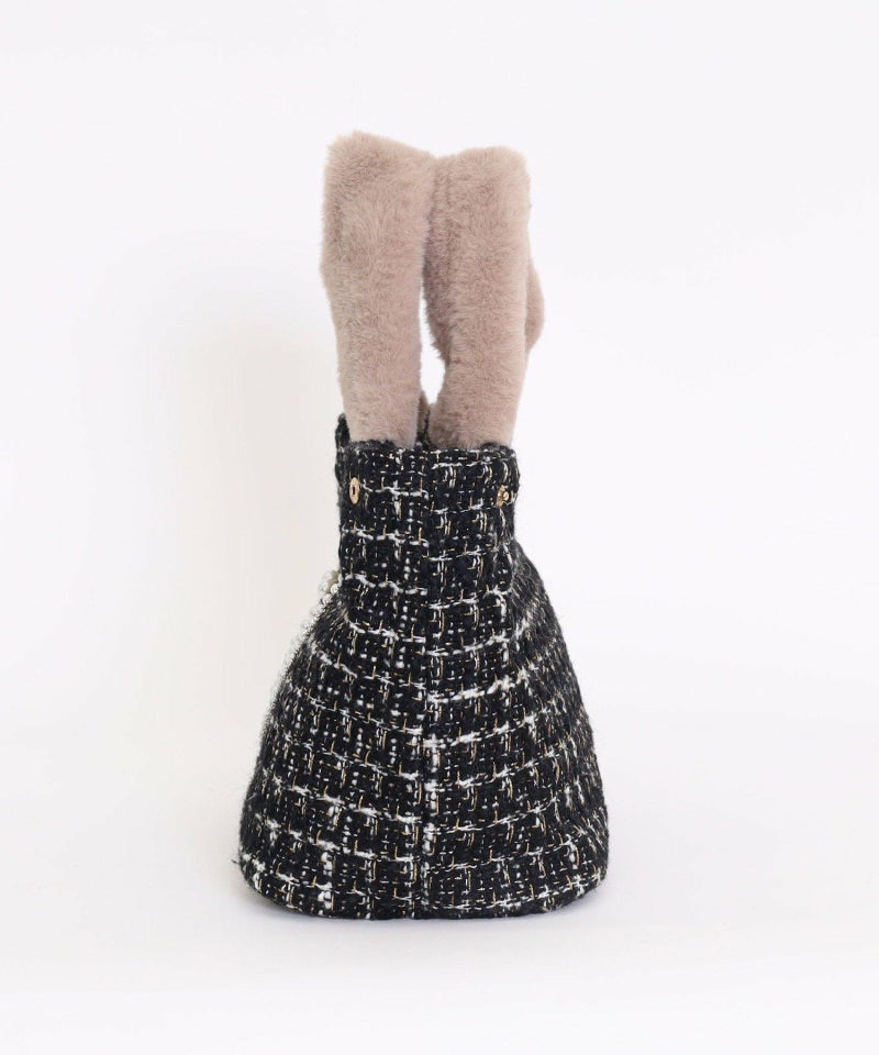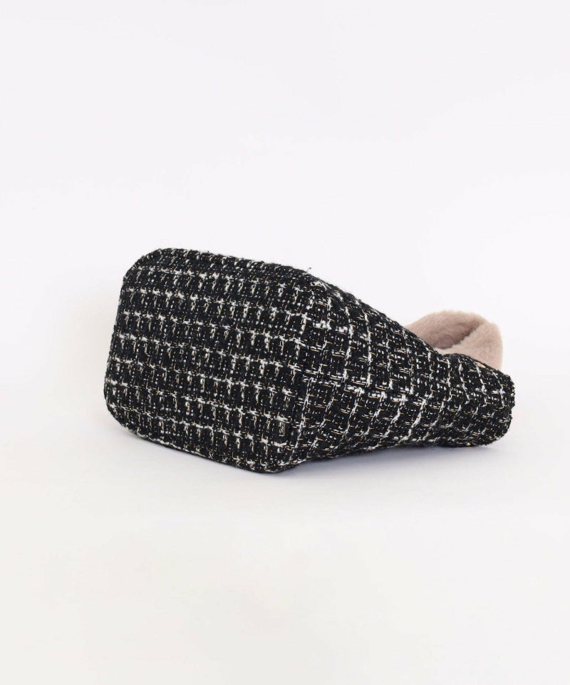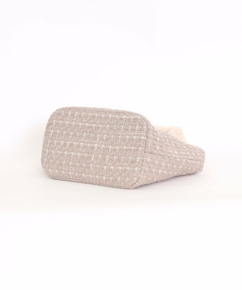 大人っぽいツイード生地にはさりげなくラメ糸が織り込まれていて、フェミニンさがさらにプラス。