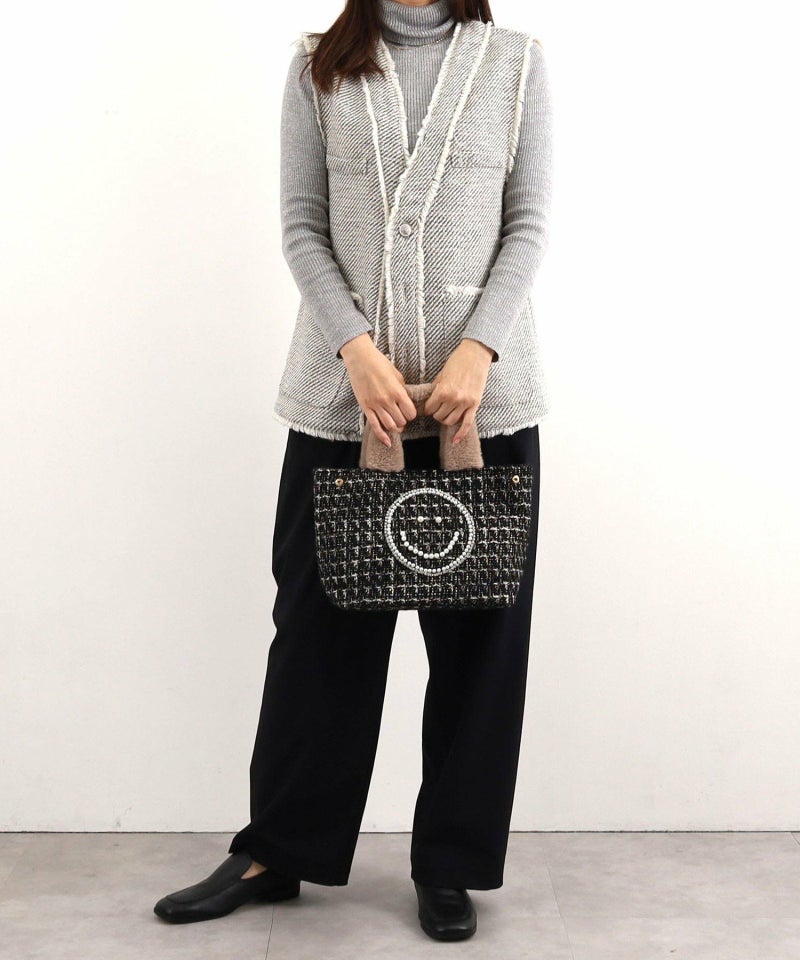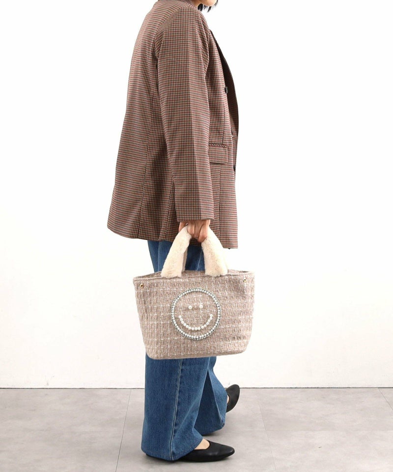 毎年No.1人気のSMILEYパール刺繍xファーハンドルトート。
