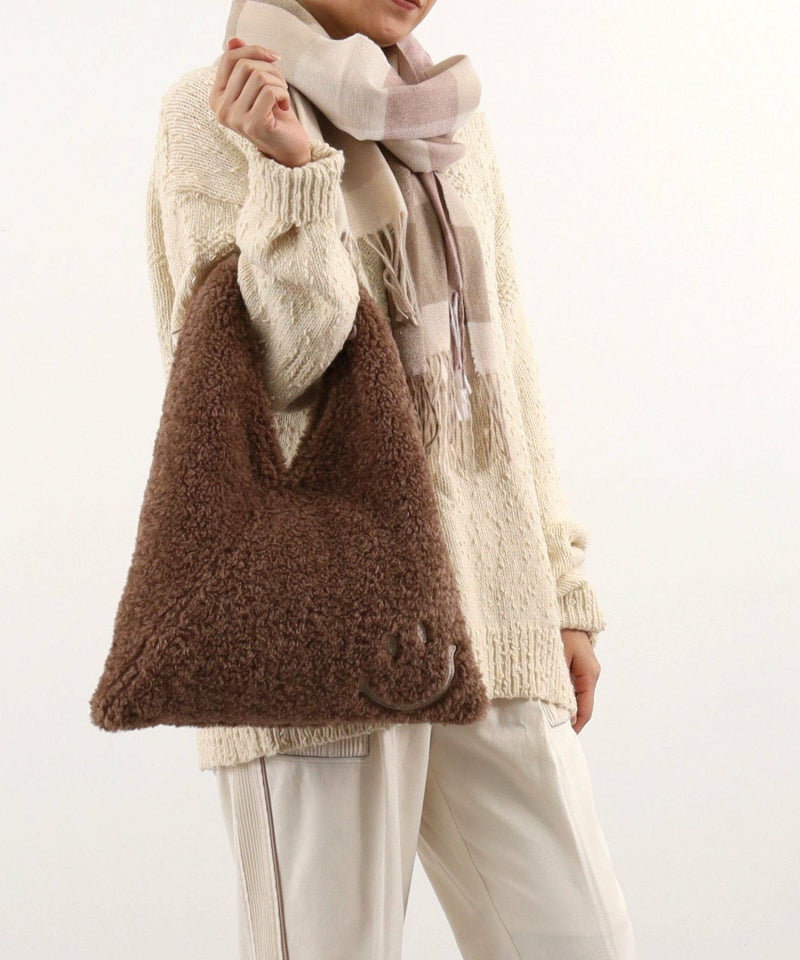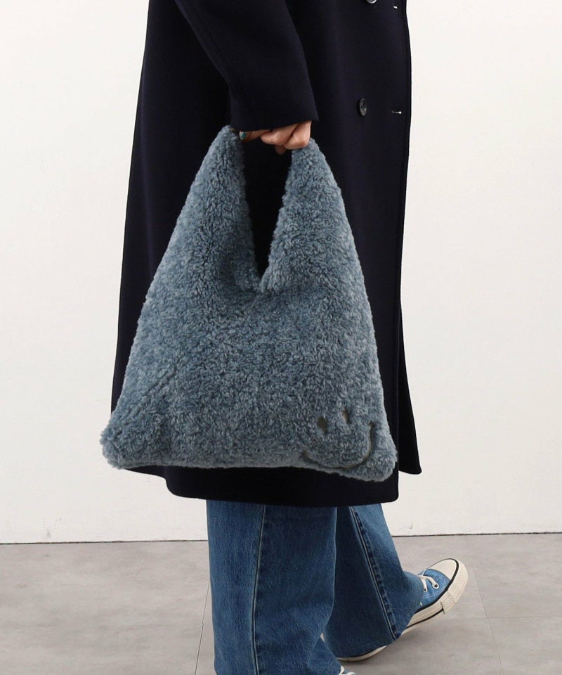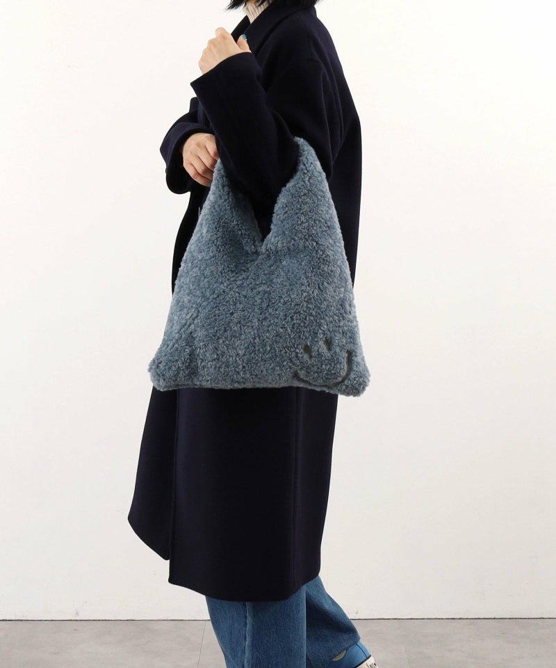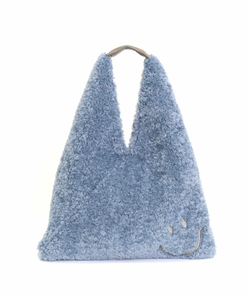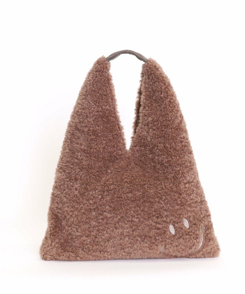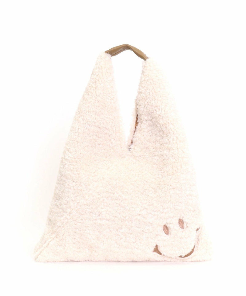 モコモコ動物みたいなSMILEYエコボア三角トートバッグ。
