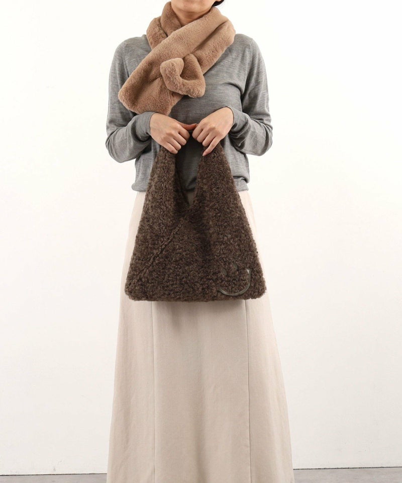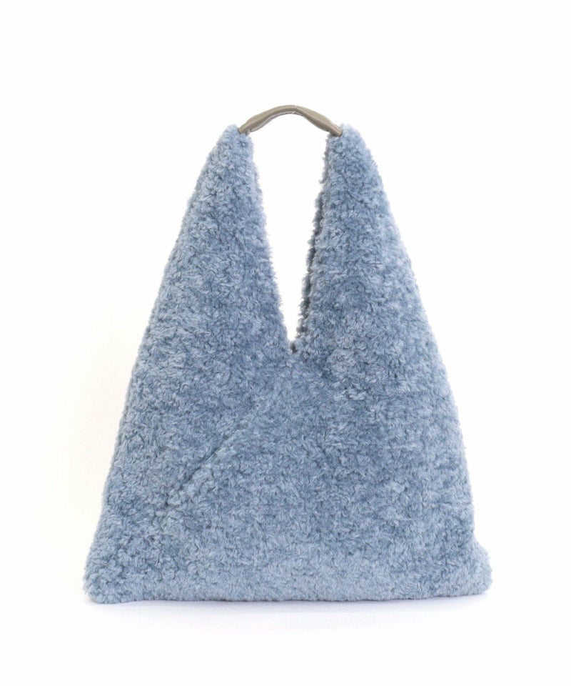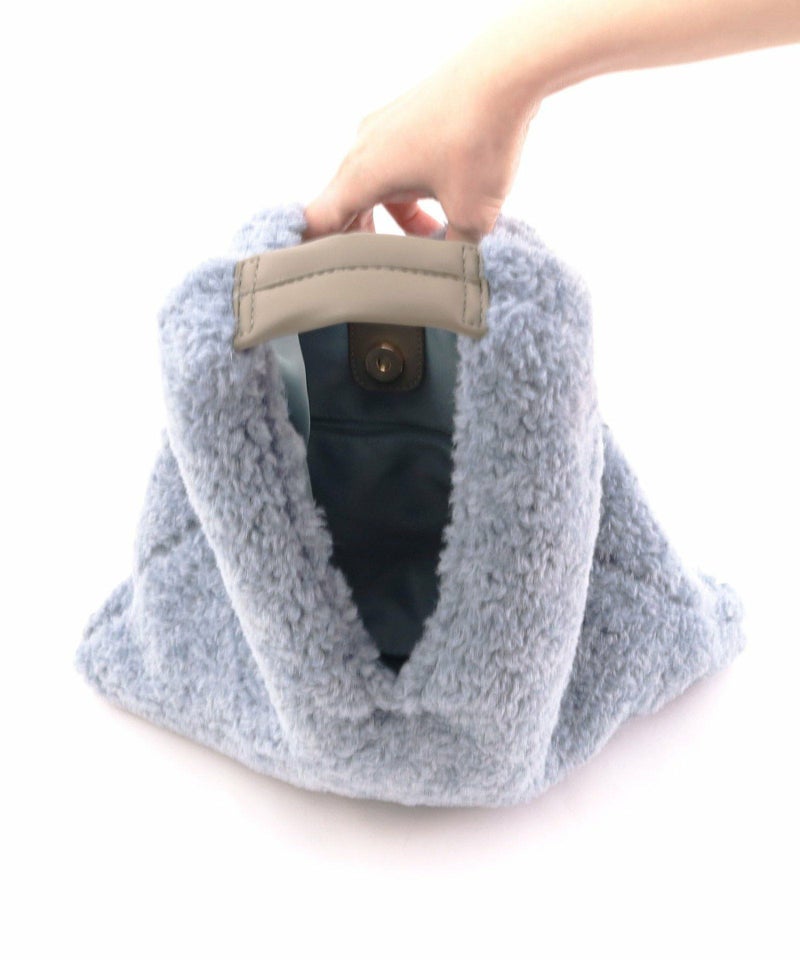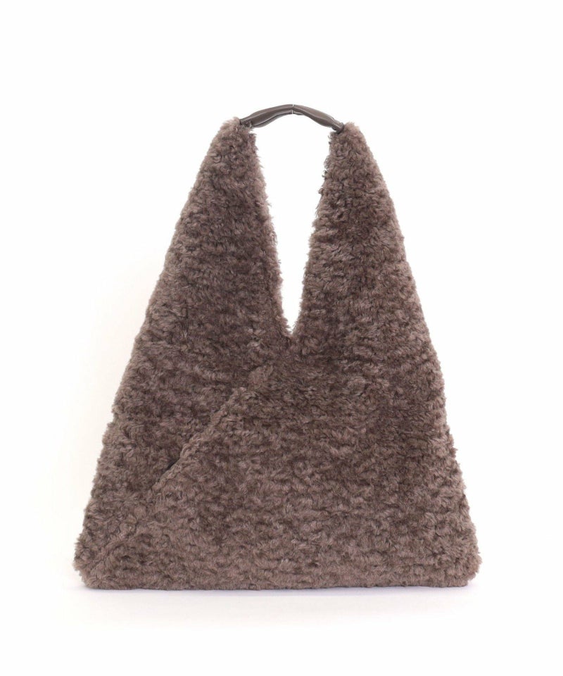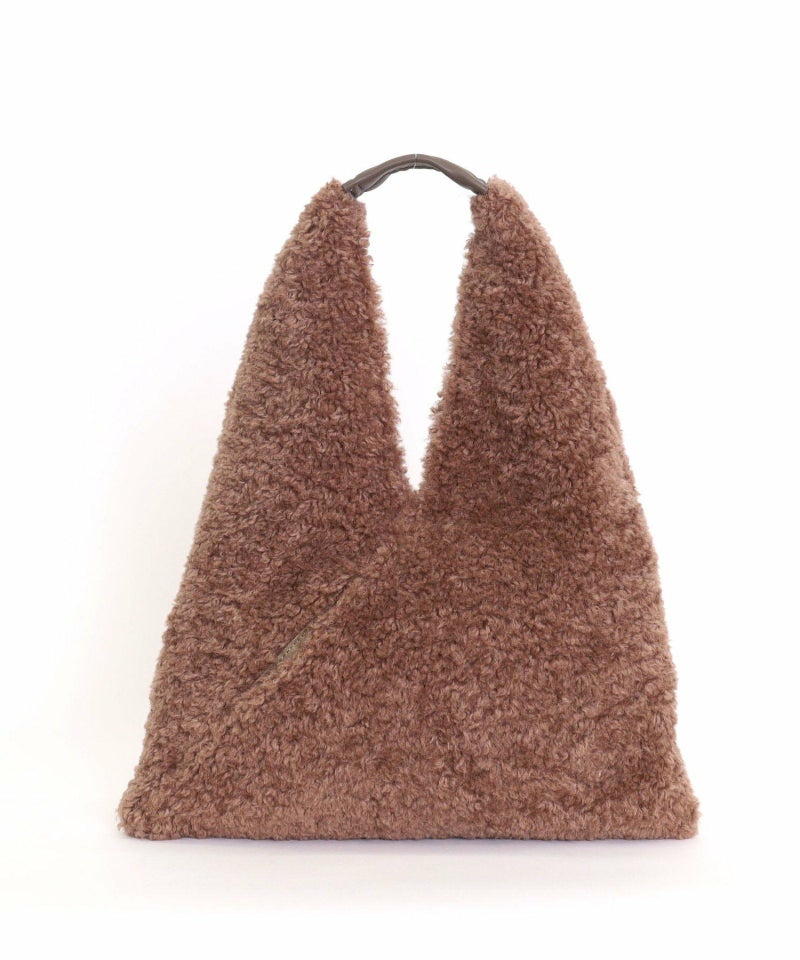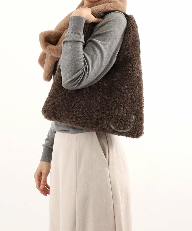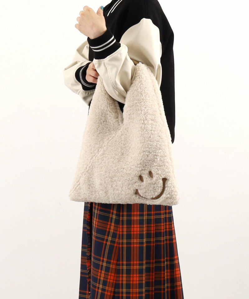 モコモコ動物みたいなSMILEYエコボア三角トートバッグ。