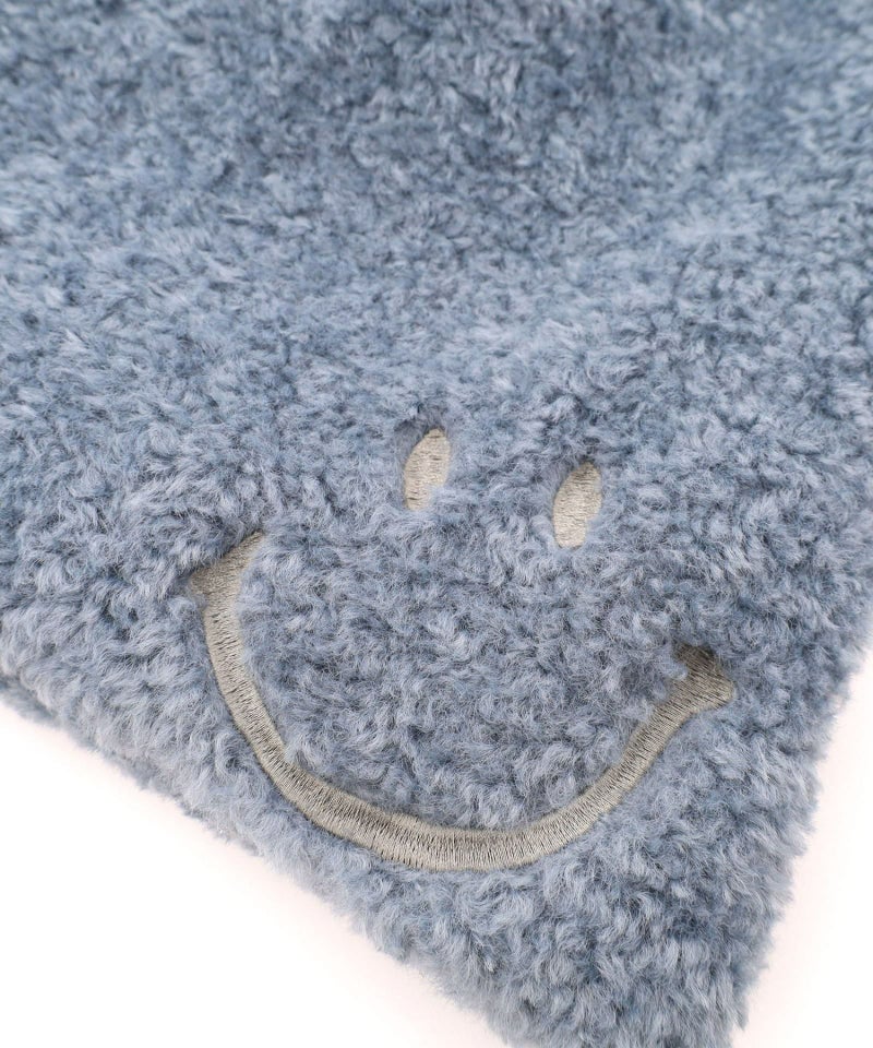毛足の長い季節感あるボア生地に、さりげなくSMILEYフェイスが刺繍されています。