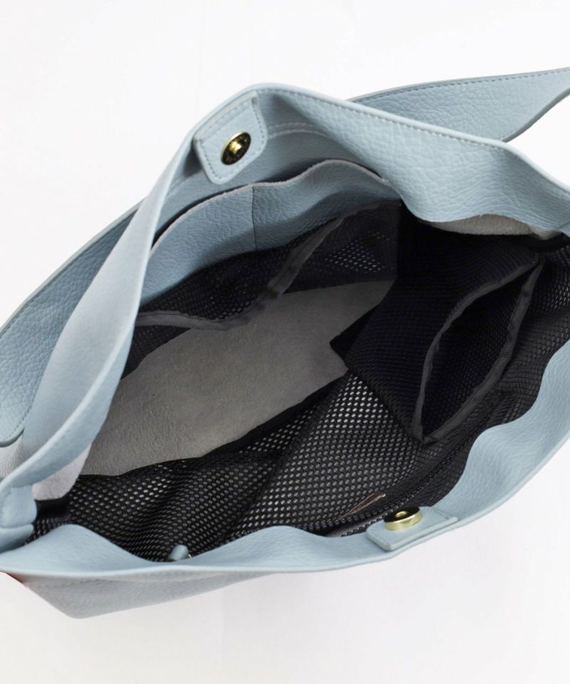 内装にはメッシュ素材で小物もスッキリ収納できるポケットを豊富に装備。