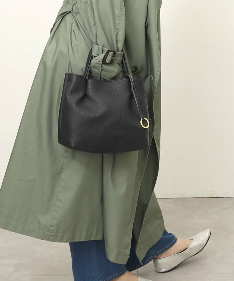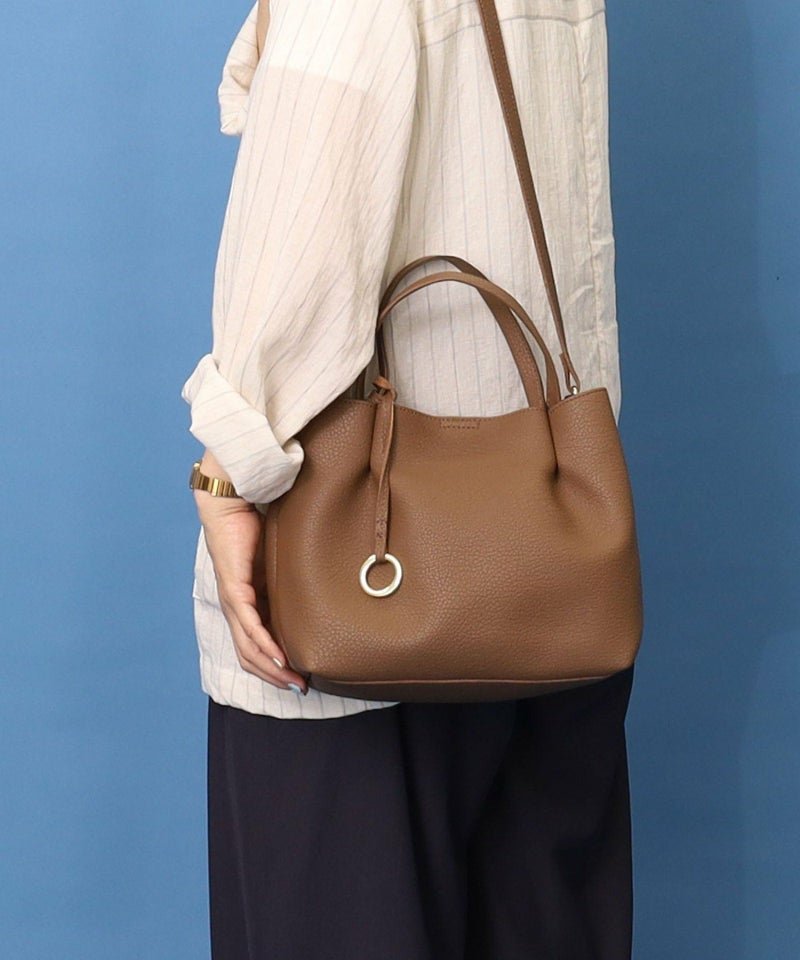 ソフトなフェイクレザーを使用。ハンドル部にタックを入れることでコロンとしたフォルムになったミニトートです。