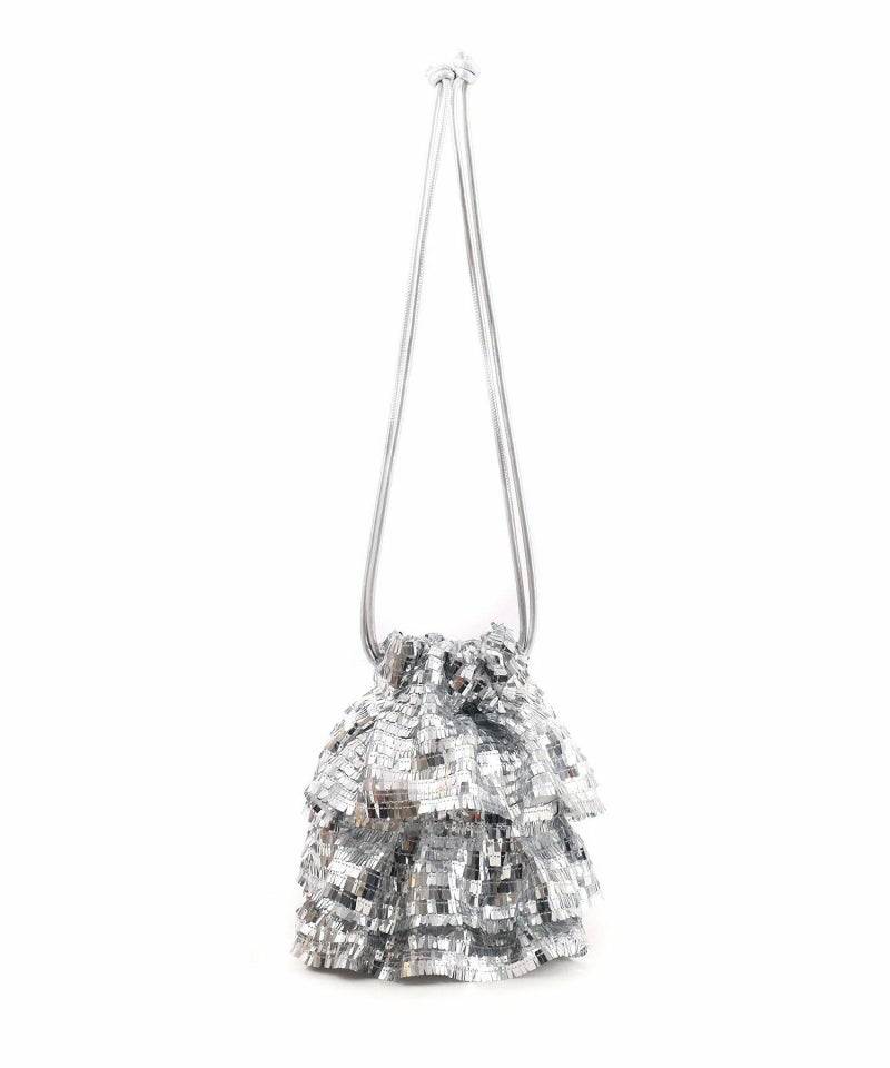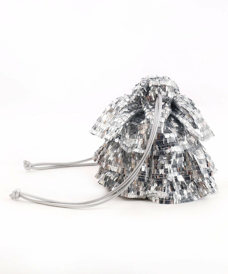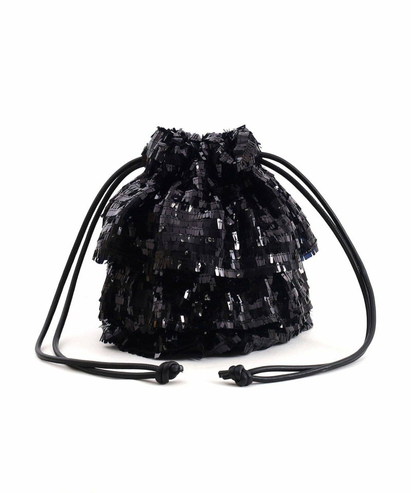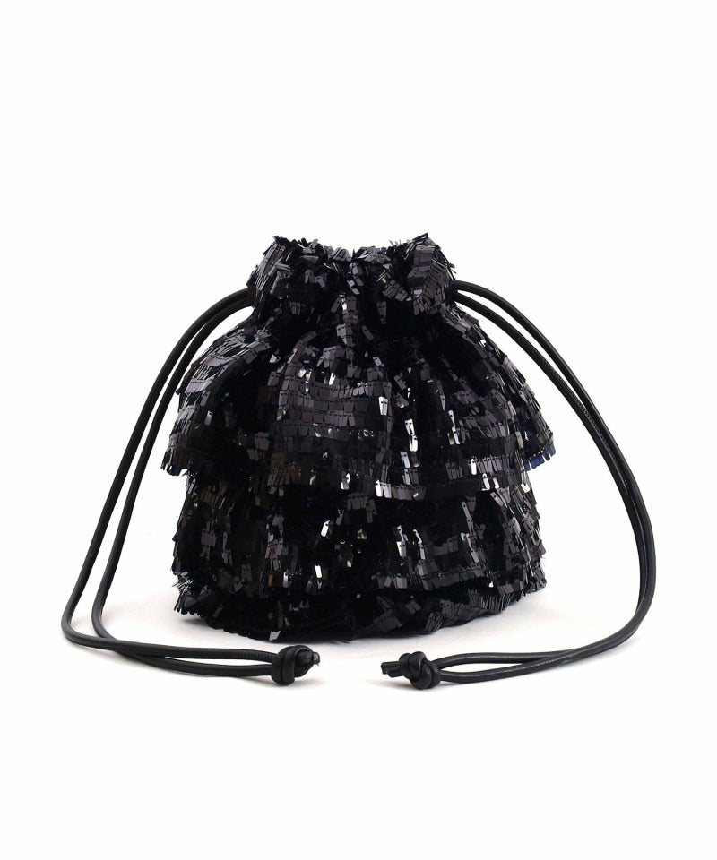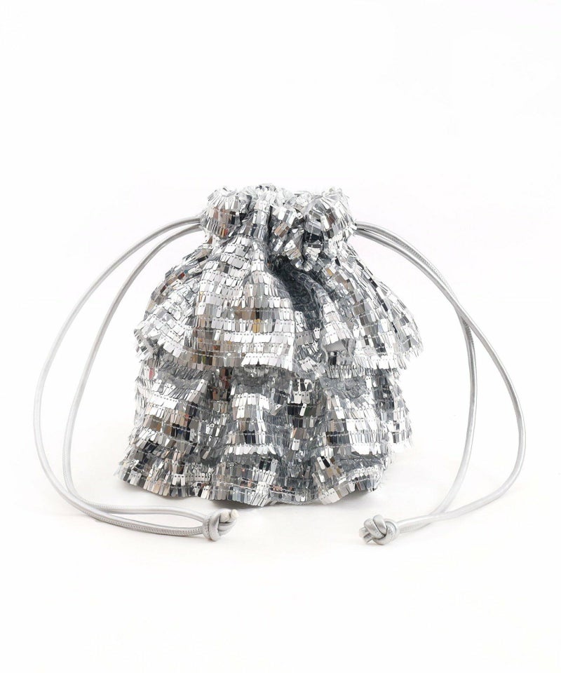 スクエア型のちょっと変わったスパンコールがアイキャッチ―な巾着バッグ。