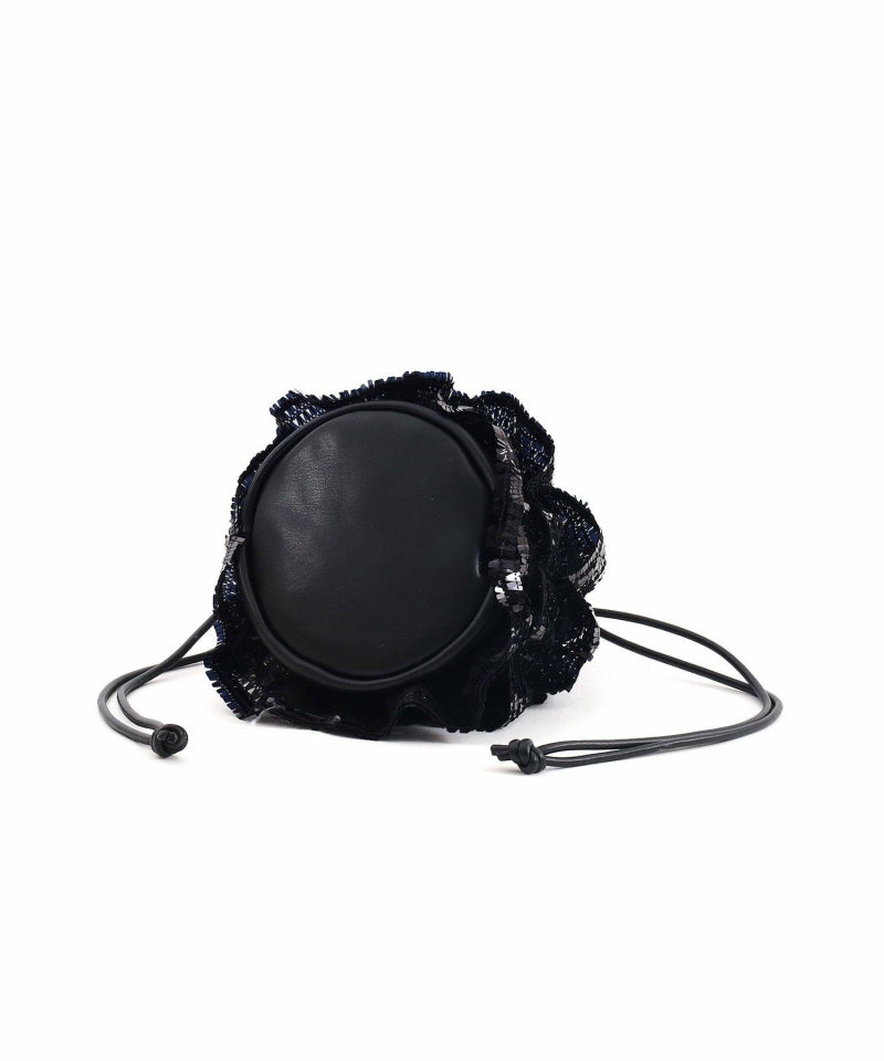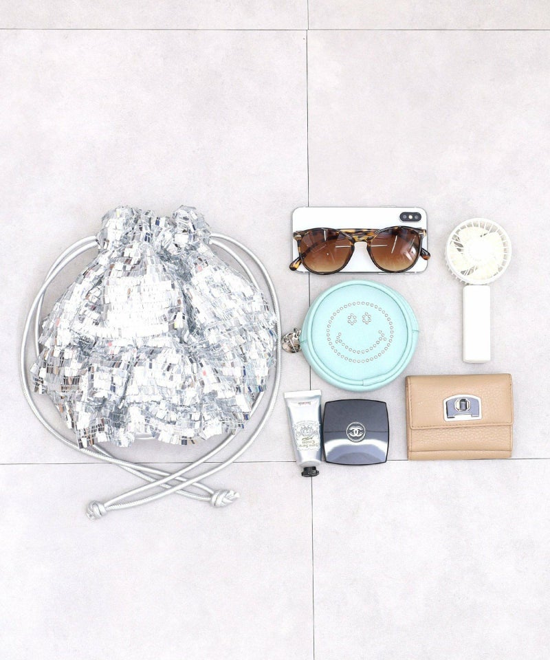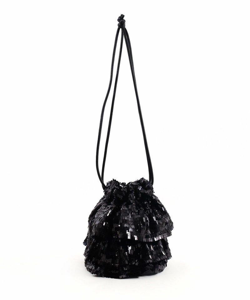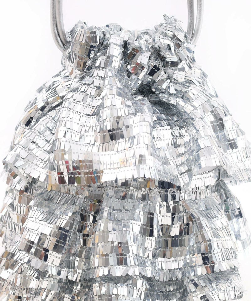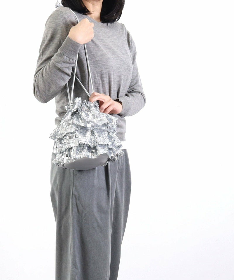 スクエア型のちょっと変わったスパンコールがアイキャッチ―な巾着バッグ。