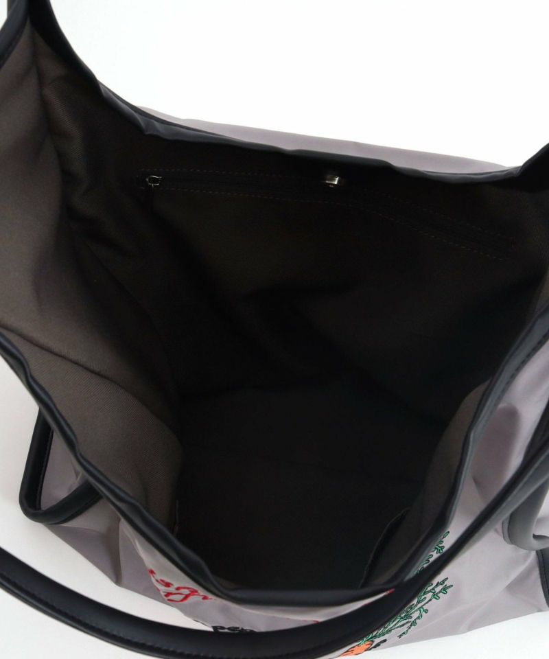 刺繍はカジュアル目ですがPUのパイピングでキレイ目なスタイルまで幅広くフィットします
