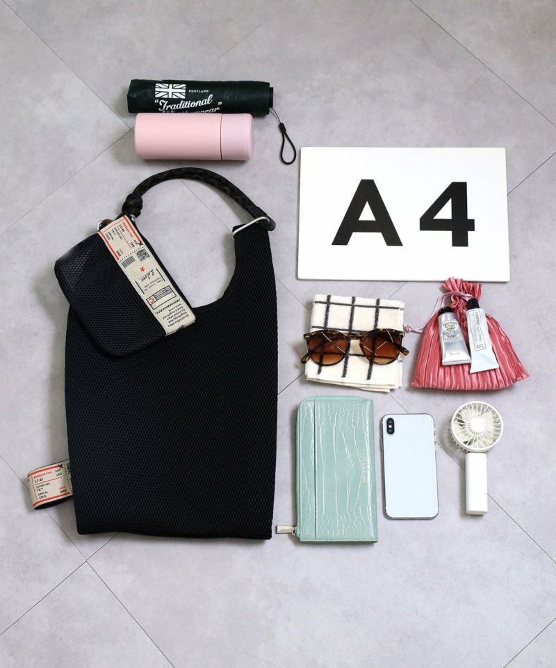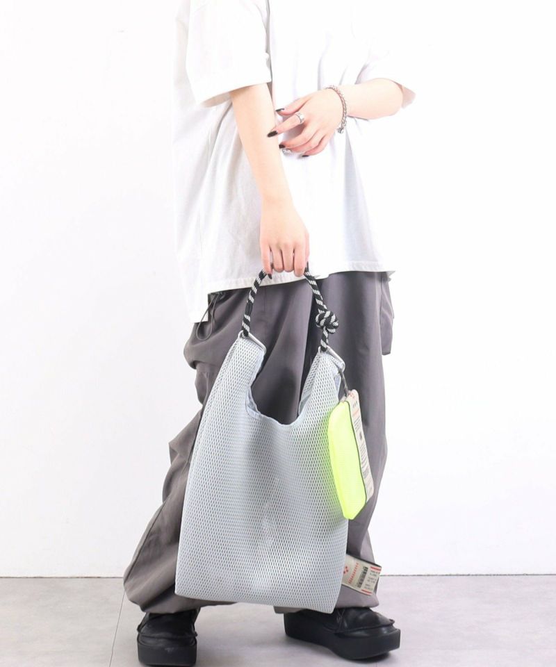 COOCOオリジナルデザインテープを使用したメッシュ素材マルシェ型BAG。