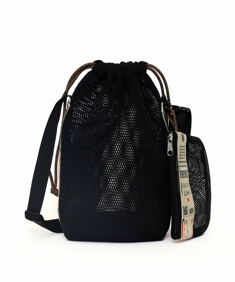 COOCOオリジナルデザインテープを使用したメッシュ素材ドローストリングBAG。