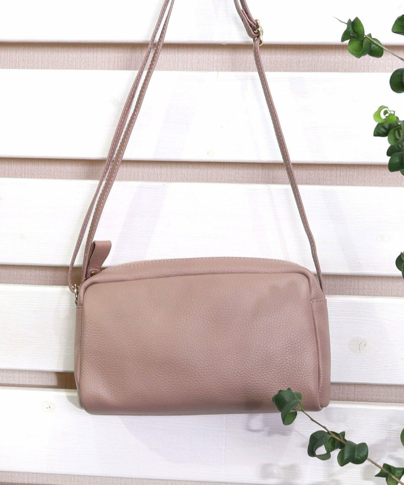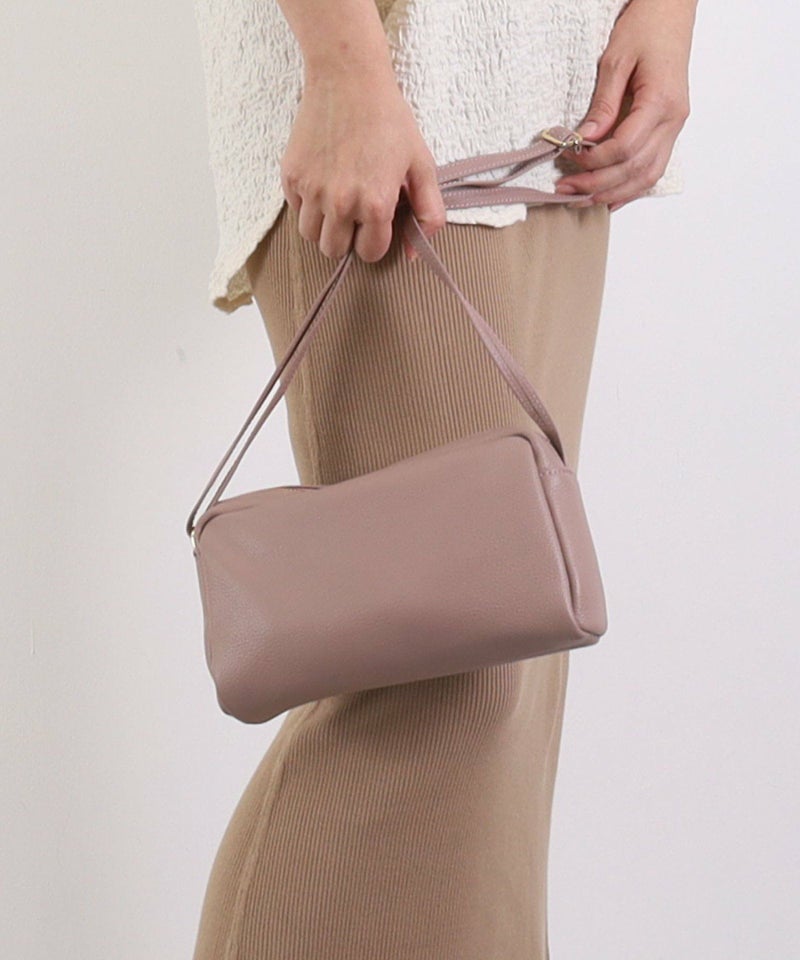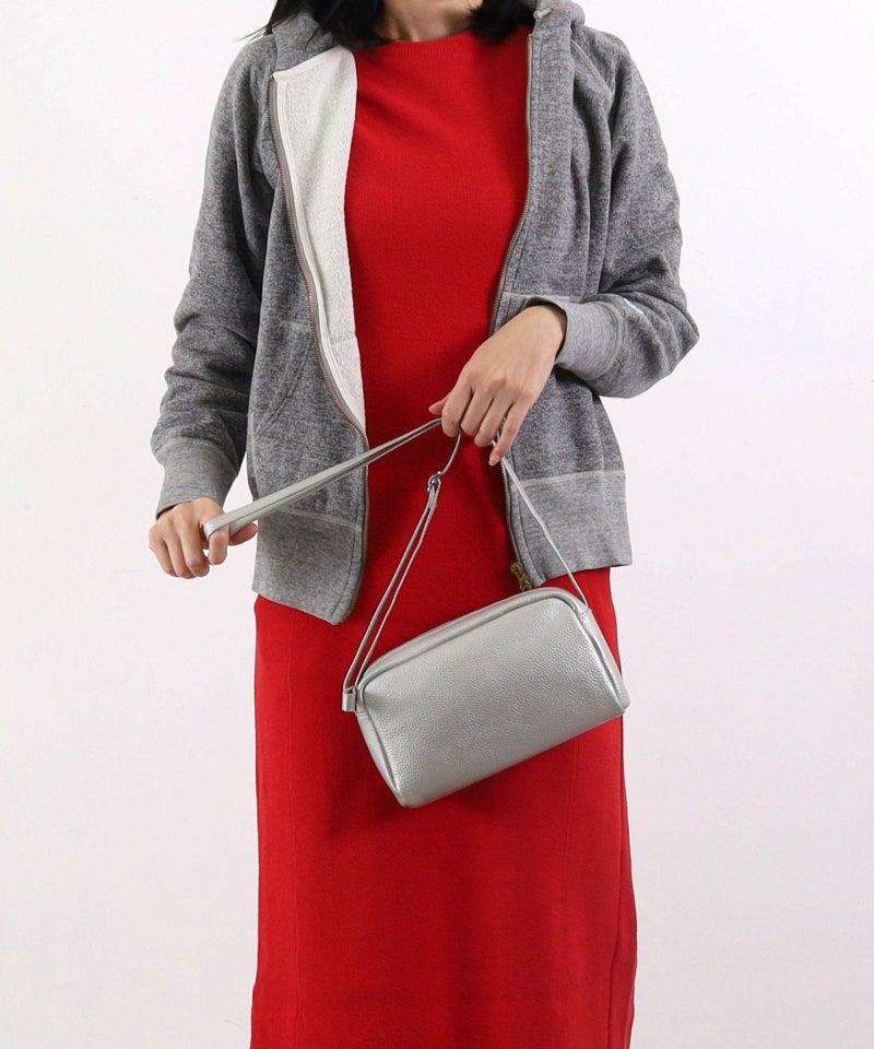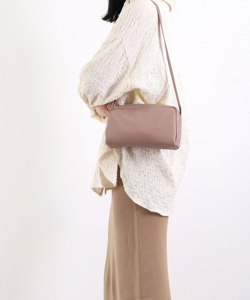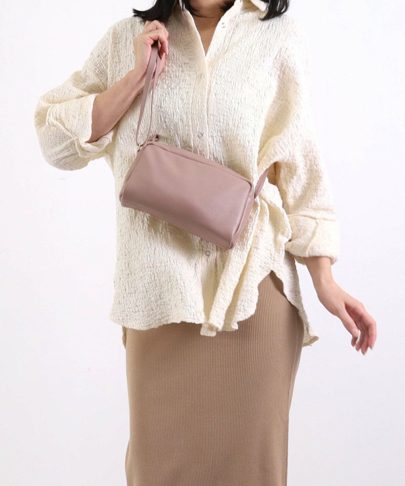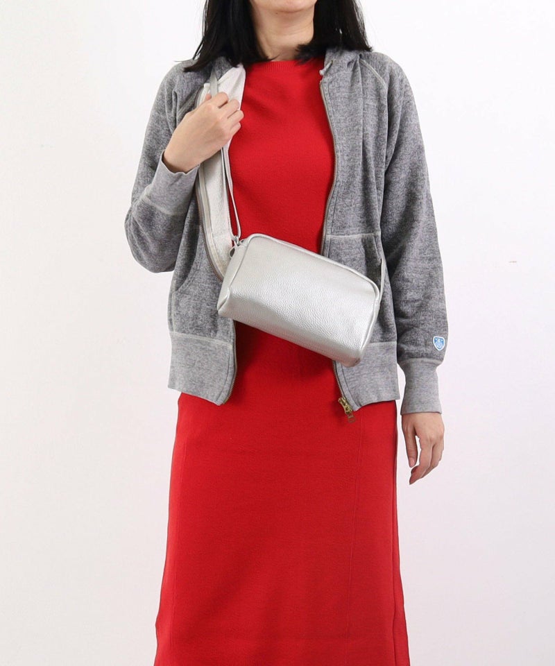 発色の良いシュリンクレザーを使用したシンプルな横型ショルダーバッグ。