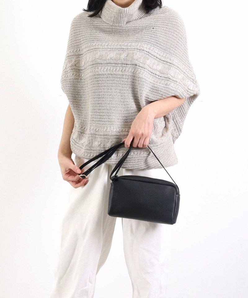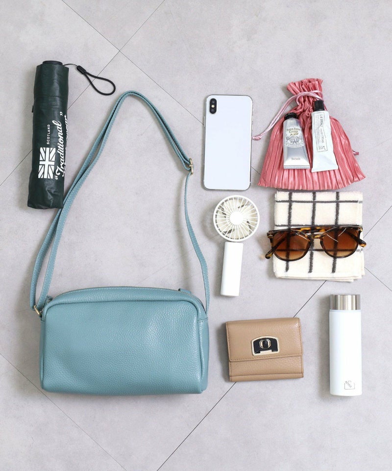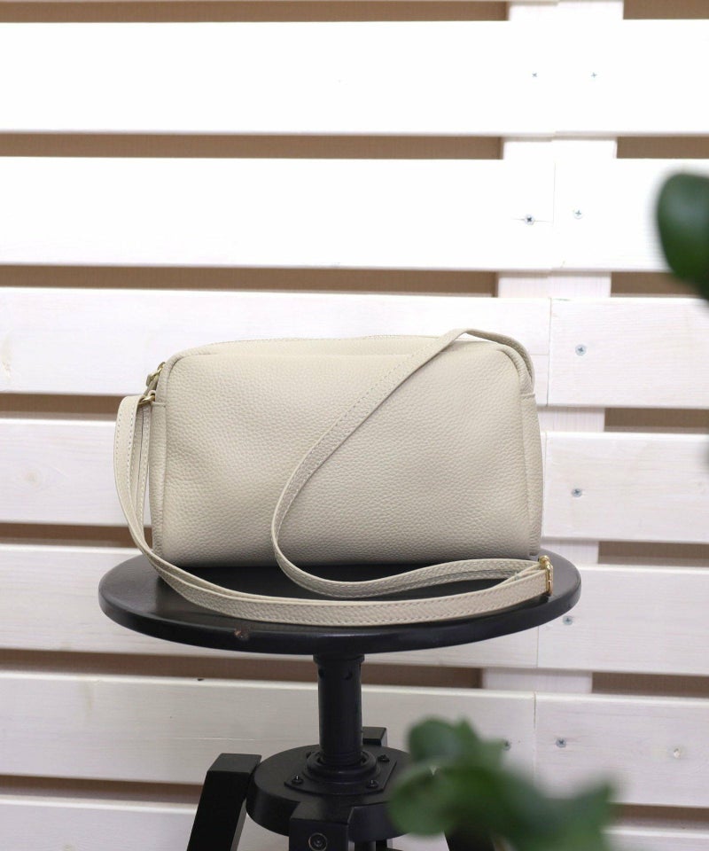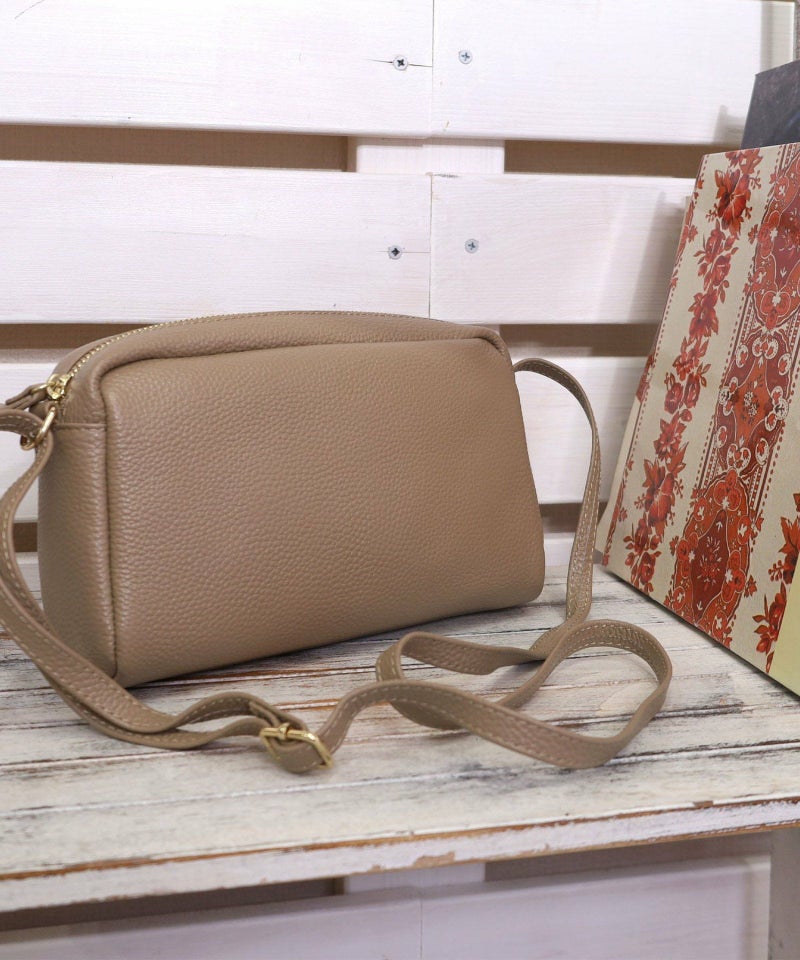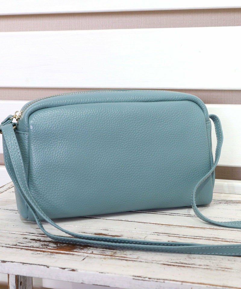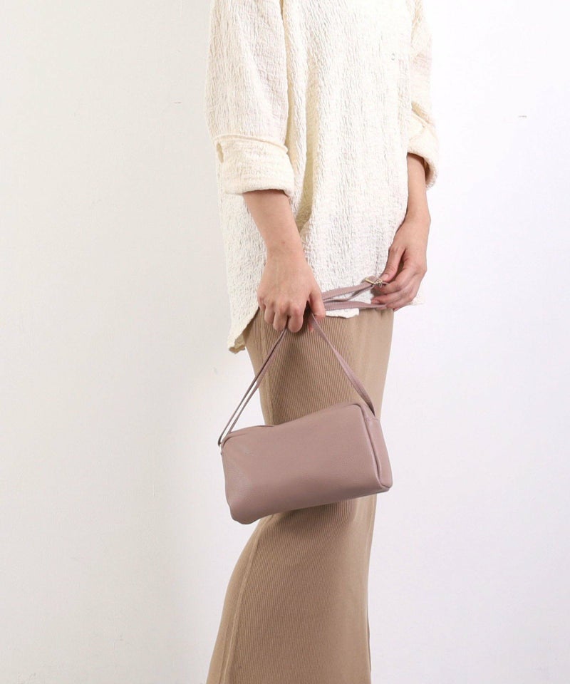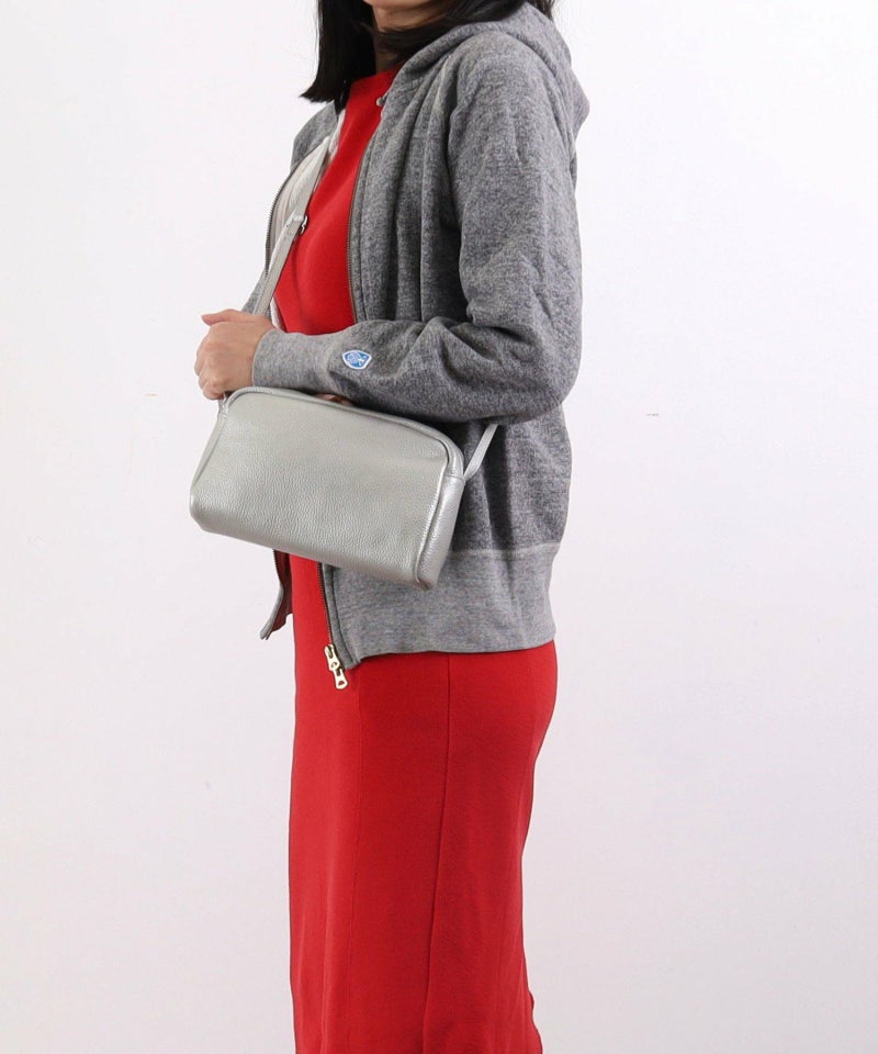発色の良いシュリンクレザーを使用したシンプルな横型ショルダーバッグ。