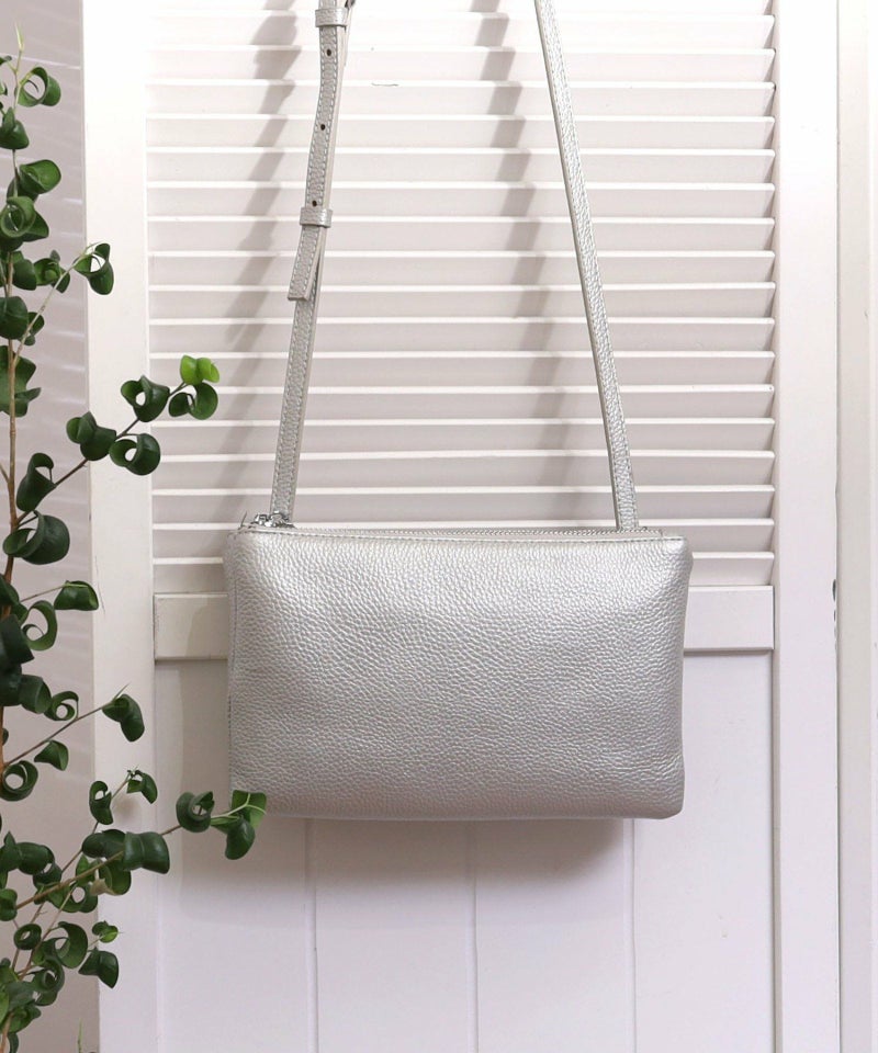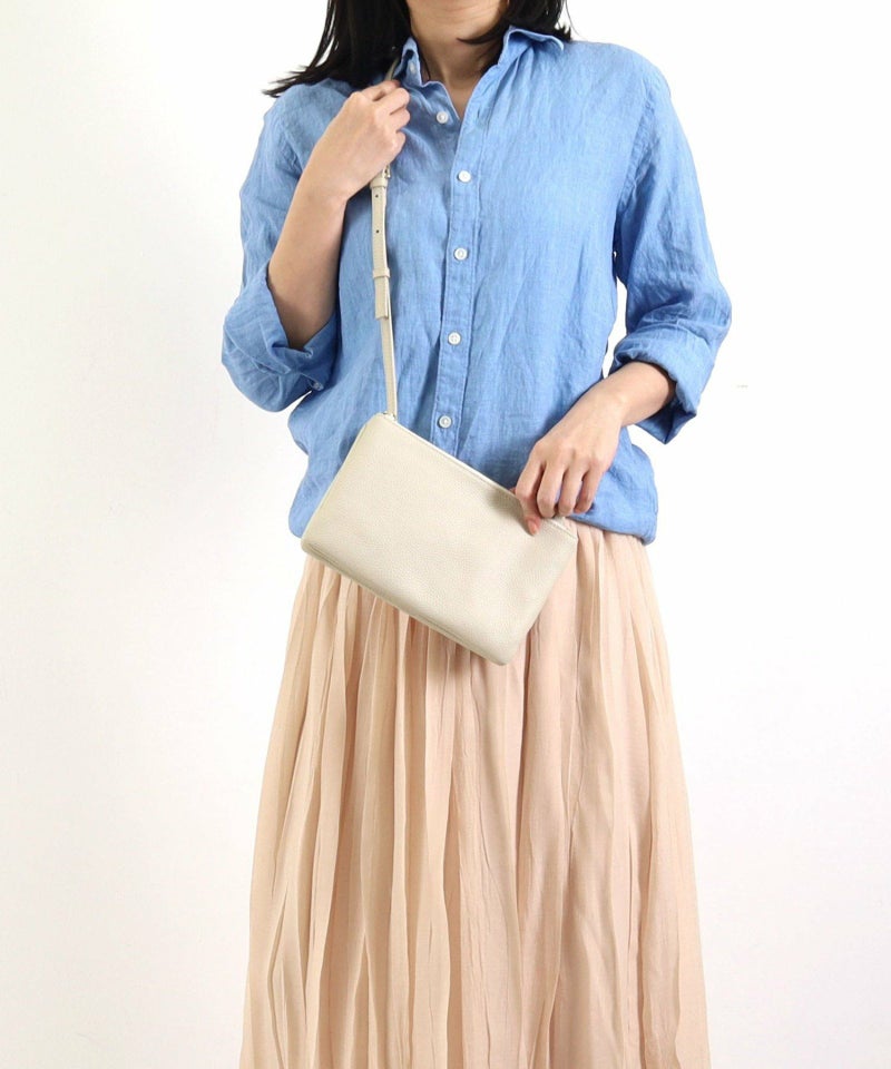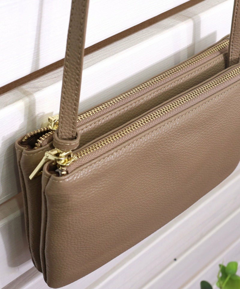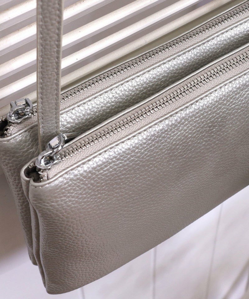 2つのポシェットがひとつになったような構造なので、中央部にもポケットがありスマホなどの収納に便利です。