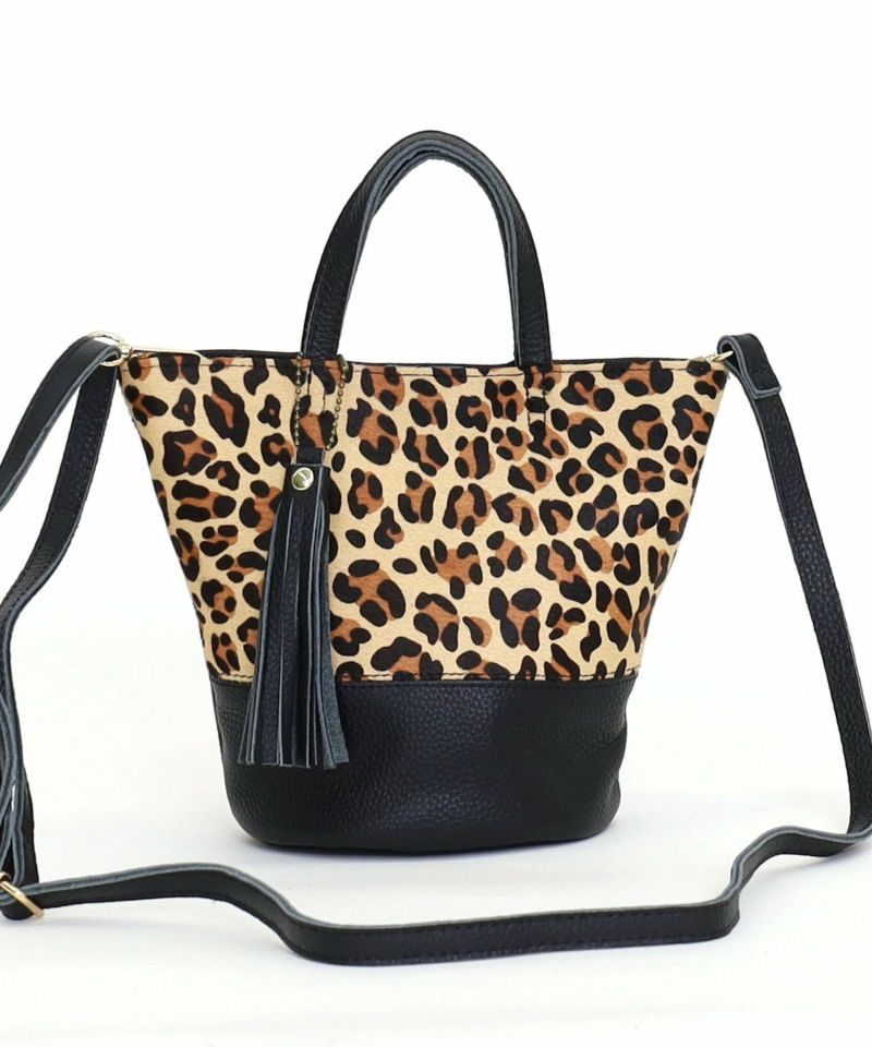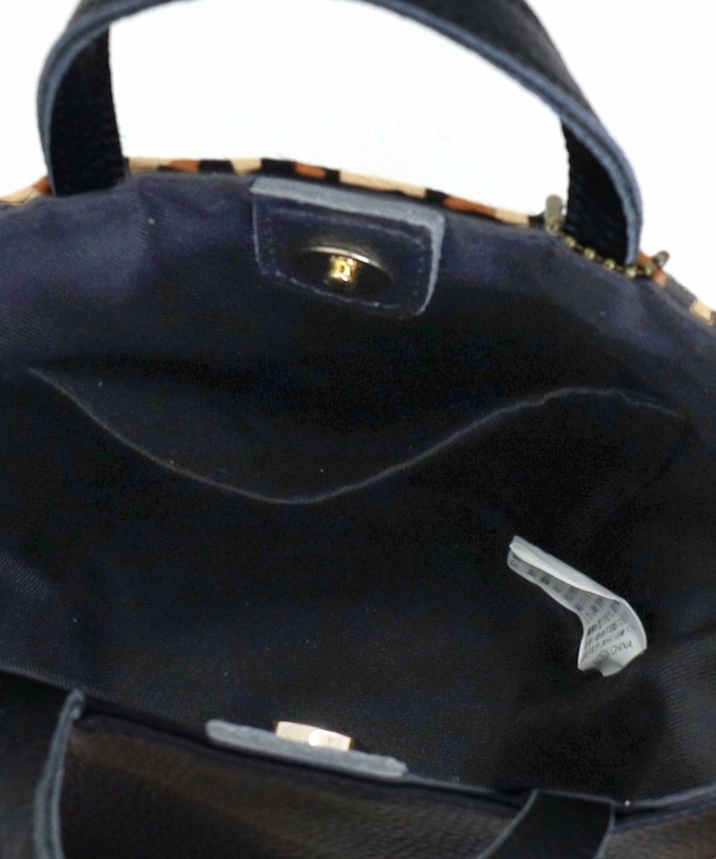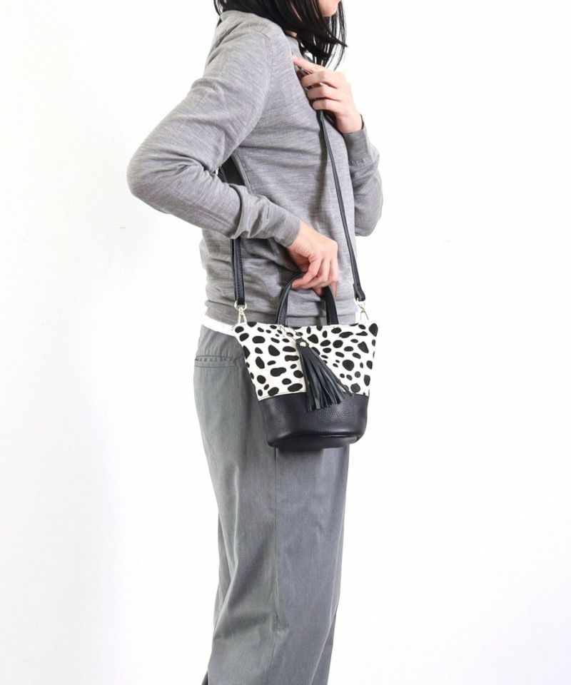 牛革シュリンクレザー×アニマル柄ホースヘアを使用したころんとした形の可愛らしいミニトート。