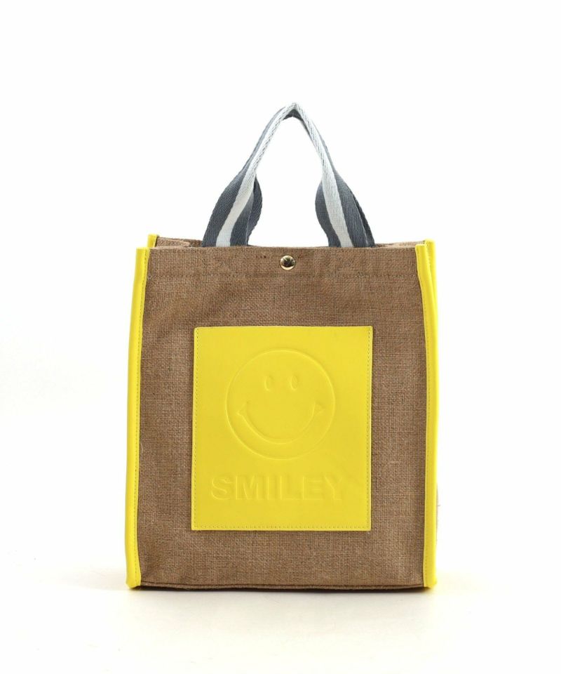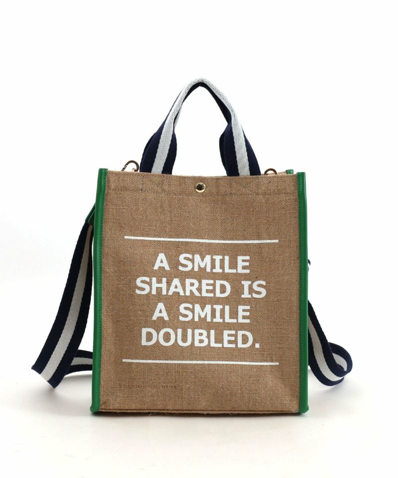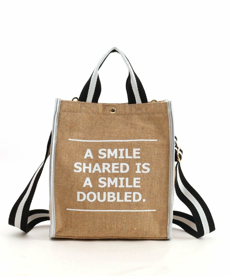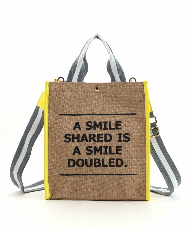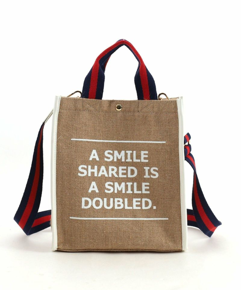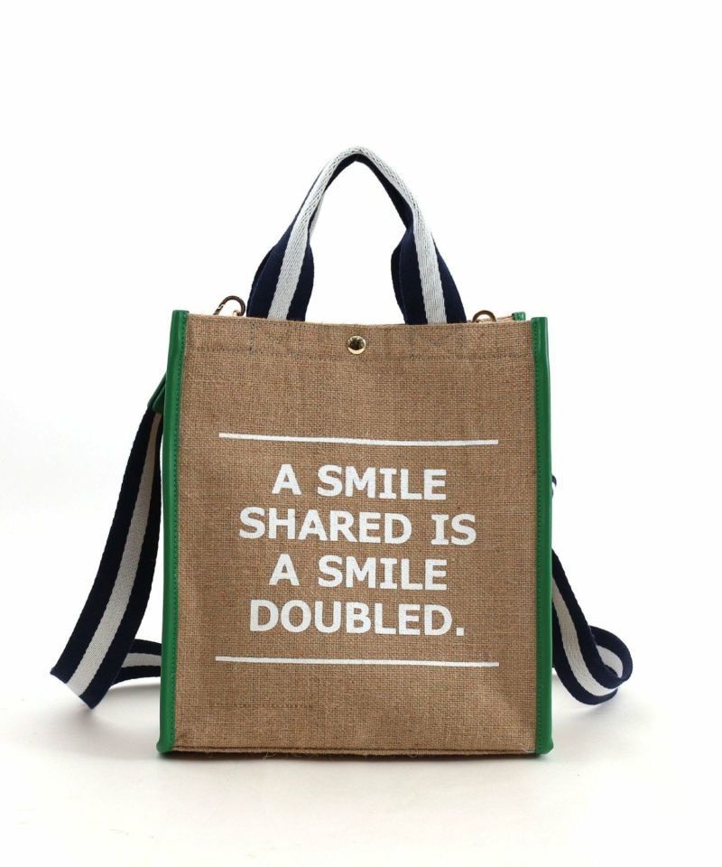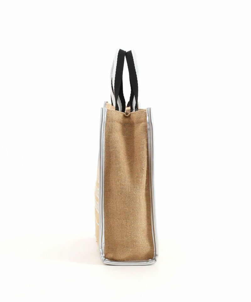 麻の素材を感じつナチュラル素材に、ポップなレタープリントとカラフルなPUパイピングが映えるデザイン。