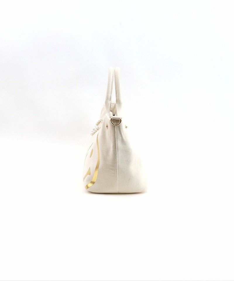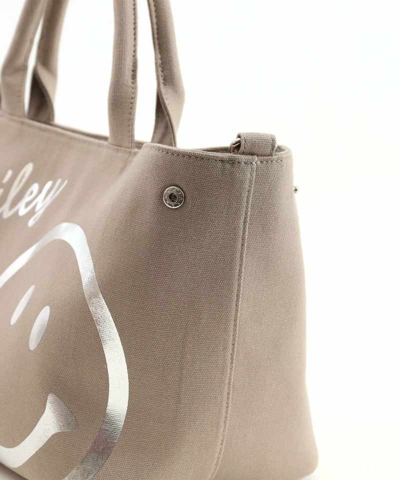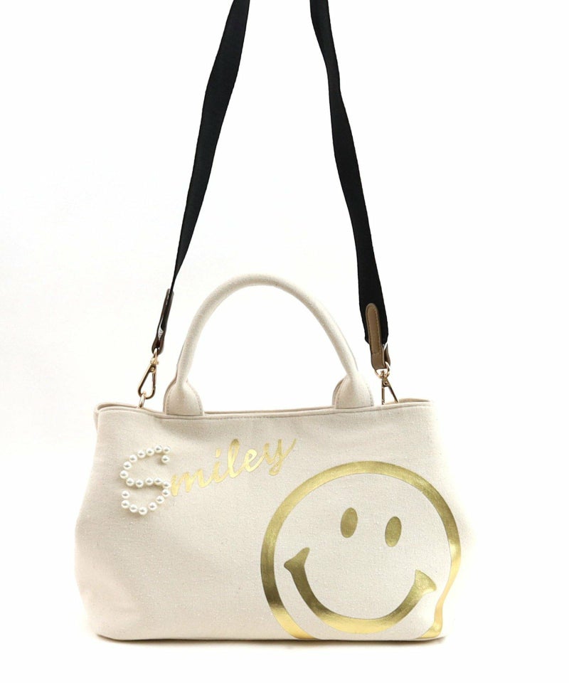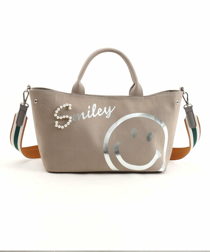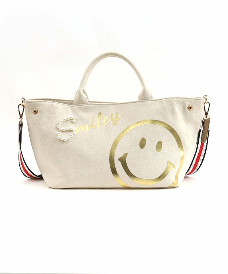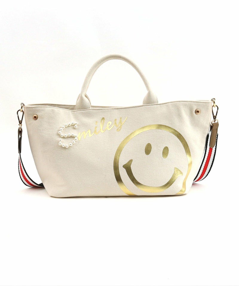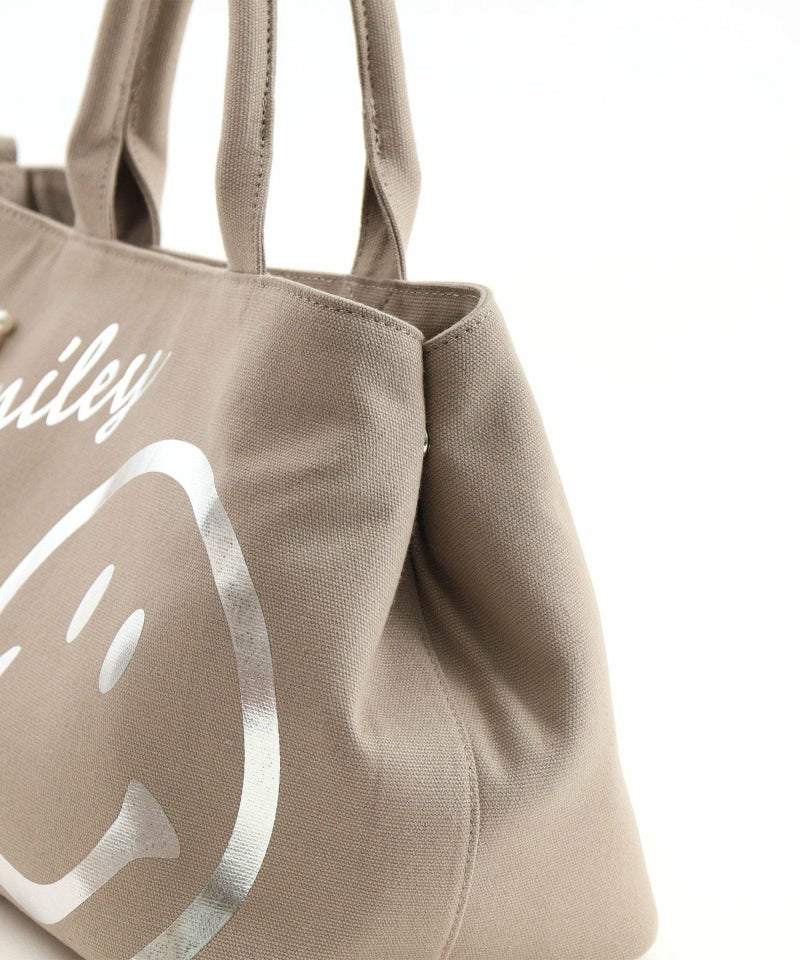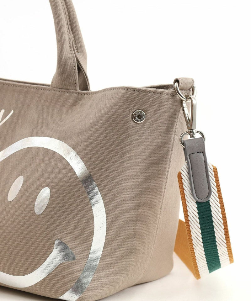 カジュアルな素材間のキャンバス地に、メタリックプリントのSMILEYが目を引くデザイン。