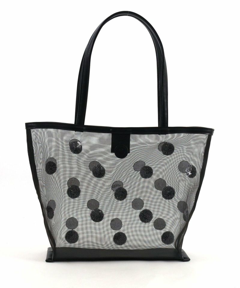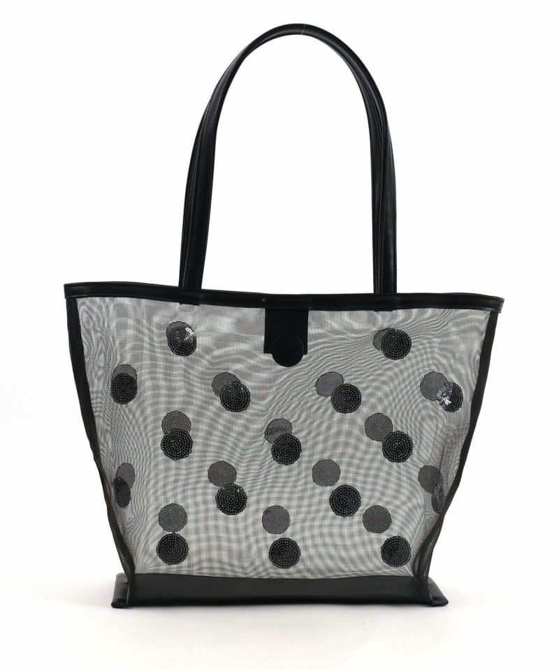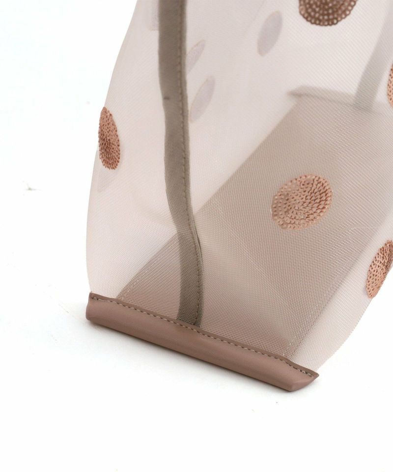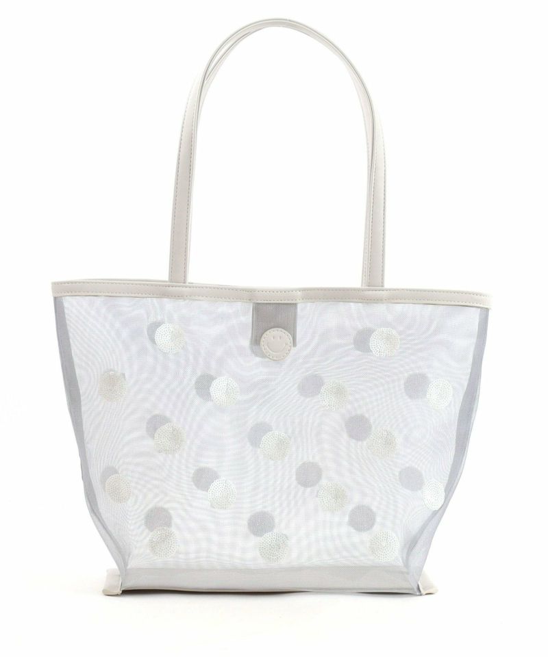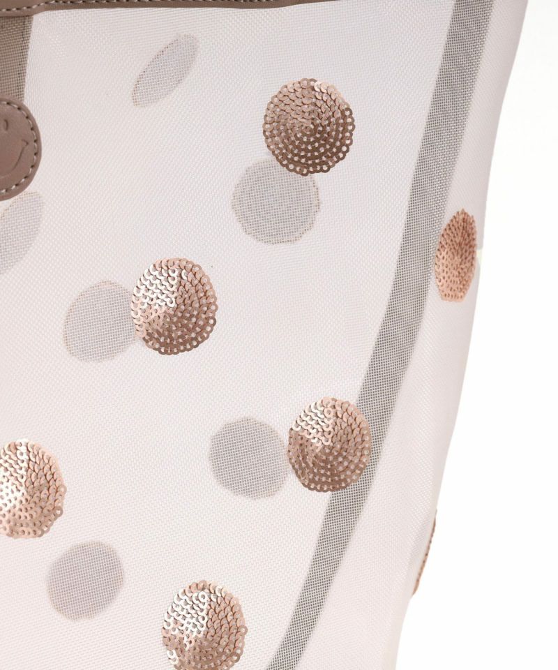春夏らしい涼しげなメッシュ素材の1枚仕立ての本体に、キラキラ輝くスパンコールを刺繍。