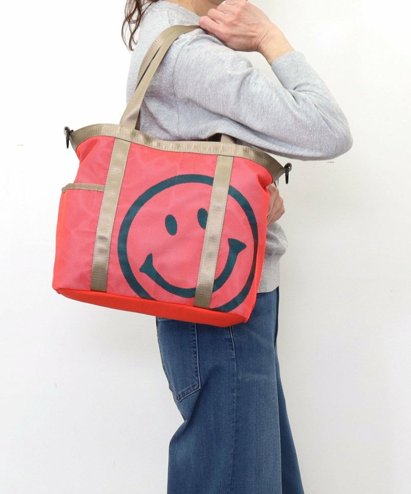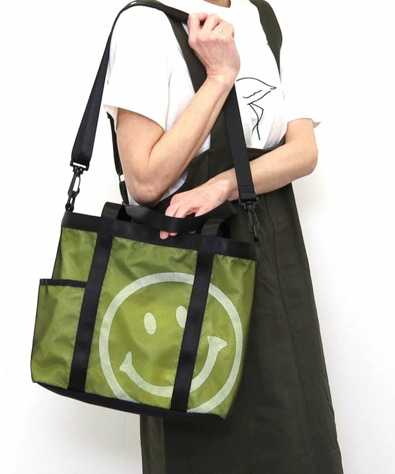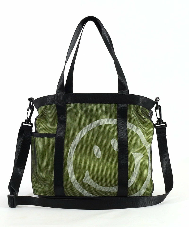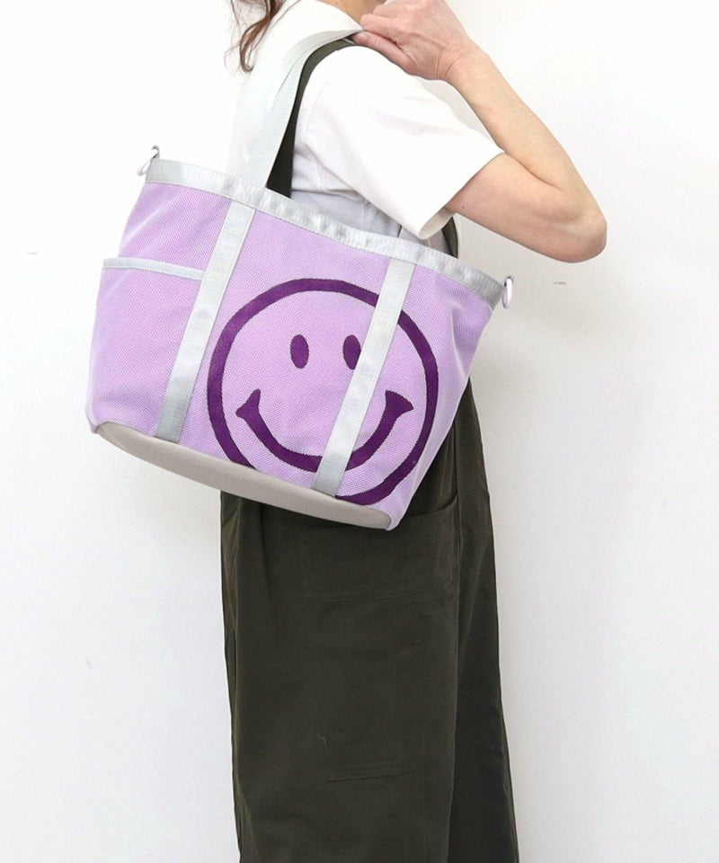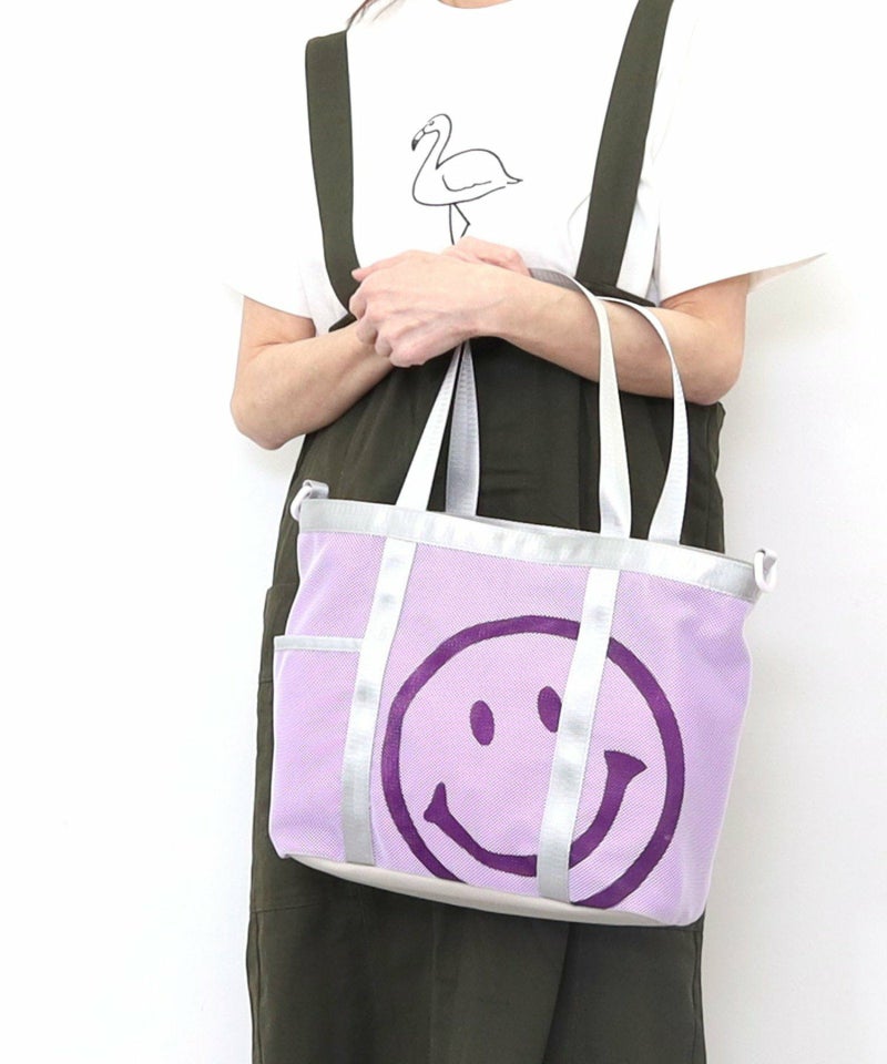 ちょこっと覗いているような、可愛いSMILEYフェイスは重ねたメッシュ素材にプリントしています。