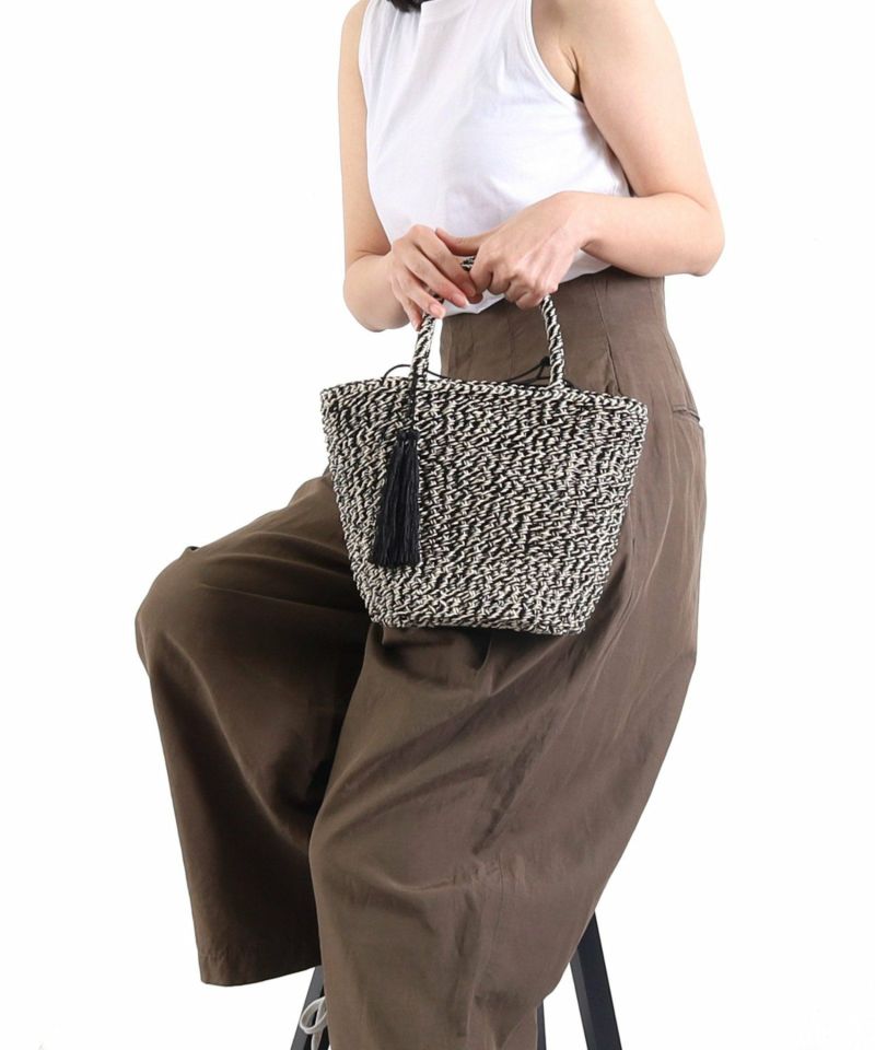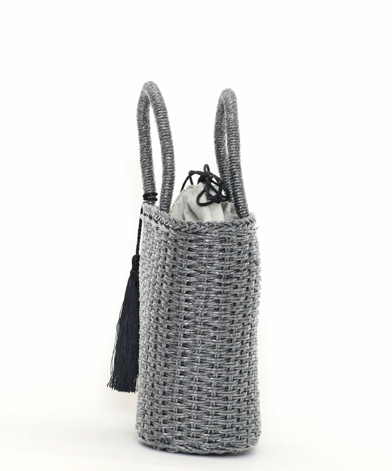 メタリックや透明のフィルムをペーパーに巻いて編み上げたサマーバッグです。